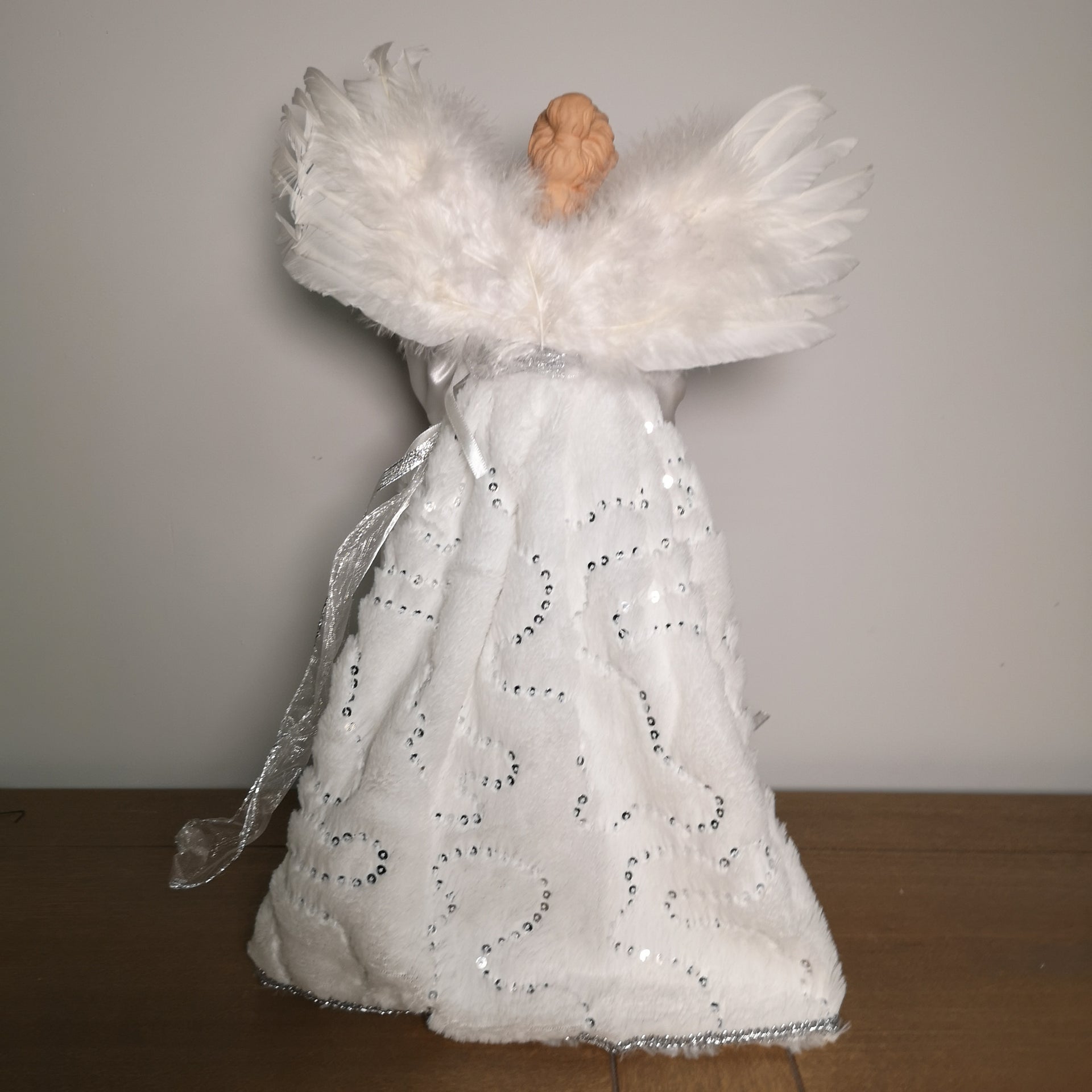 - 40cm Premier Deluxe Christmas Angel Tree Topper Decoration in Silver & White