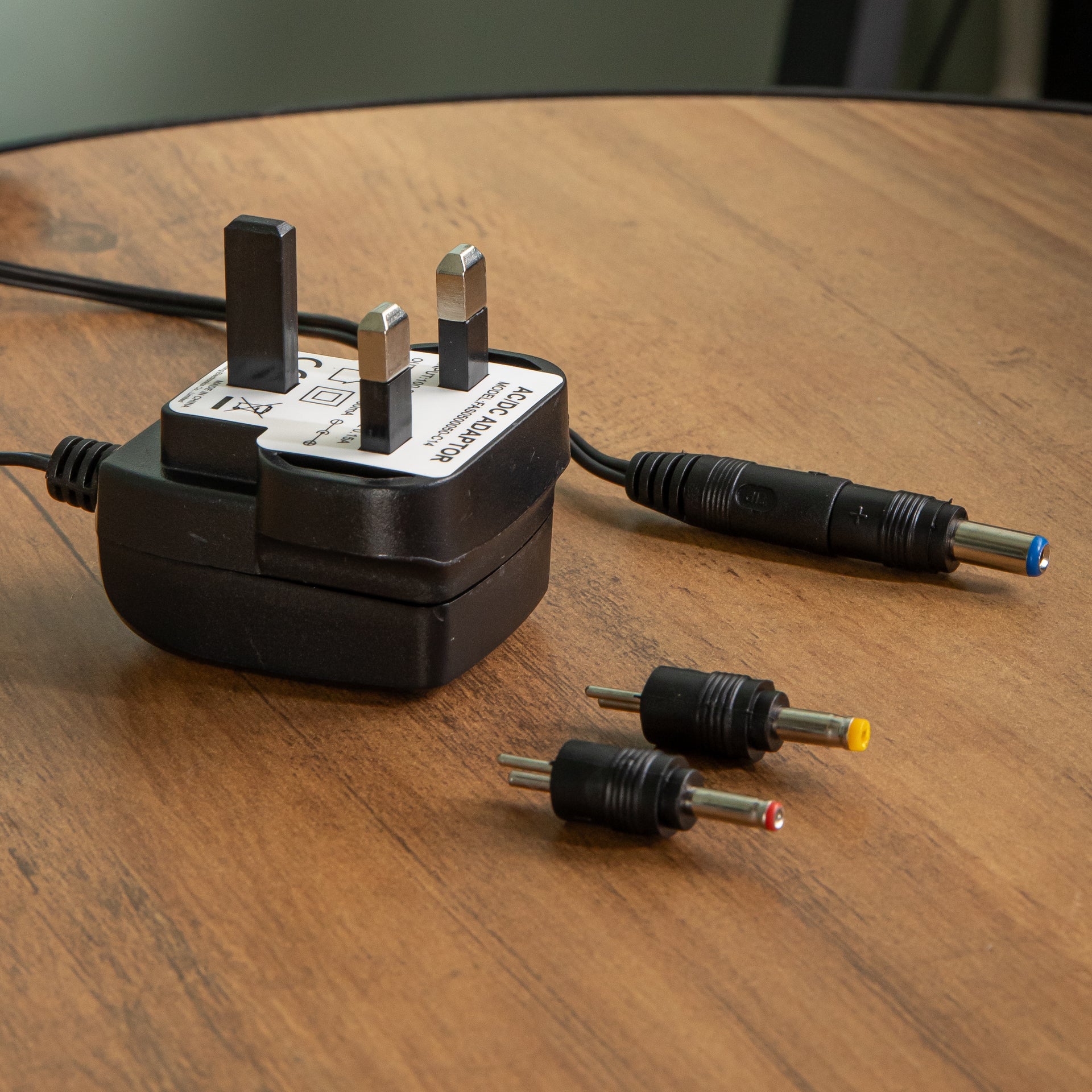 Suitable for most models within Snowtime’s extensive range of water spinners, this AC/DC plug in adaptor offers a practical and alternative to battery power. Its 1.5m cable provides flexibility in positioning your water spinner, while the changeable DC jacks (5.5mm x 2.1mm x 10mm and 4mm x 1.7mm x 10mm) ensure compatibility with a wide variety of Snowtime decorations.