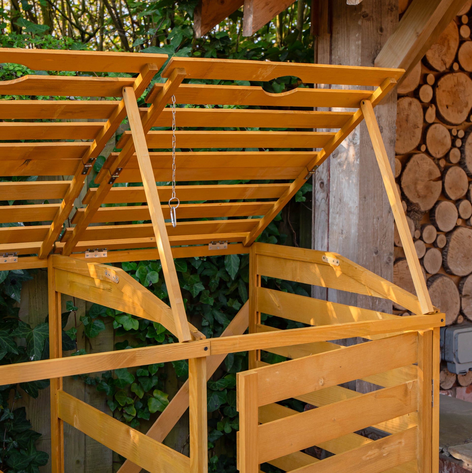The natural wooden frame will compliment any garden and outdoor setting and the slatted design helps promote air flow and maintain a clean area. The wood is ACQ treated for durability and longevity.
