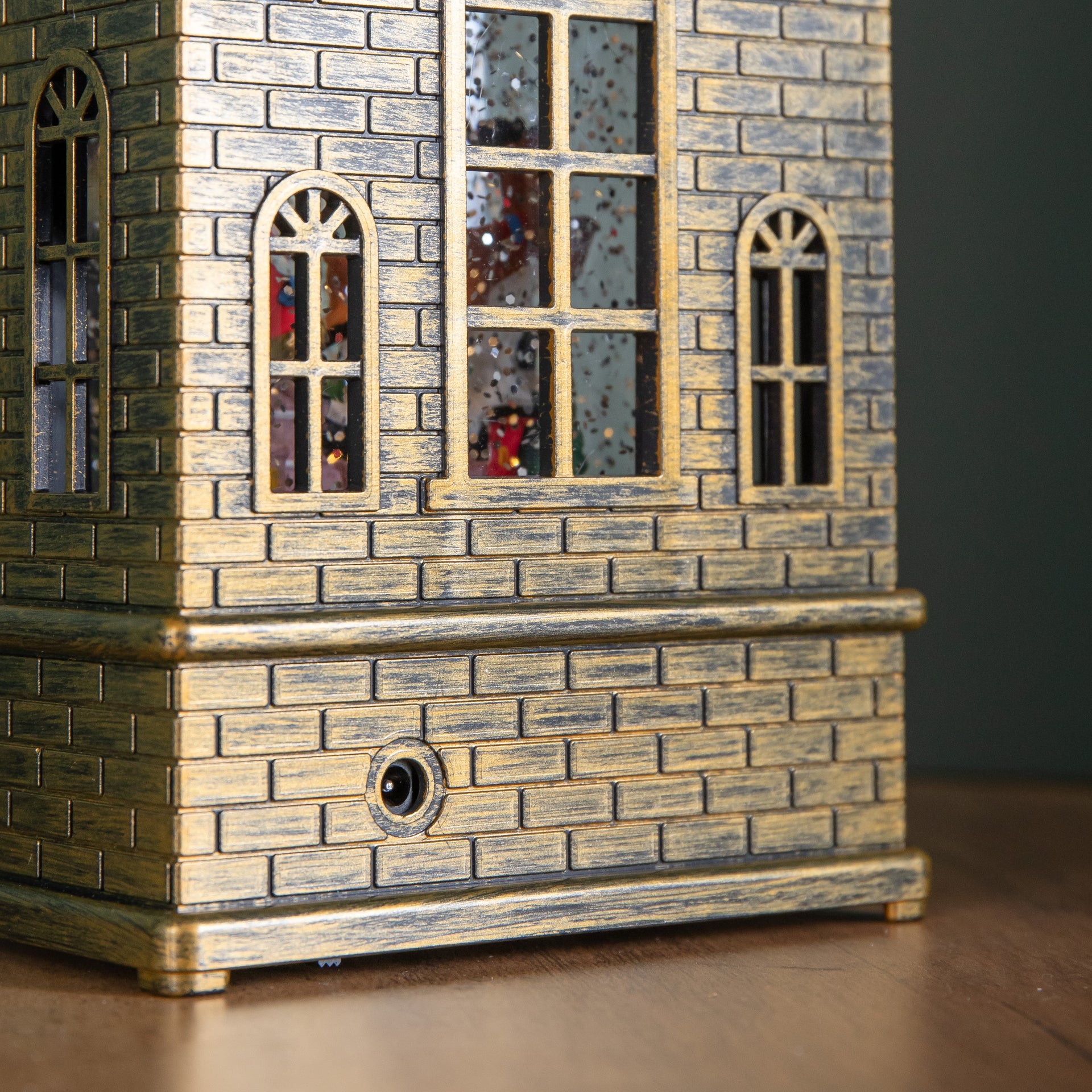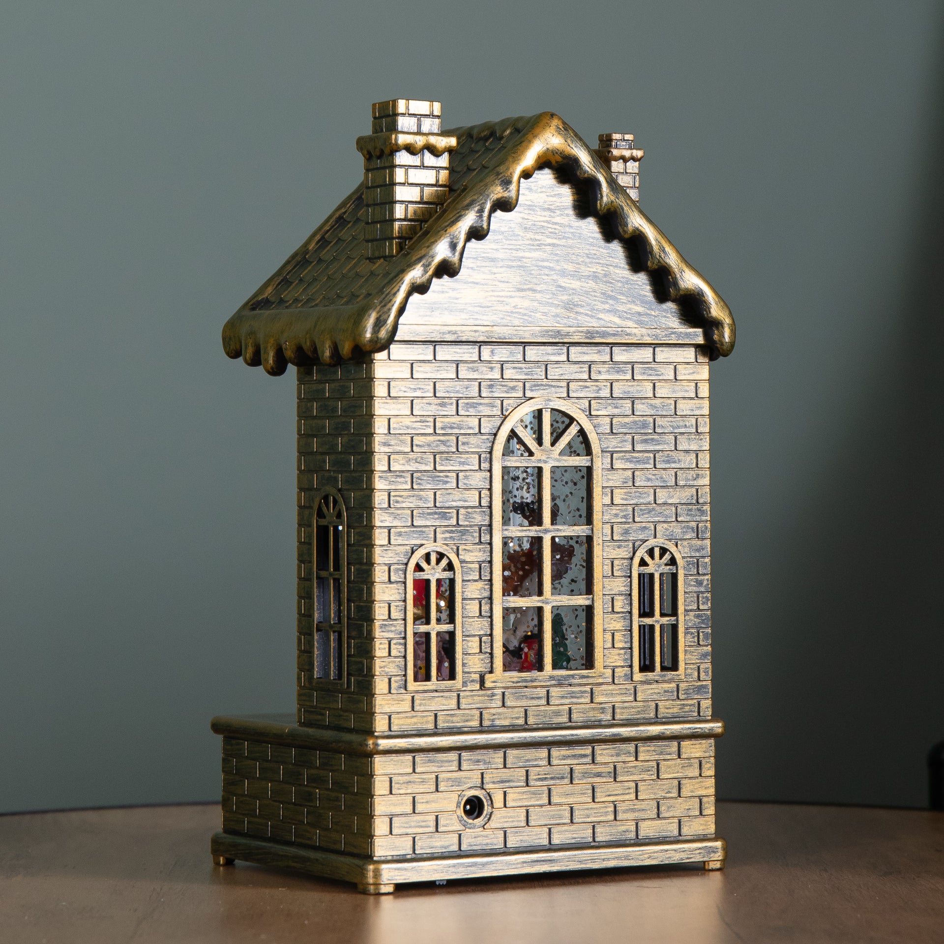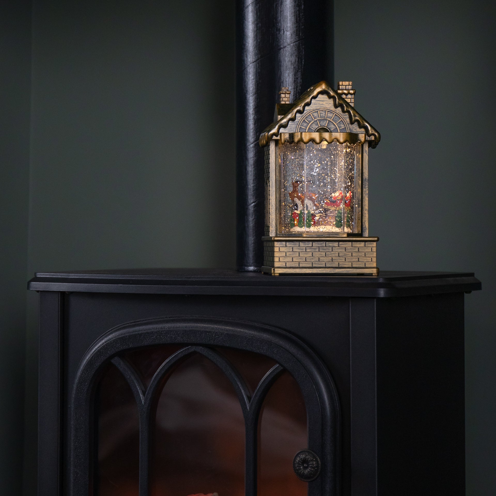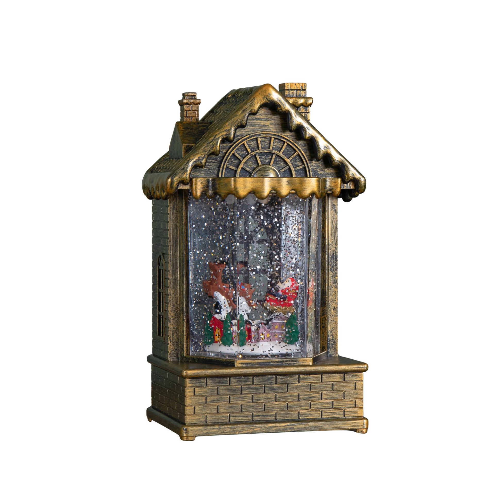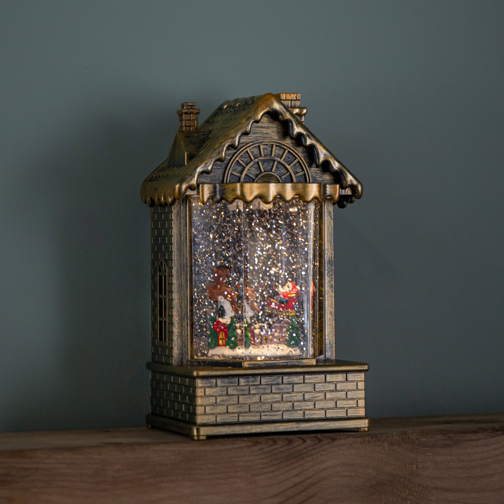 20cm Dual Powered Light up Christmas House Water Spinner with Santa in Sleigh Scene and LEDs