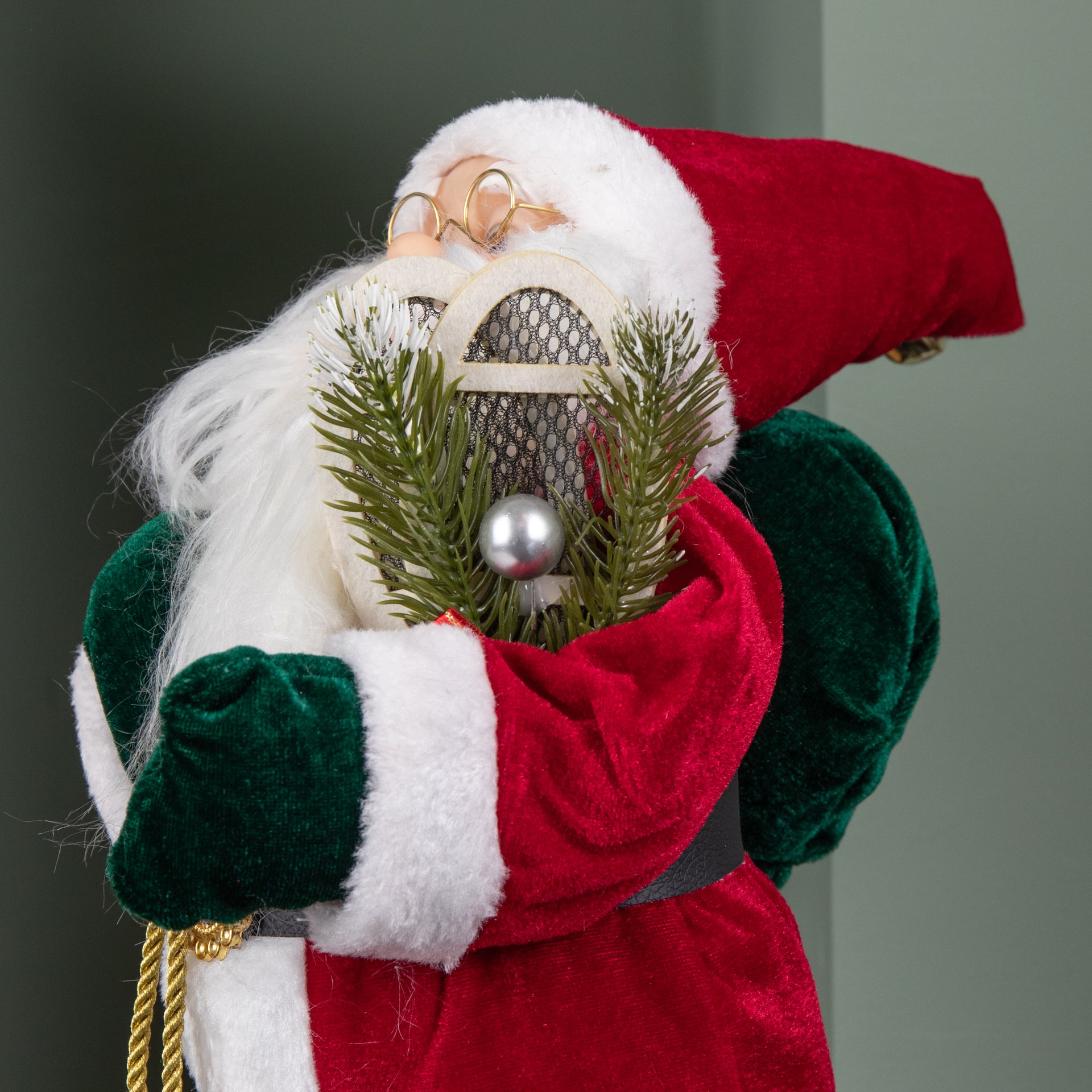 45cm Tall Standing Santa Claus Christmas Decoration with Green Sack