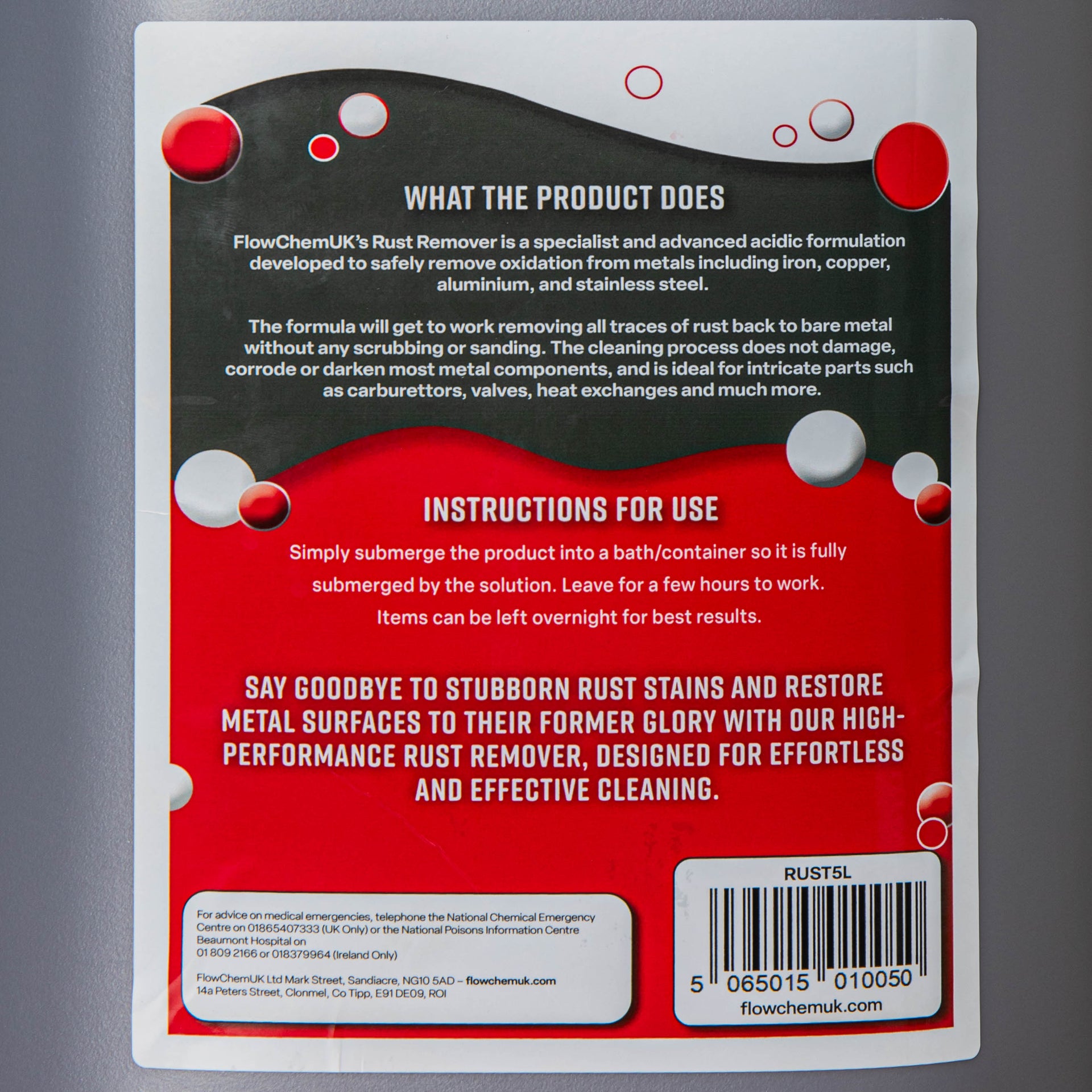Rust Remover 5L is a specialist acidic formulation designed to effectively and safely remove oxidation from a wide range of metals. Developed for both domestic and industrial use, this advanced rust treatment works quickly to dissolve rust, tarnish, and corrosion from iron, copper, aluminium, stainless steel, and more, without damaging the base material.