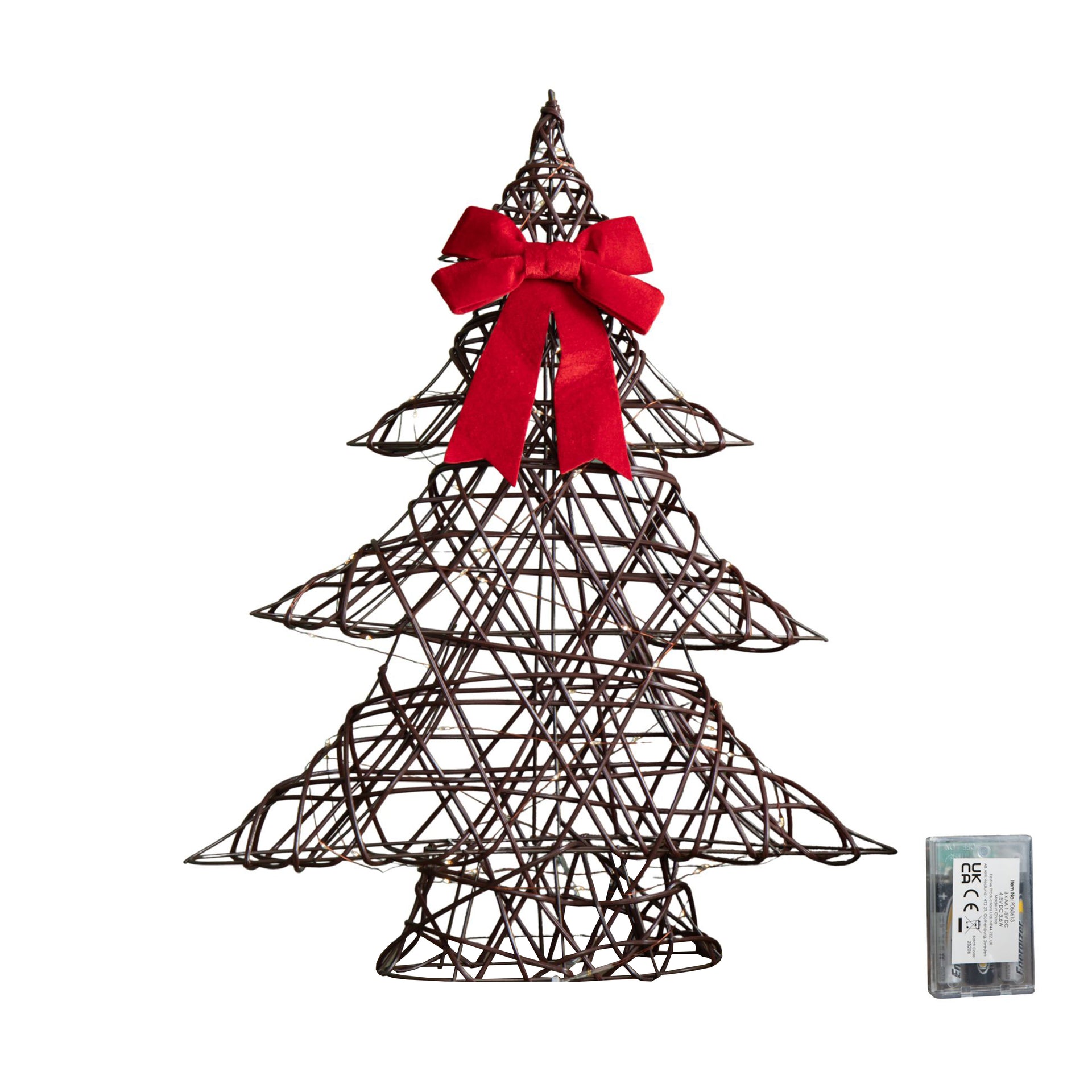 60cm Battery Operated Light up Christmas Tree with Red Bow & 60 Warm White LEDs