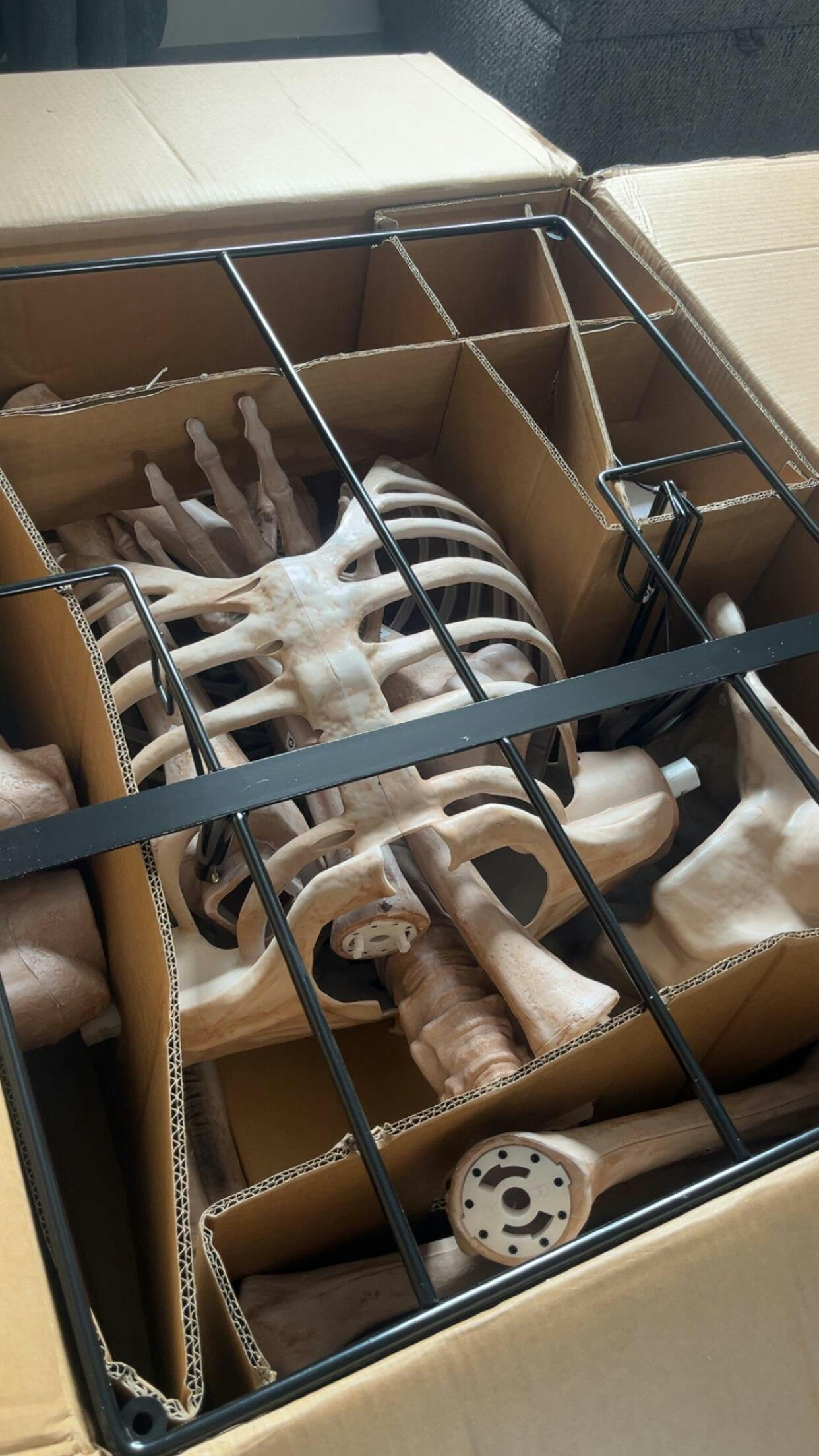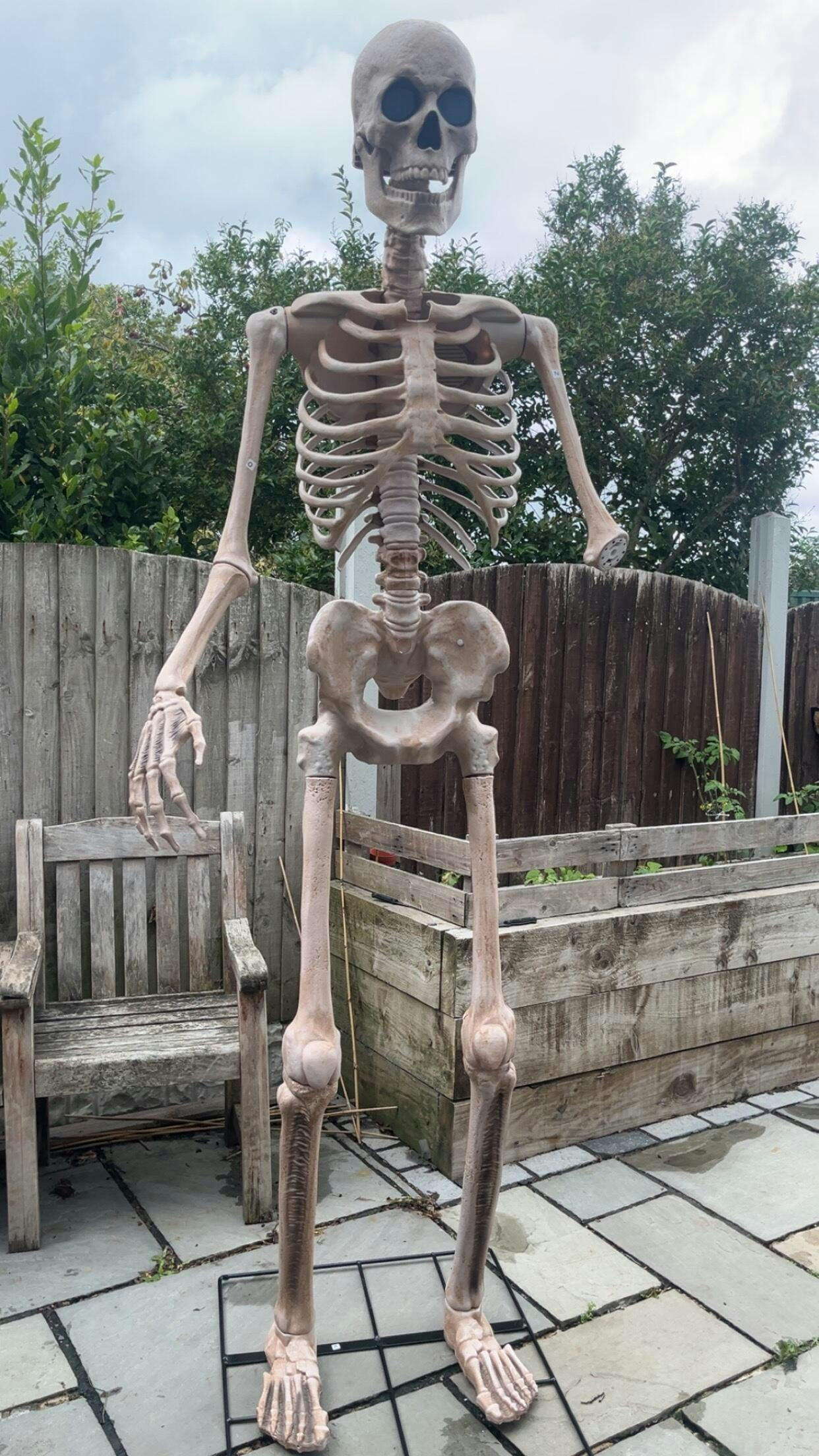 This is a must have for Halloween Amazing skeleton, eyes move and light up and talks- you can even set the volume. I’ve order a couple of Halloween bits from here now. Excellent service. ( I forgot to take a photo with the last arm added)