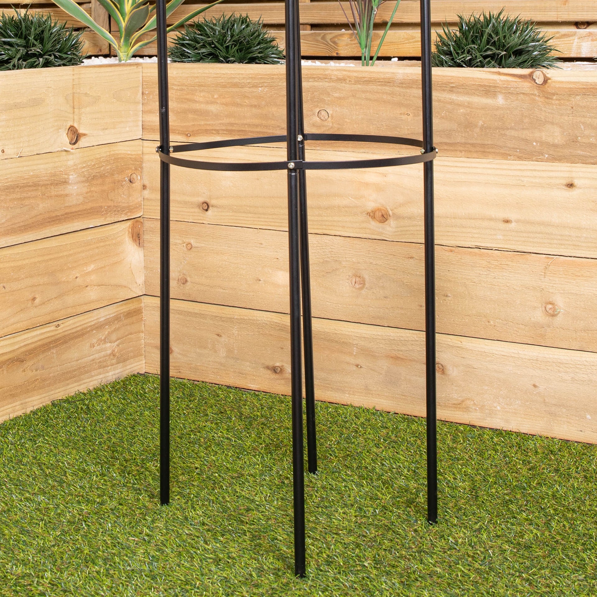 Create a tranquil paradise with your garden and give climbing plants the space and support they need with this garden obelisk trellis. An obelisk is an attractive addition to any garden, they make a great centerpiece for your plants and also provides the support they need to thrive. At 1.9 meters high, this garden trellis obelisk is designed to provide your plants with plenty of room to climb. This plant support features 4 legs that can be inserted into the ground to keep it standing for further stability. Made with a coated steel tubing, this trellis is strong, durable and easy to assemble. Product Dimensions Height: 1.9m (6ft 3") Diameter: 41cm