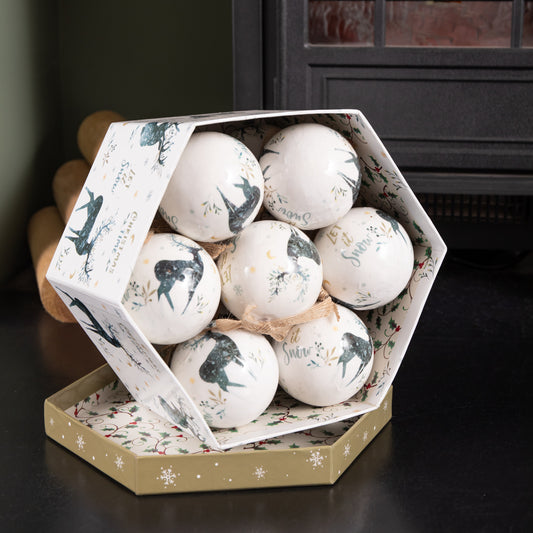 Christmas tree baubles are a classic holiday decoration that adds a touch of magic and sparkle to your tree. They come in a variety of shapes, sizes, and colours, and can be used to create a cohesive theme or add a pop of whimsy to your tree. Whether you prefer traditional red and green baubles or more modern and colourful options, you're sure to find something that catches your eye on our website.