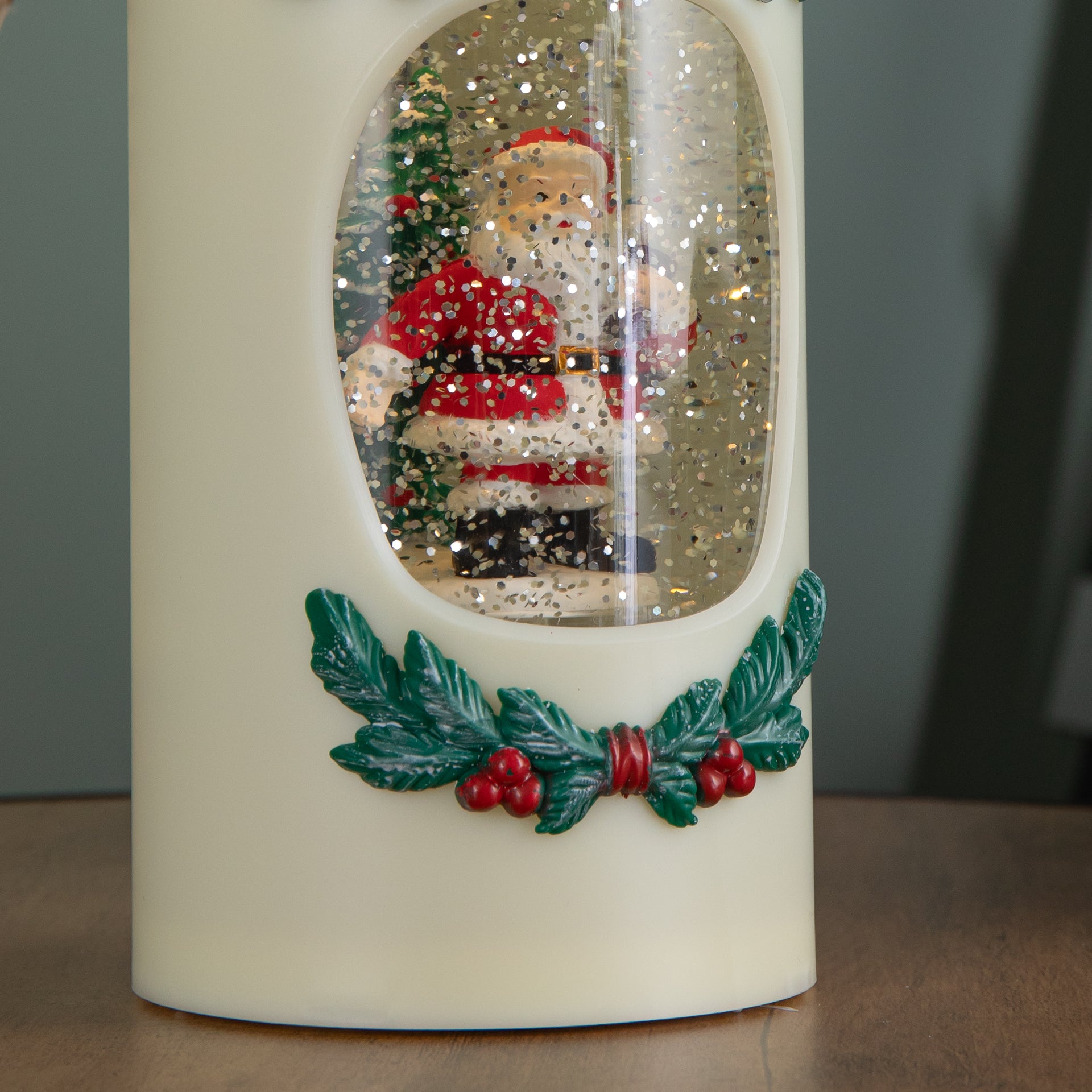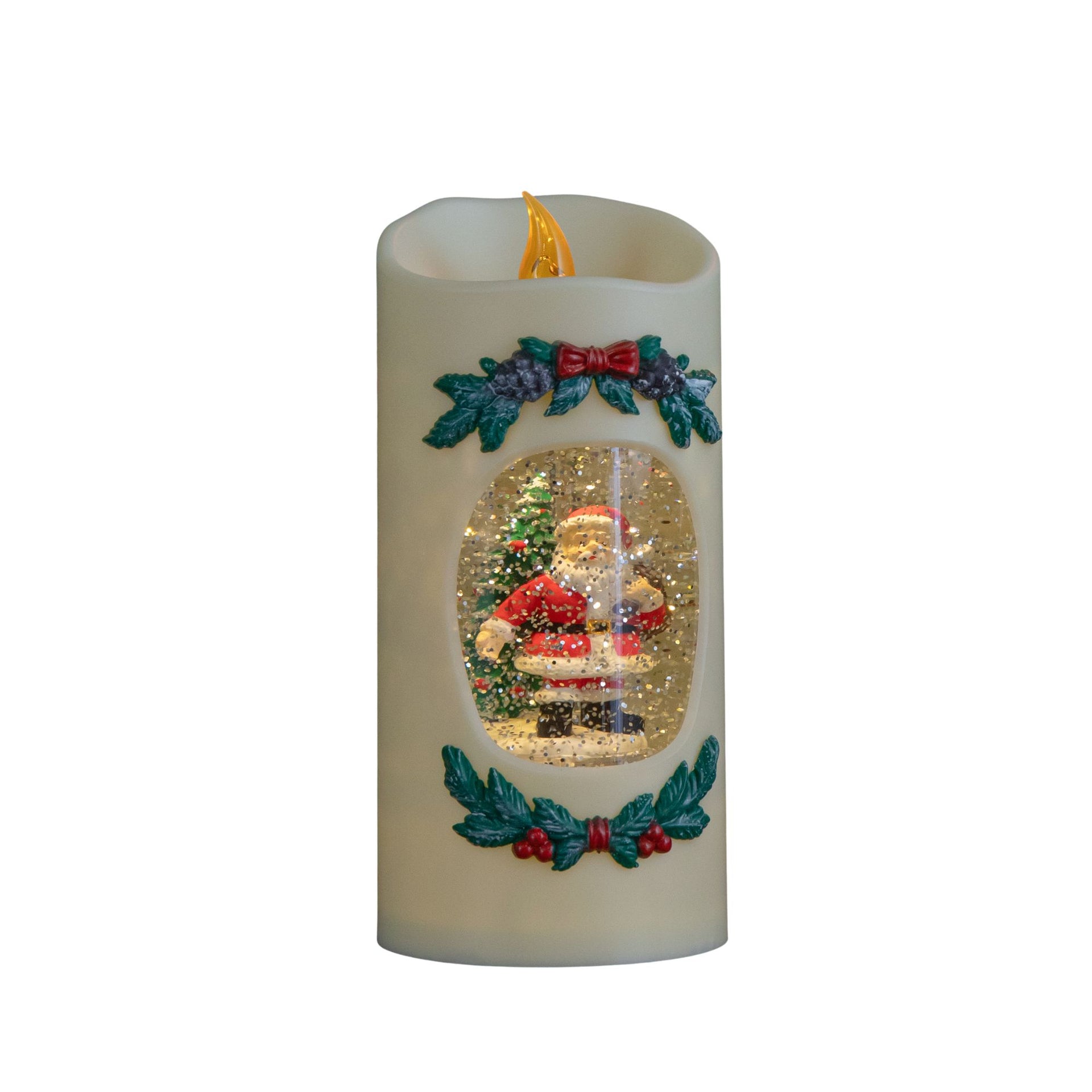 20cm Dual Powered Light up Christmas Pillar Candle Water Spiner with Santa and LEDs