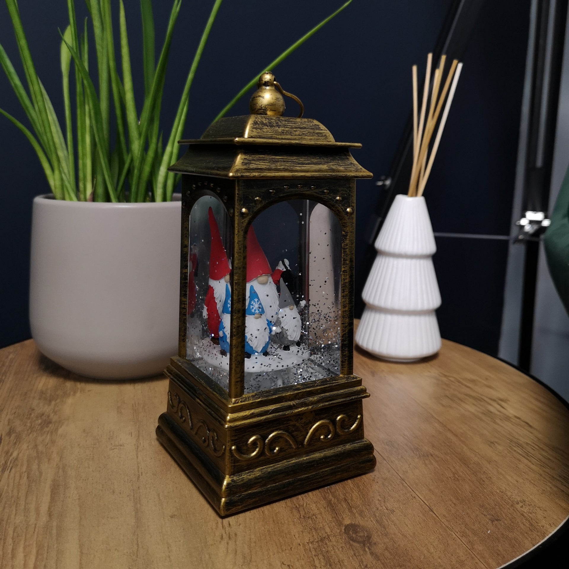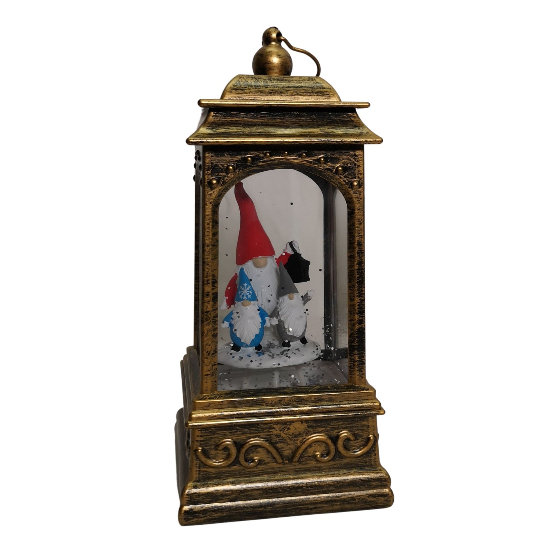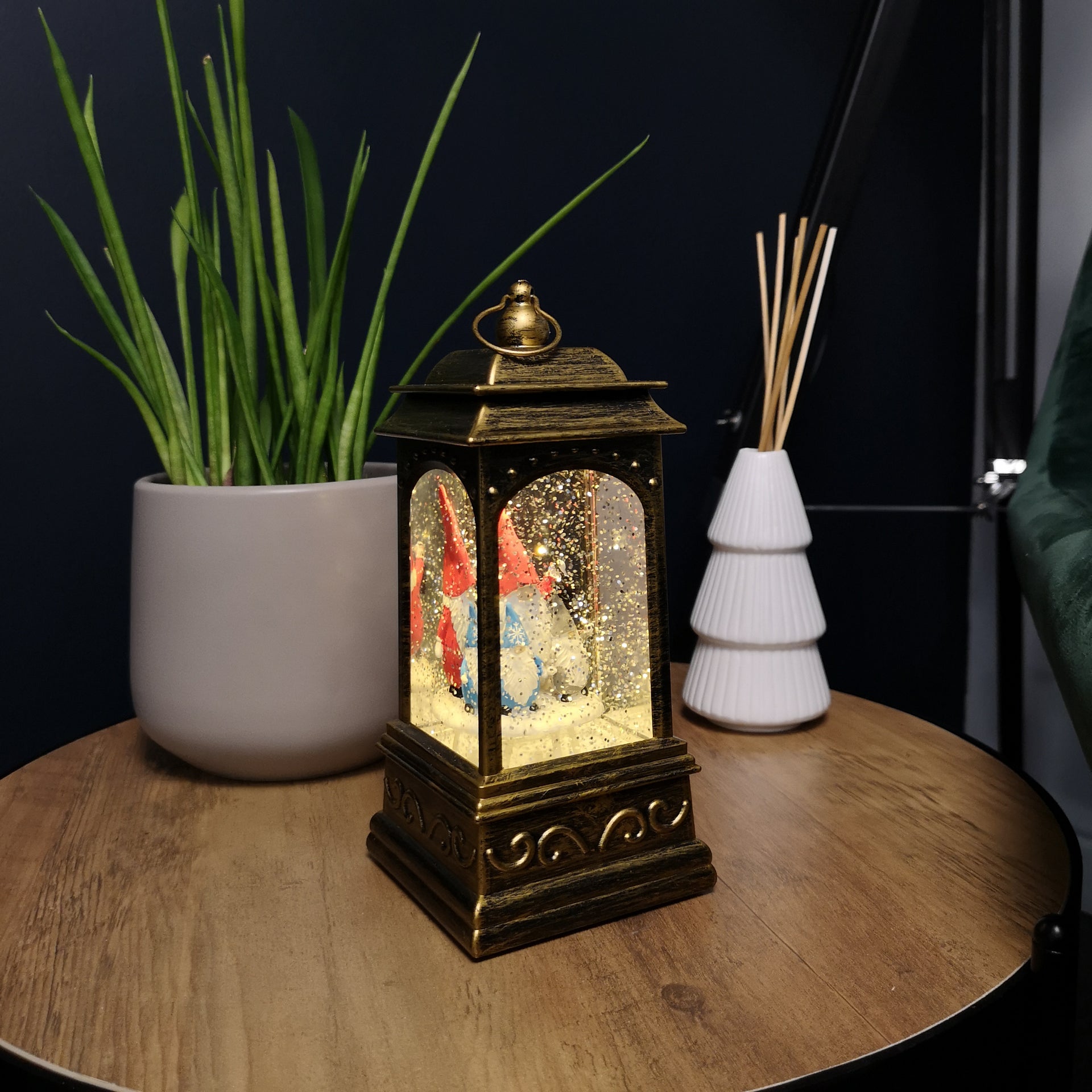 - 21cm Christmas Gonk Glitter Water Spinner Lantern Decoration