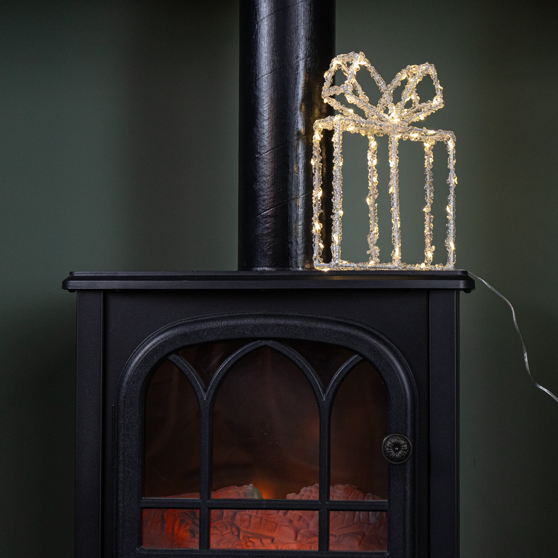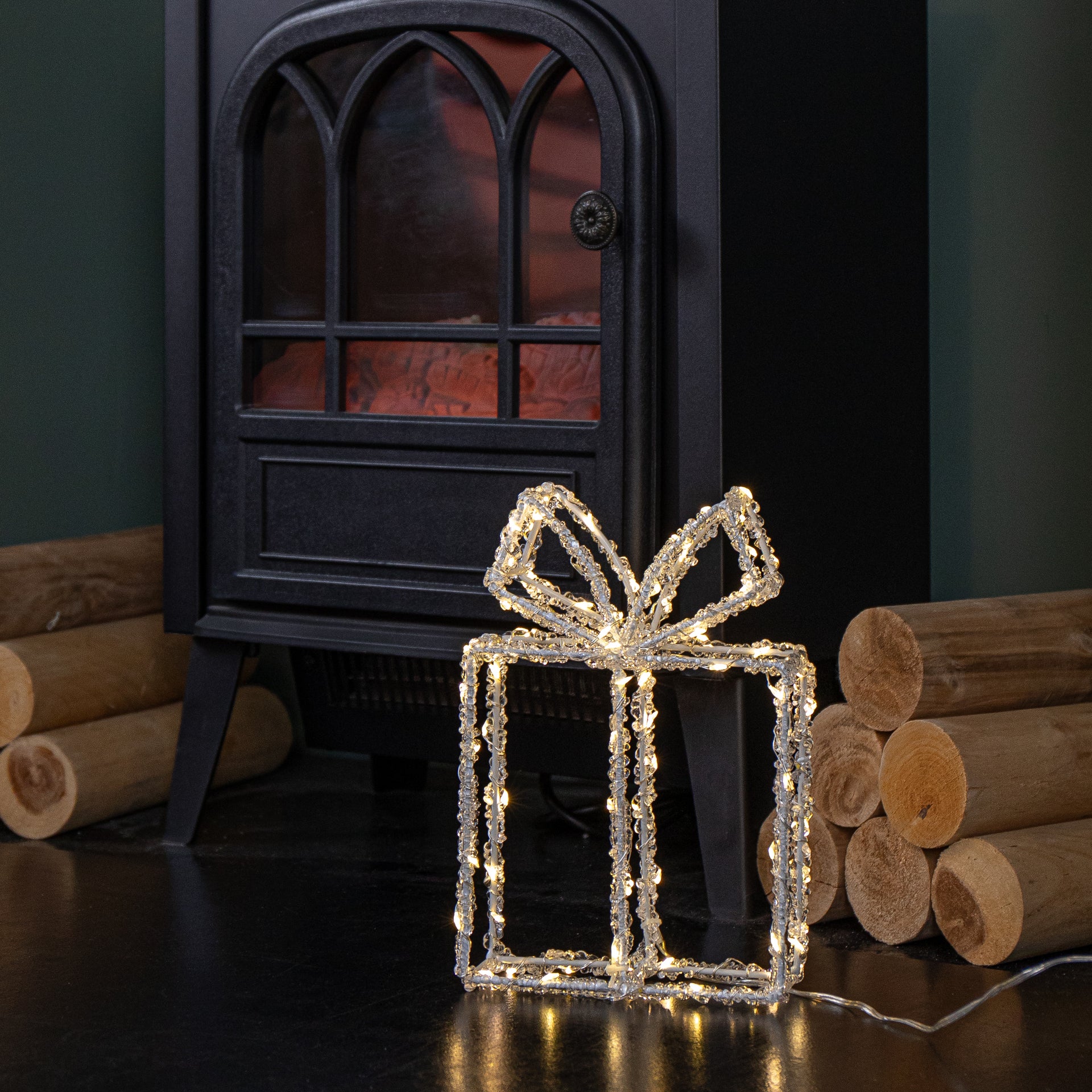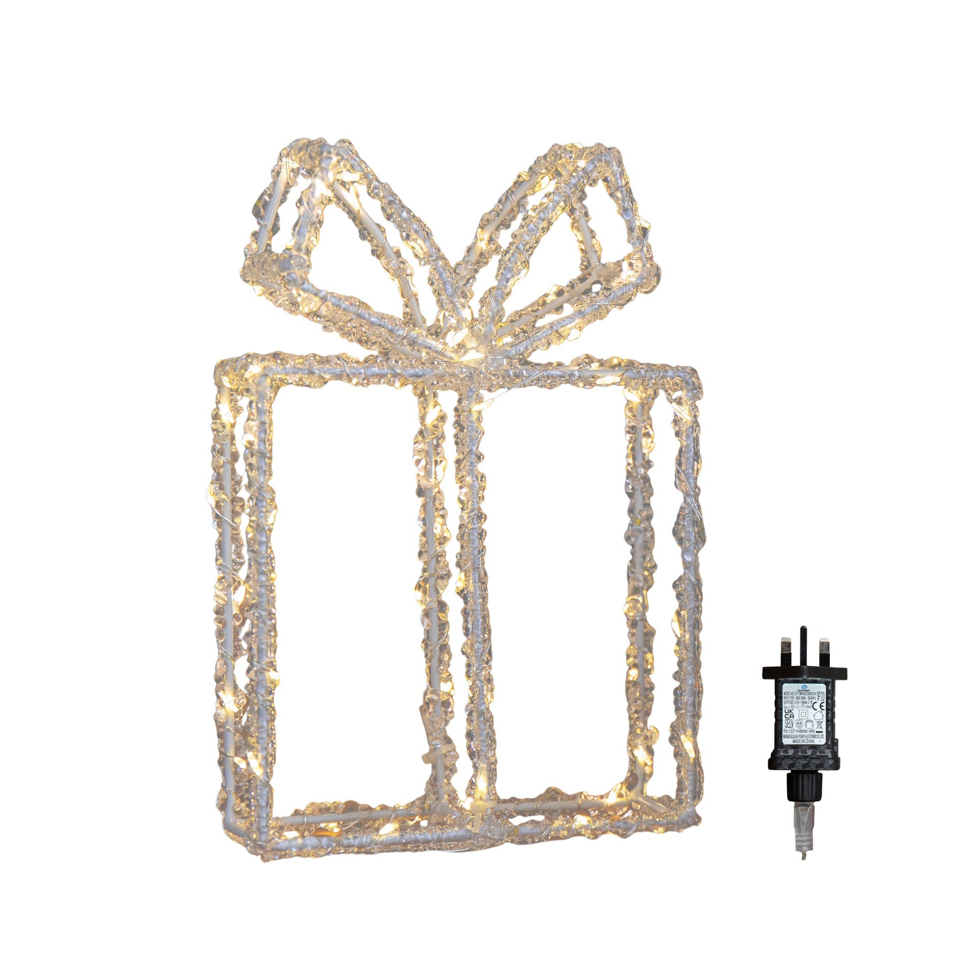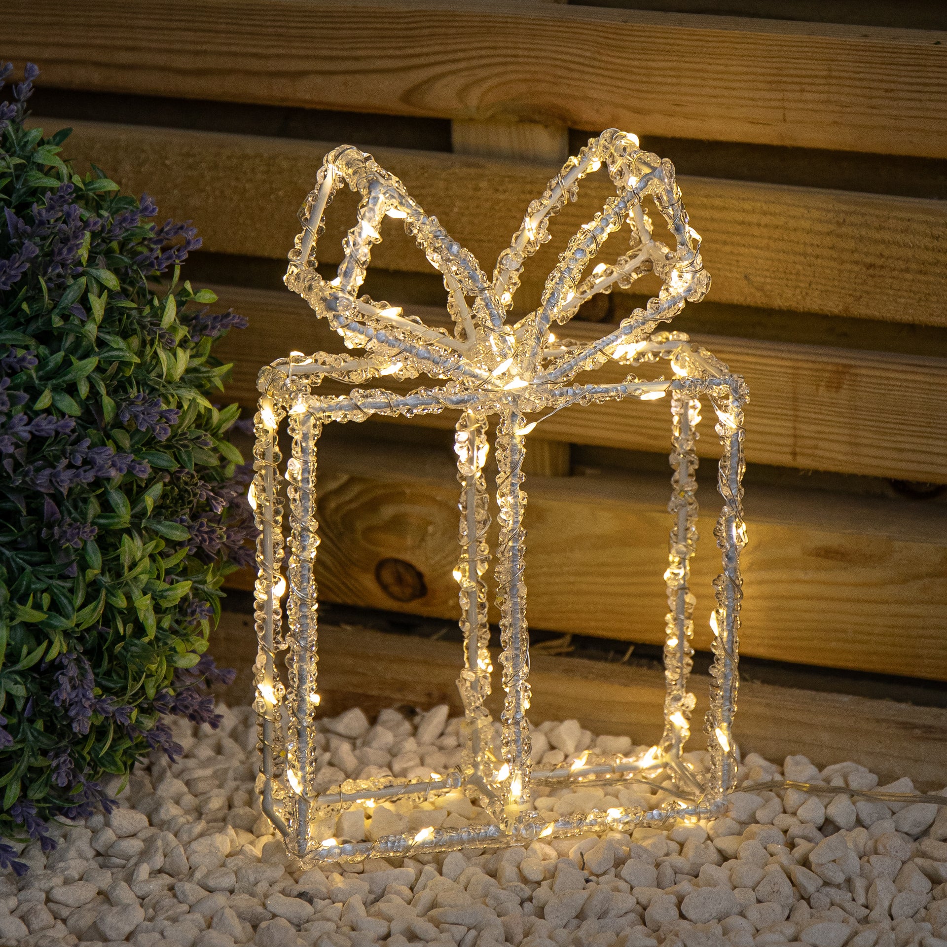 22cm Light up Acrylic Christmas Present with 80 Warm White LEDs
