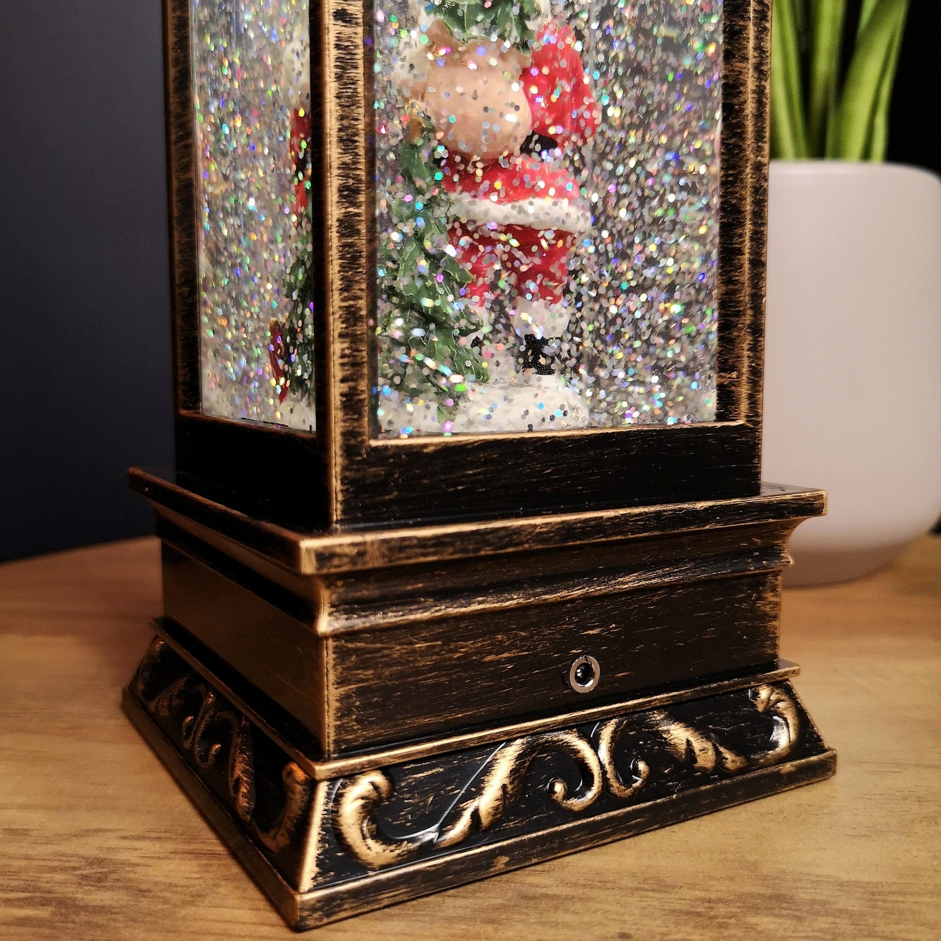 28cm Battery Operated Light up SnowSwirl Santa Christmas Lantern Decoration