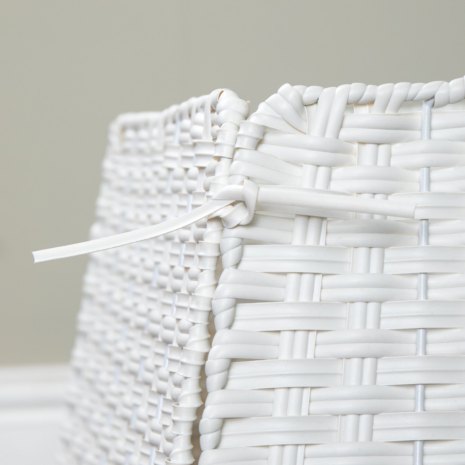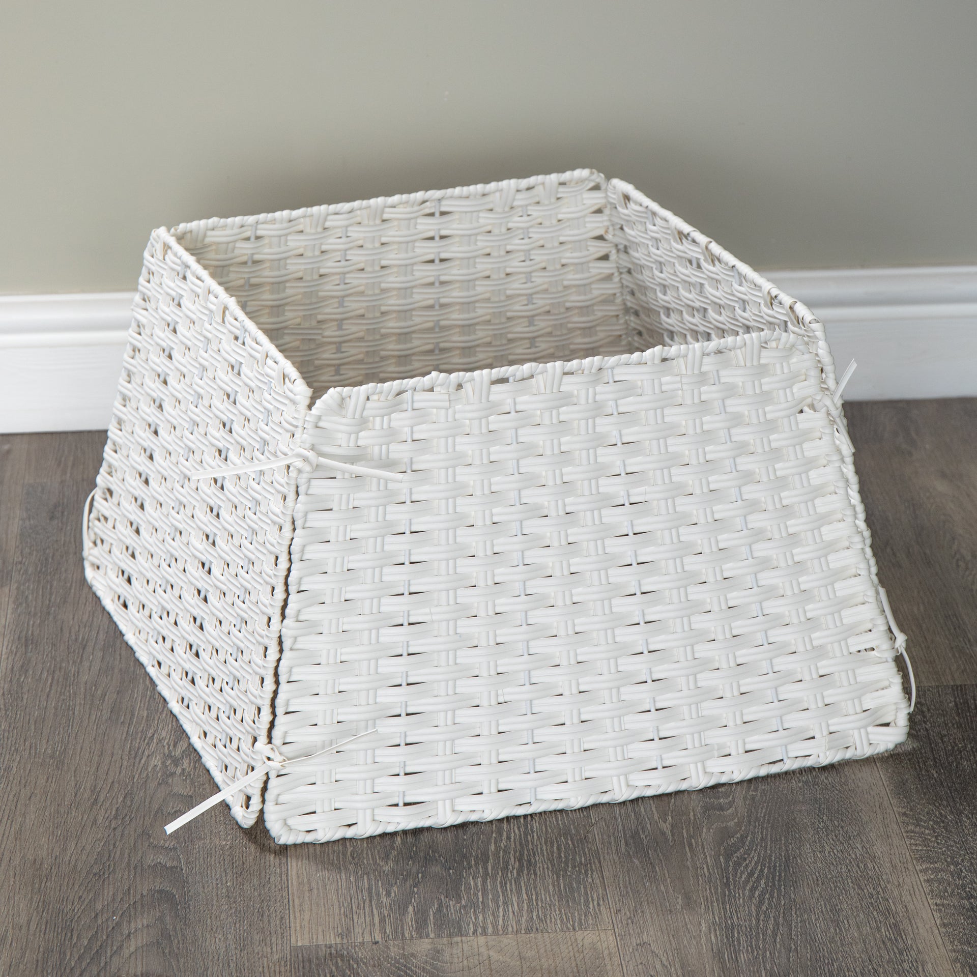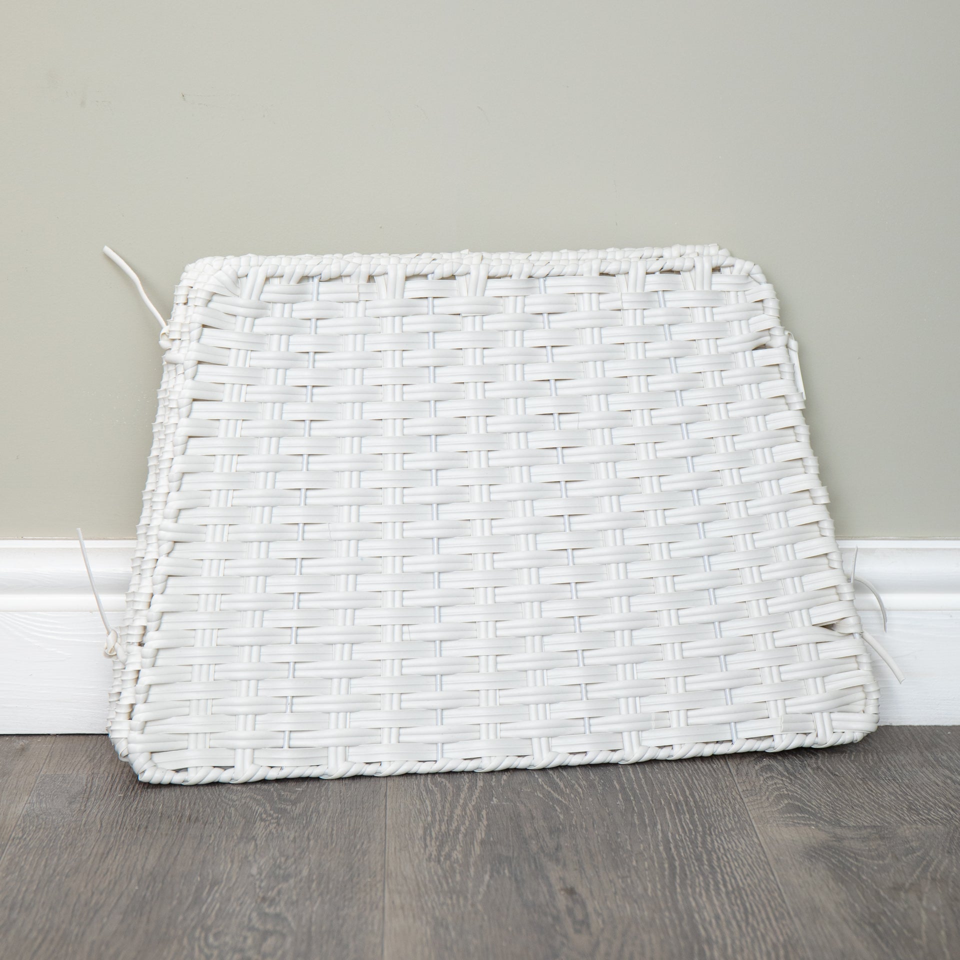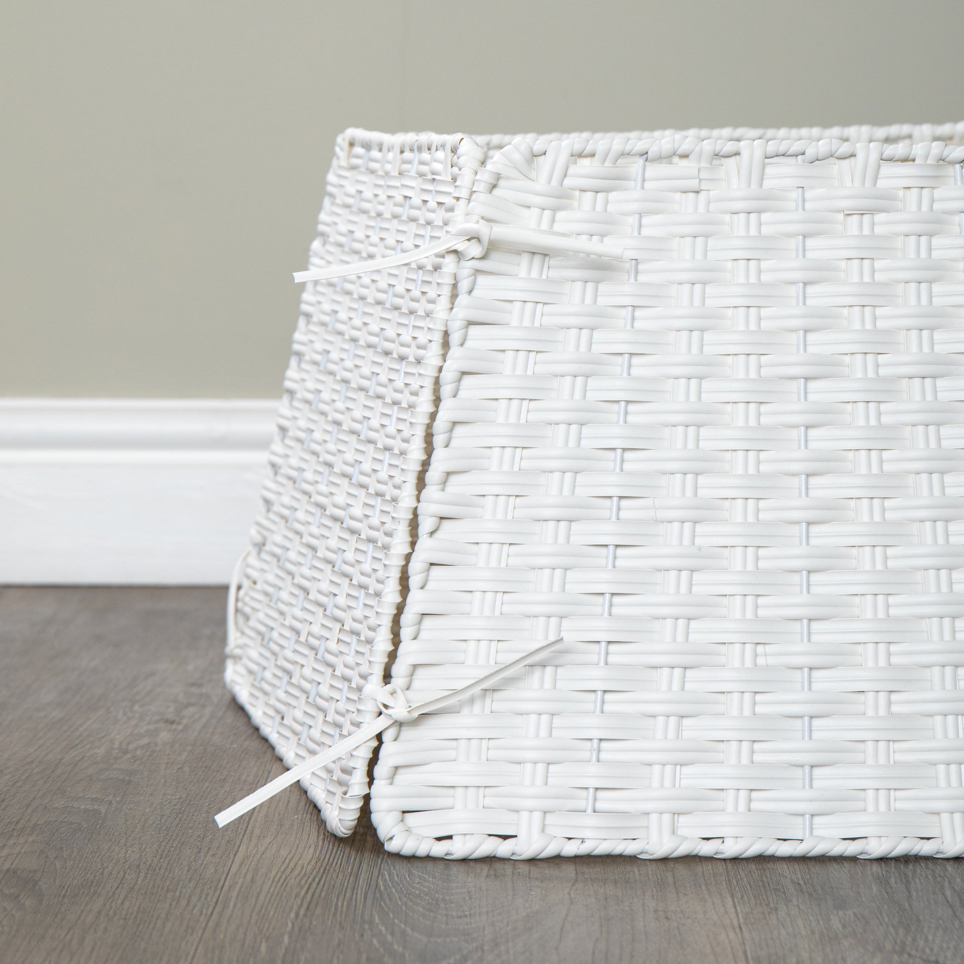Crafted from durable white faux rattan woven over a strong metal frame, this rattan effect Christmas tree skirt delivers the natural look of rattan with long lasting durability. Its elegant square shape adds a modern Christmas decor touch, while the crisp white colour compliments minimalist, contemporary, and traditional holiday decor themes.
