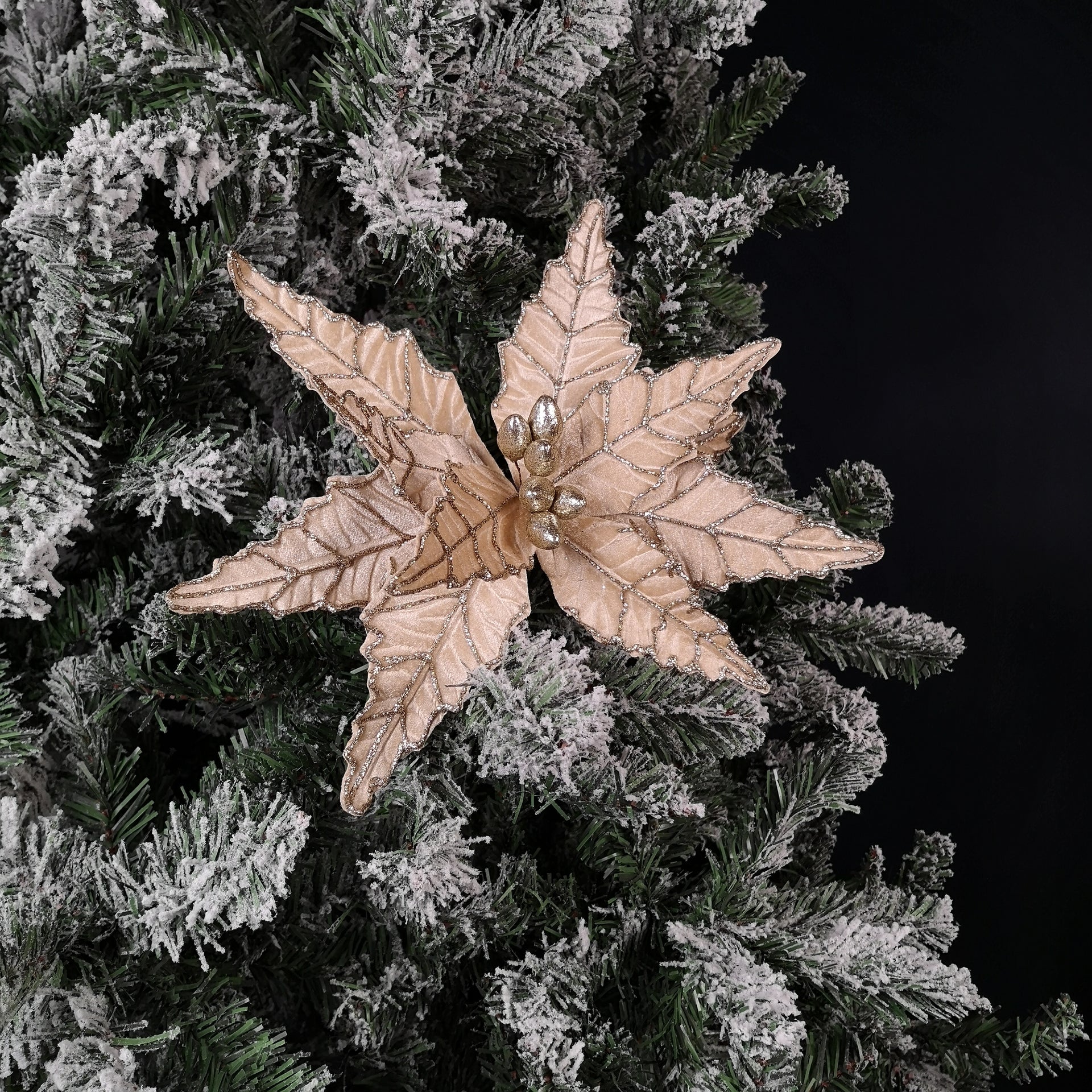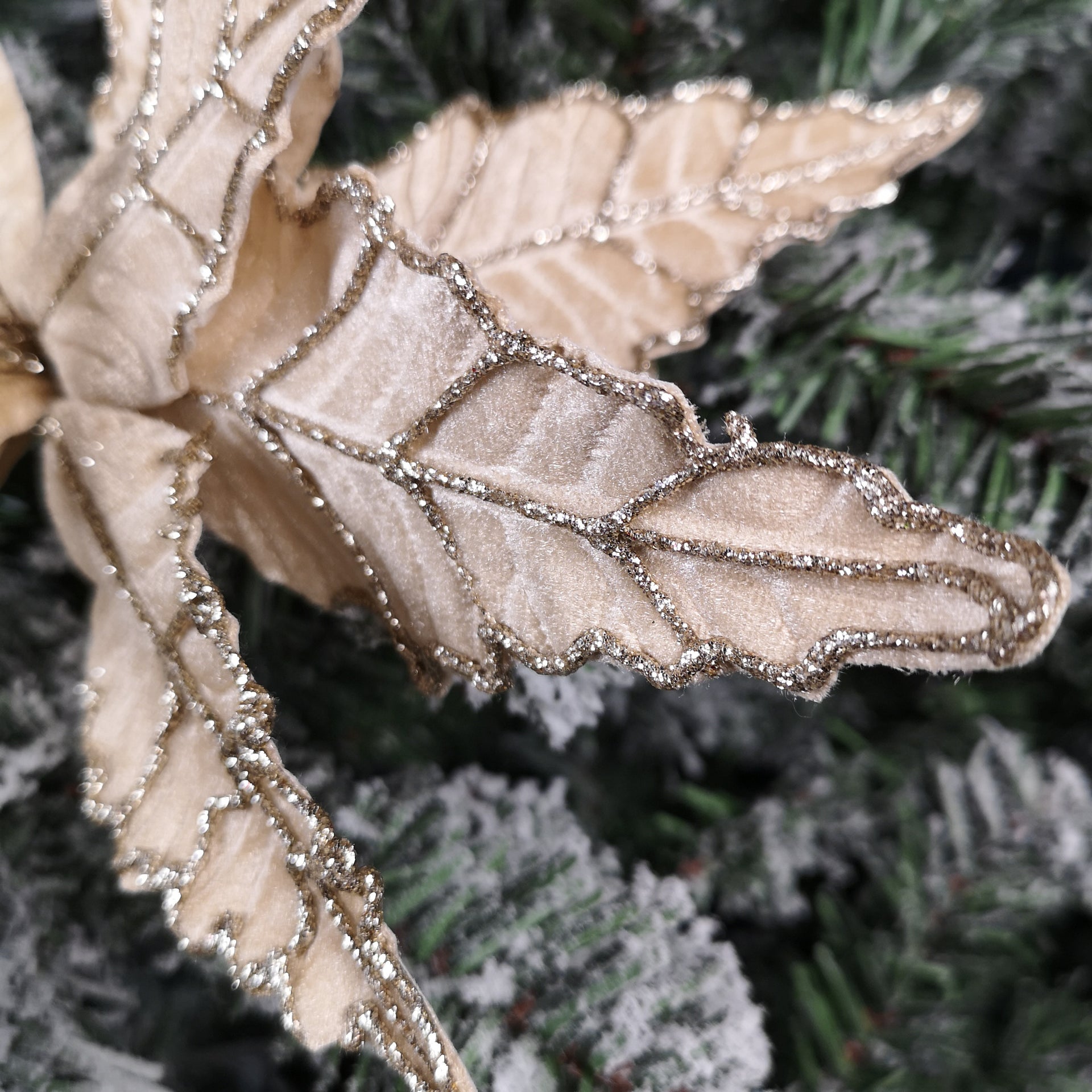- 50cm Champagne Velvet Poinsettia Stem with Glitter Christmas Decoration