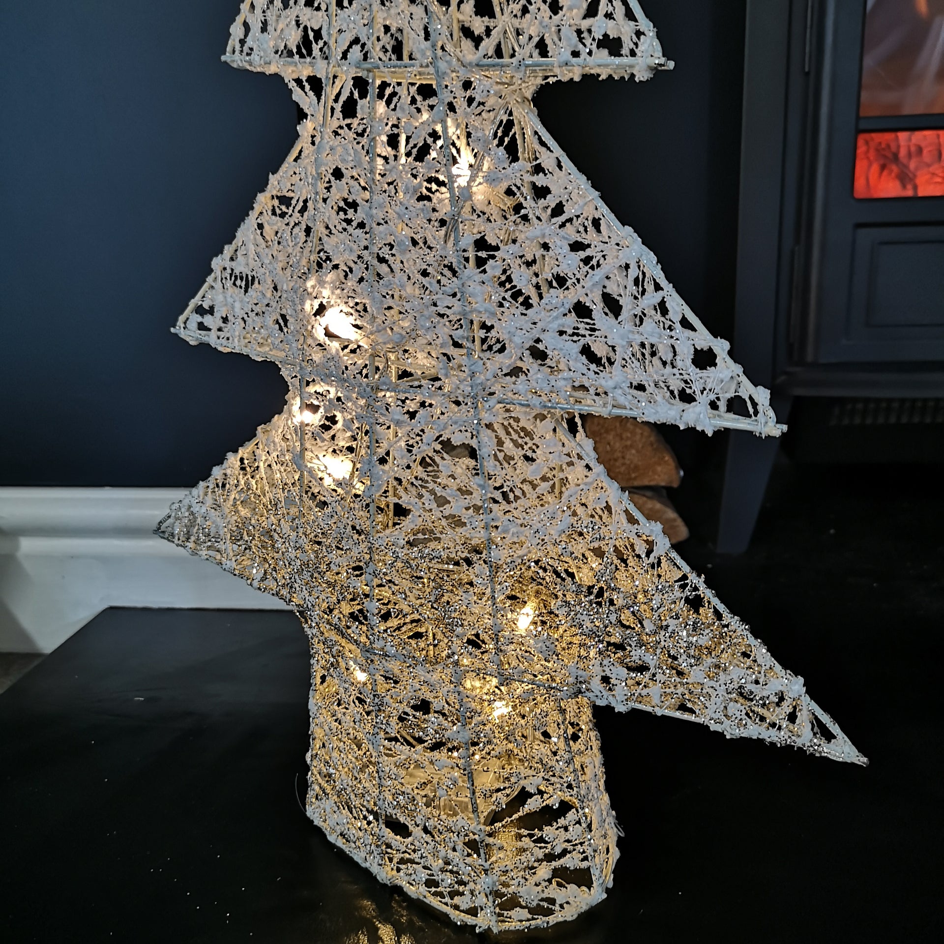 50cm Warm White Battery Operated LED White and Gold Tree Silhouette Christmas Decoration