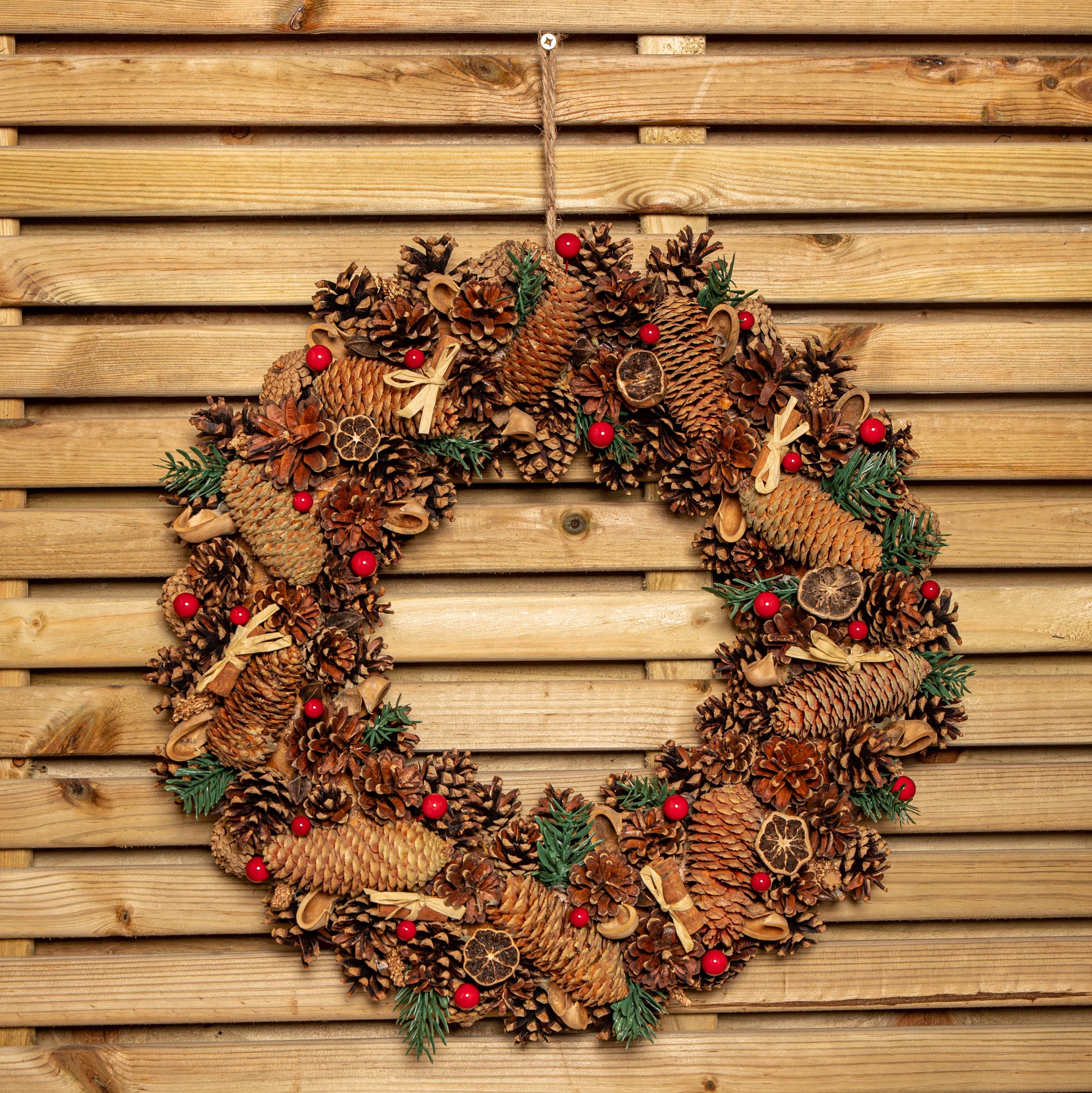 50cm Winter Spice Hanging Christmas Wreath with Pine Cones Red Berries & Dried Fruit