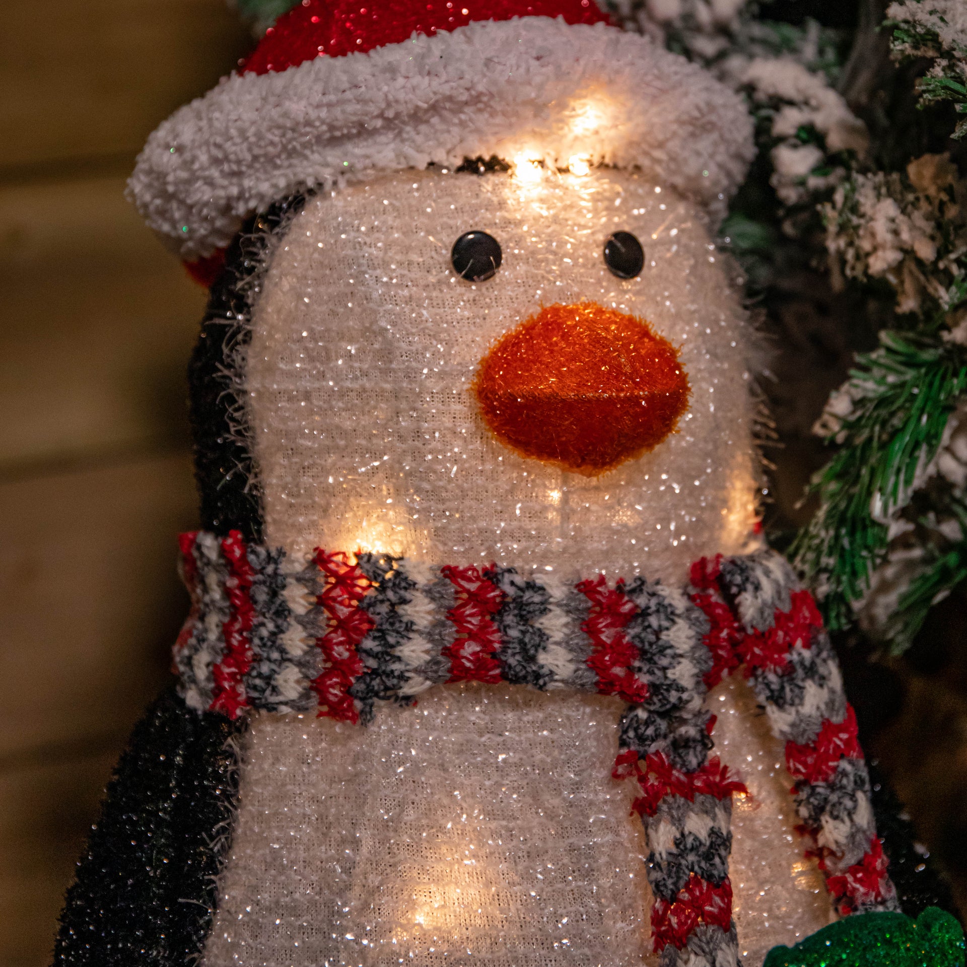 - 55cm Battery Operated Light up Christmas Penguin with Red Hat and Warm White LEDs