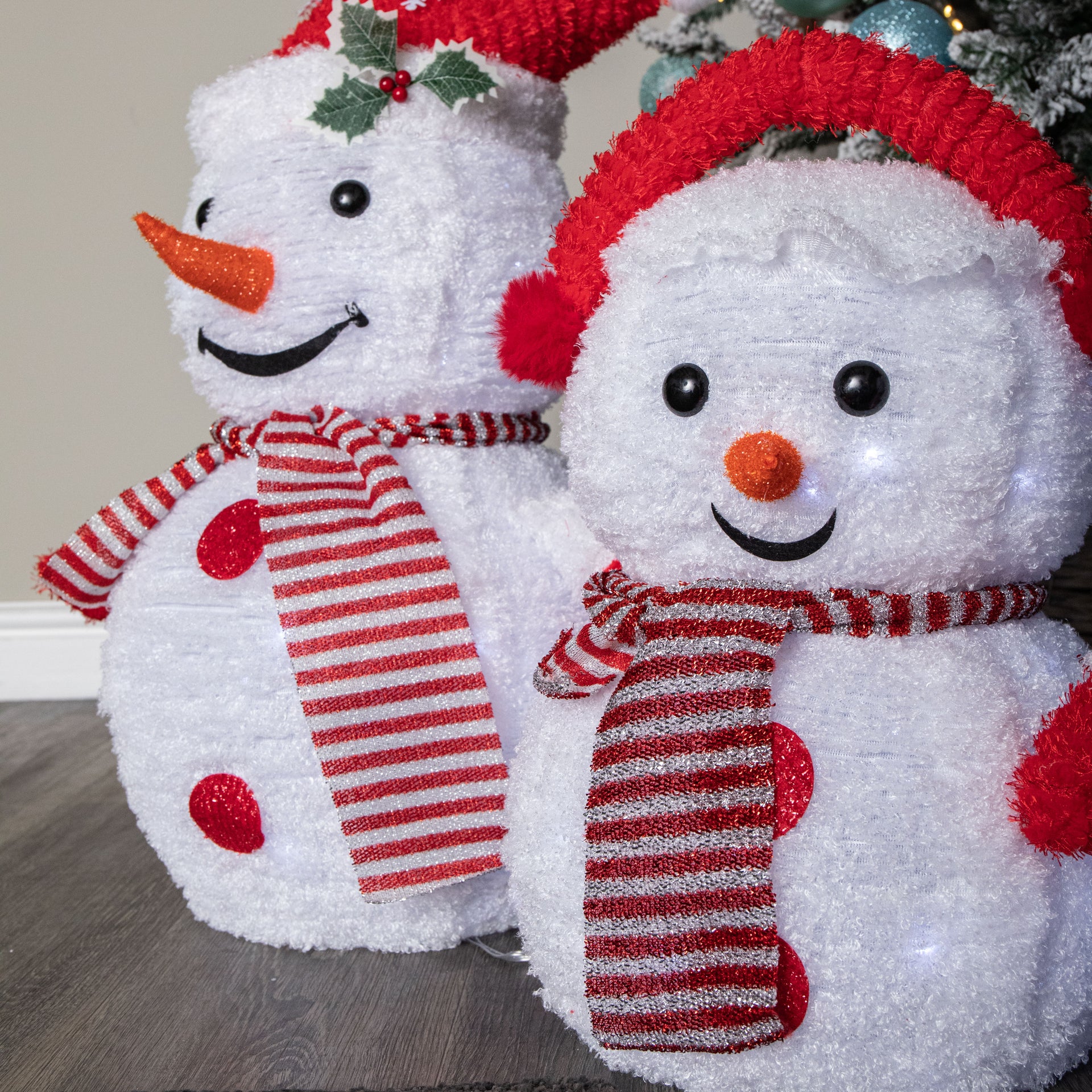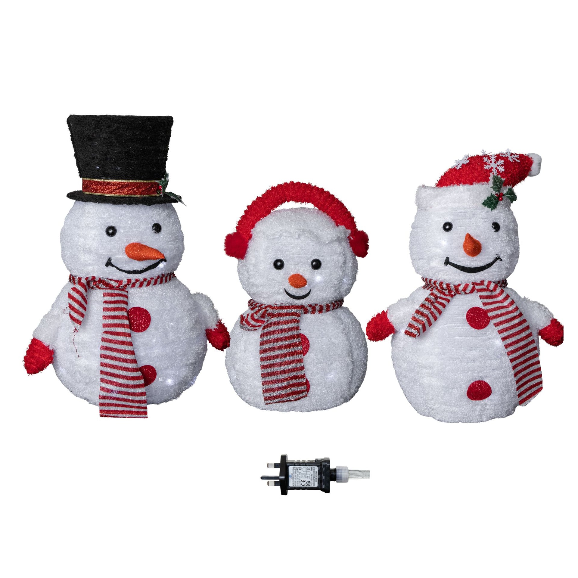 70cm Set of 3 Light up Foldable Cloth Christmas Snowmen with 130 White LEDs
