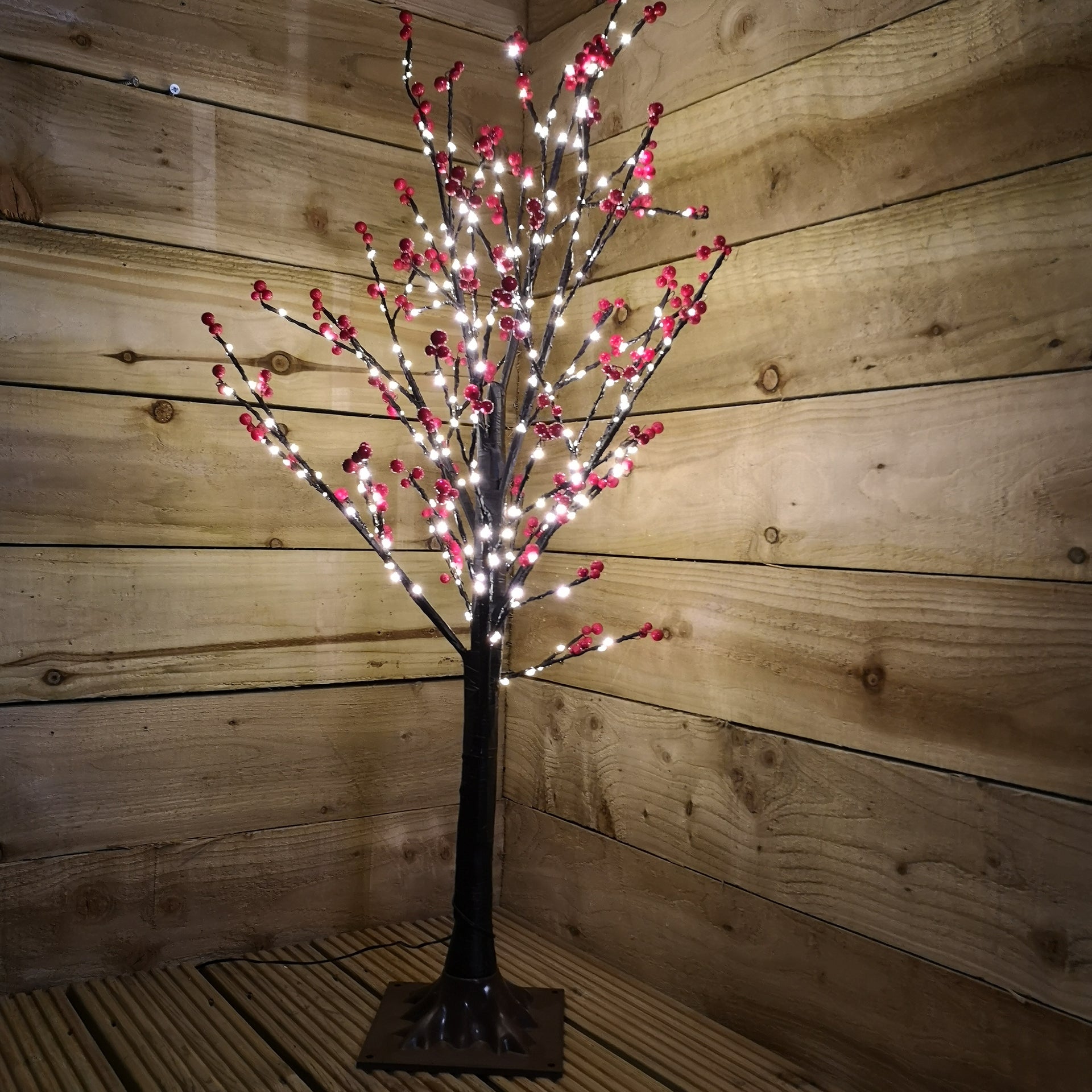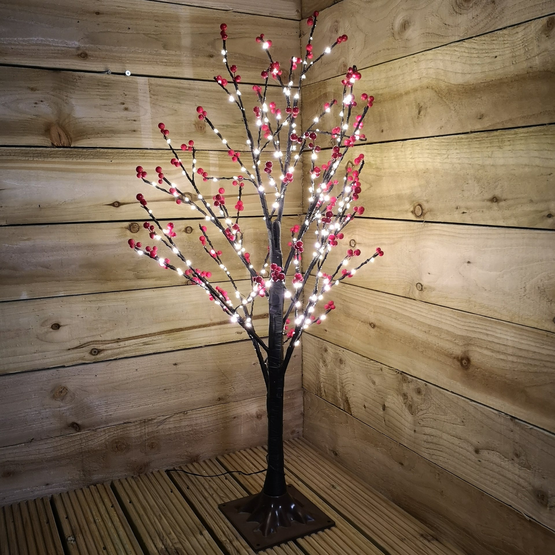90cm 3ft Christmas Lit Black Twig Tree Red Berry 240 Warm White LED