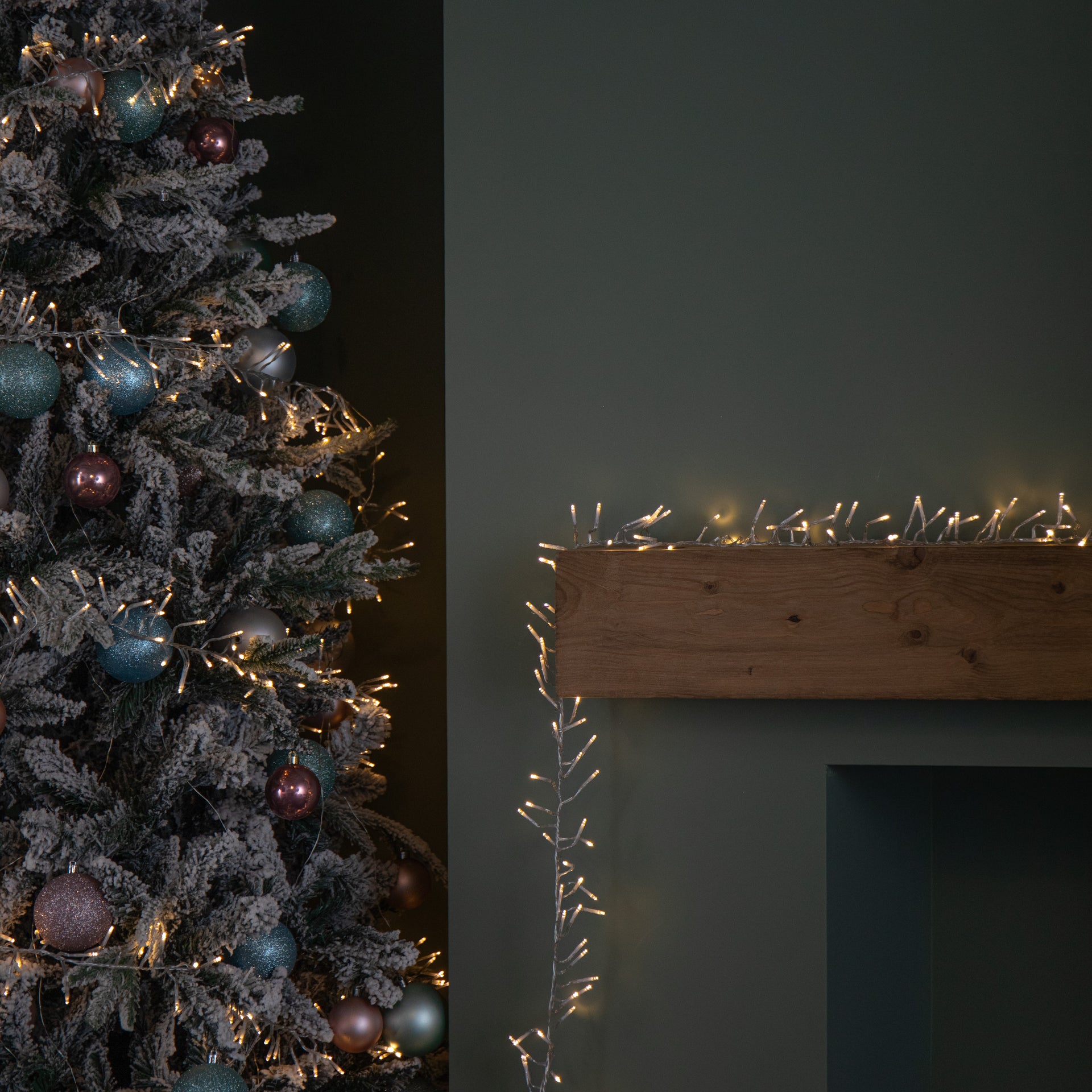 9.3m 720 LED Christmas Cluster String Lights with Timer in Warm White on Clear Cable