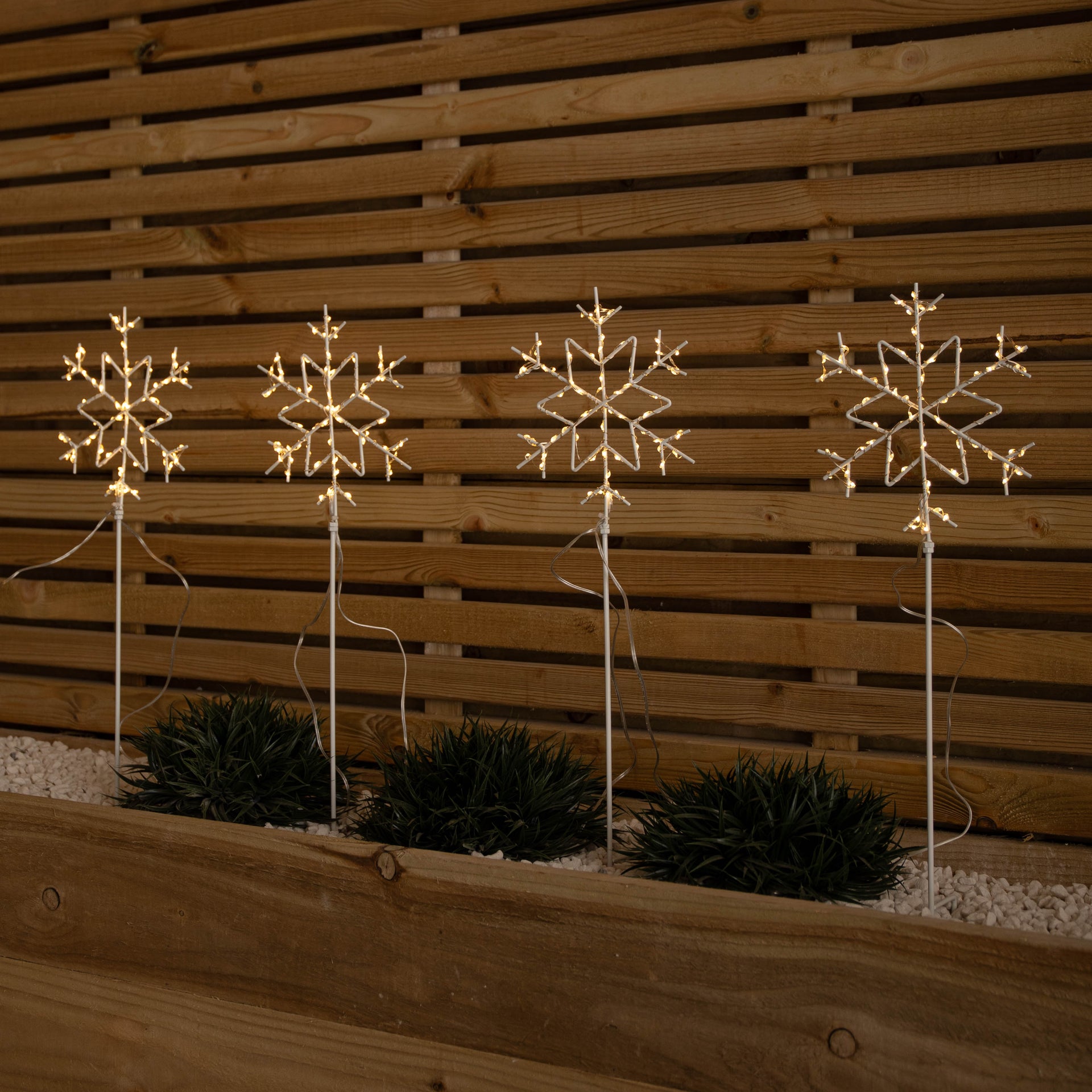 Set of 4 60cm Light up Christmas Snowflake Path Lights with 260 Warm White LEDs