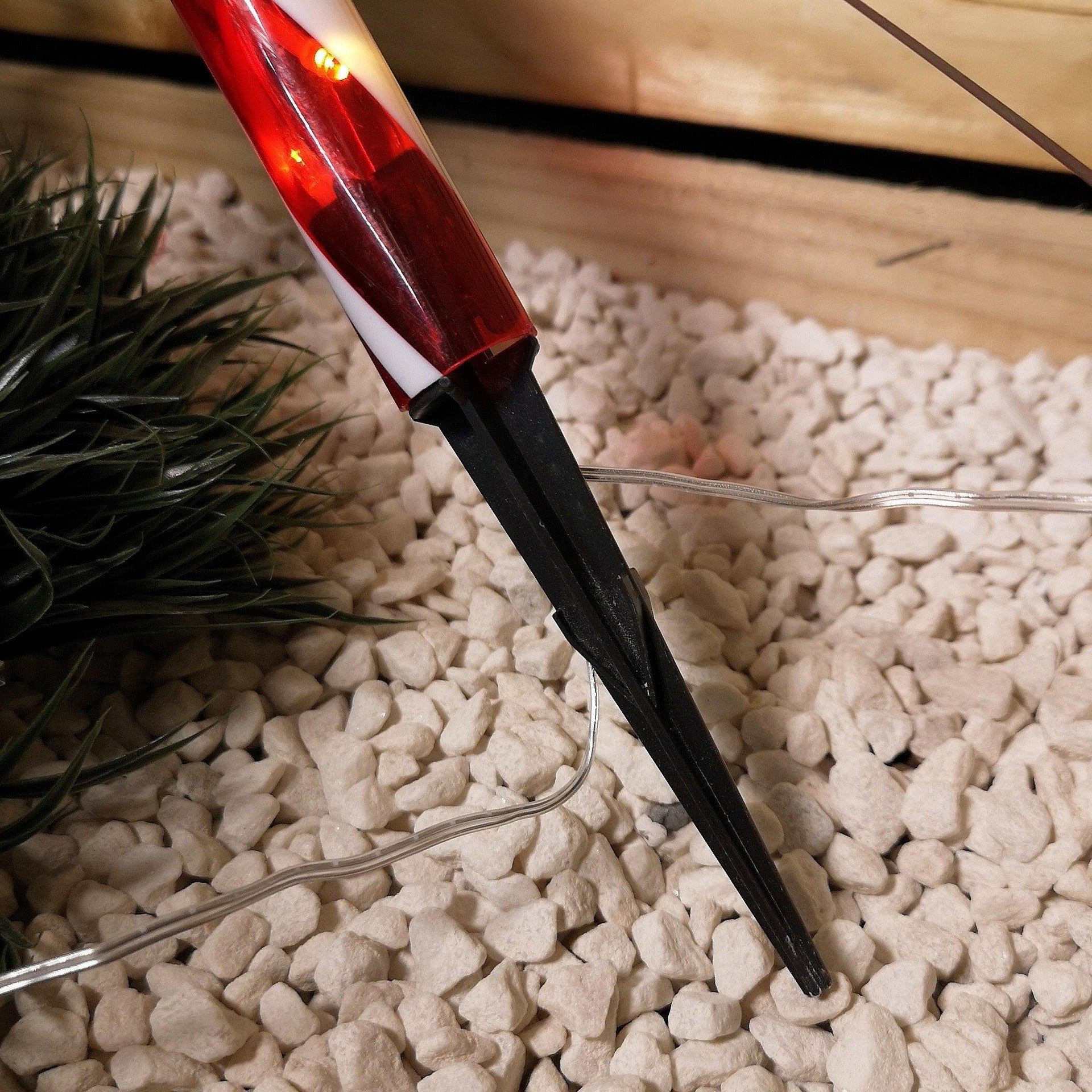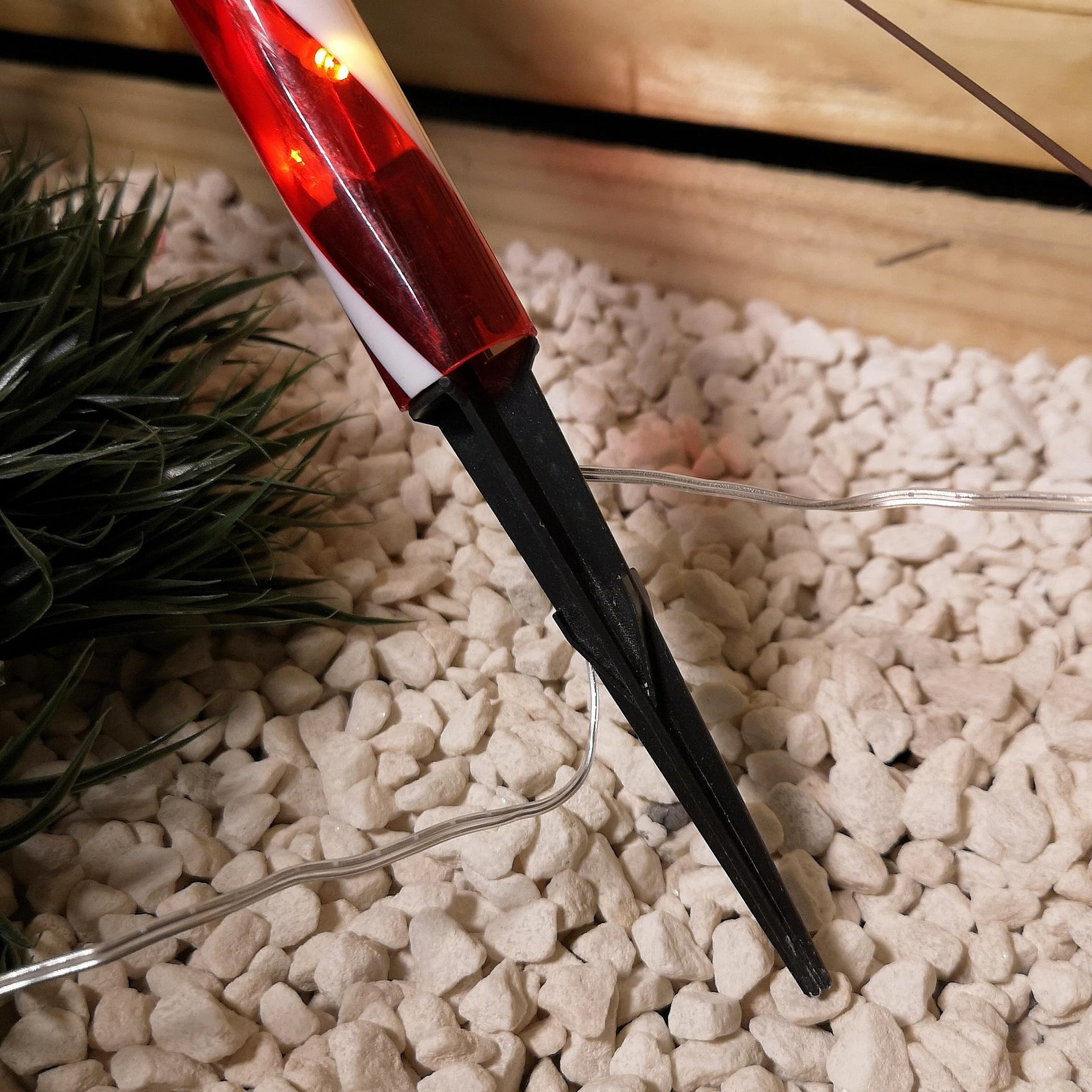 Set of 4 Large Light up Red & White Stripe Christmas Candy Cane Garden Stakes with LEDs