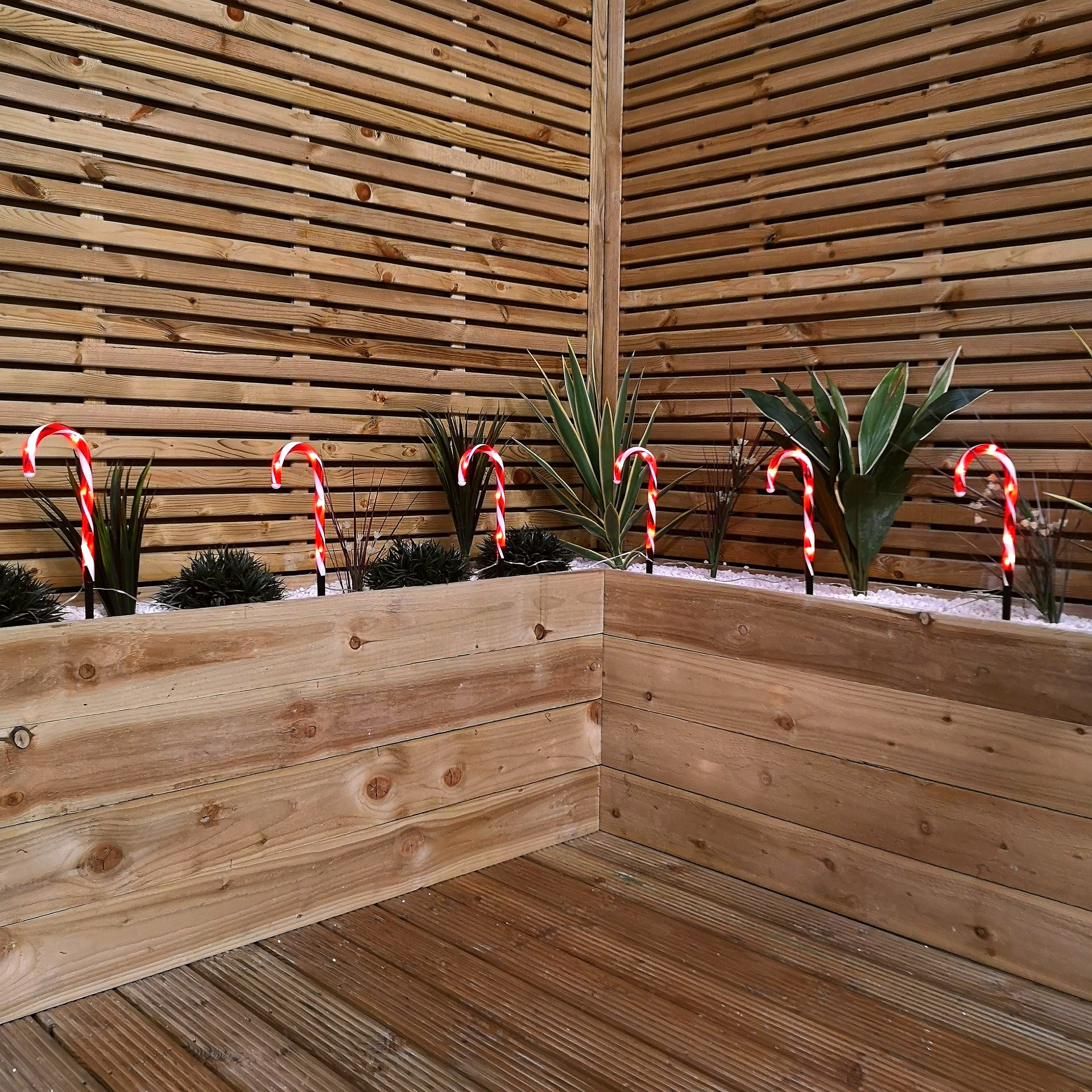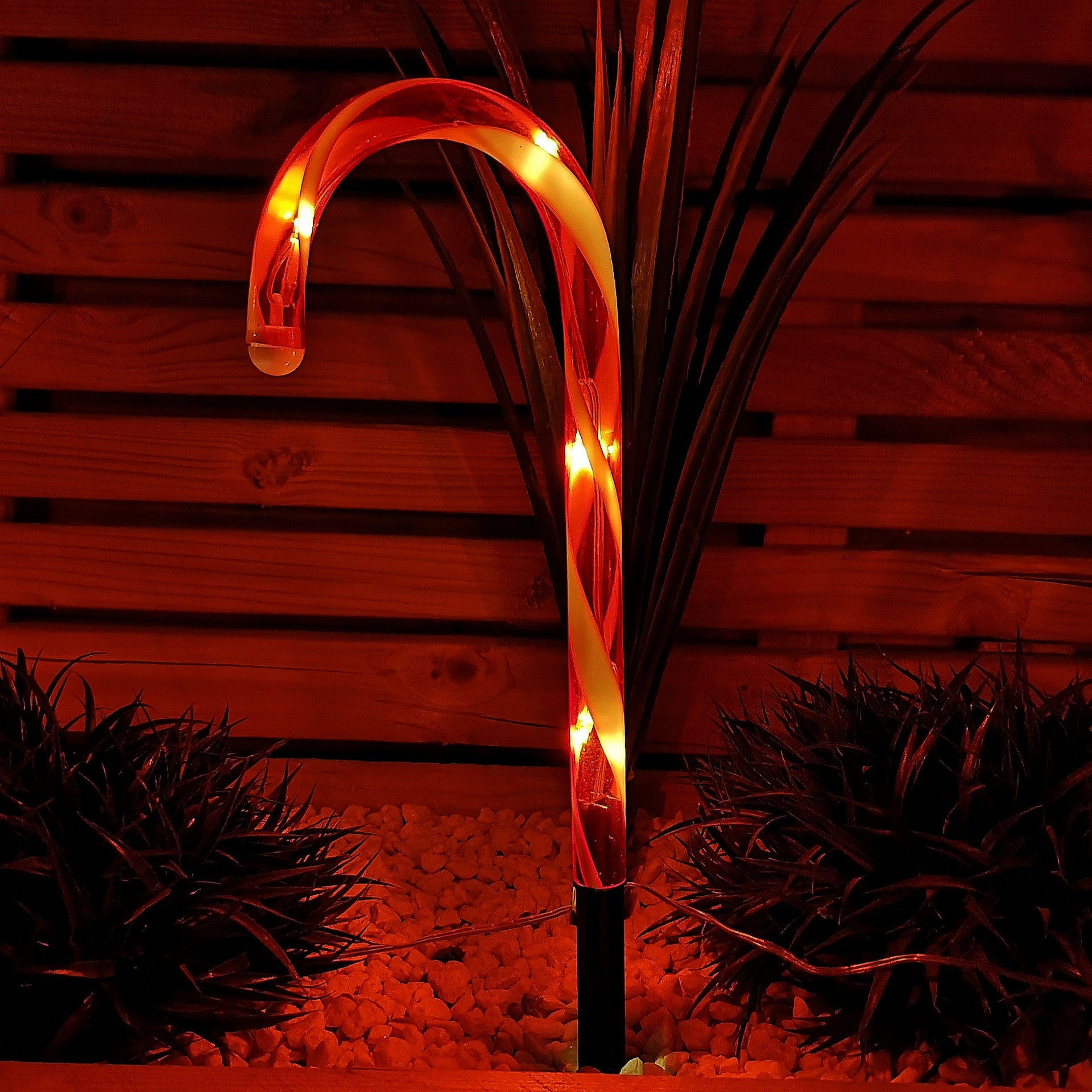 Set of 6 Light up Red & White Stripe Christmas Candy Cane Garden Stakes with LEDs