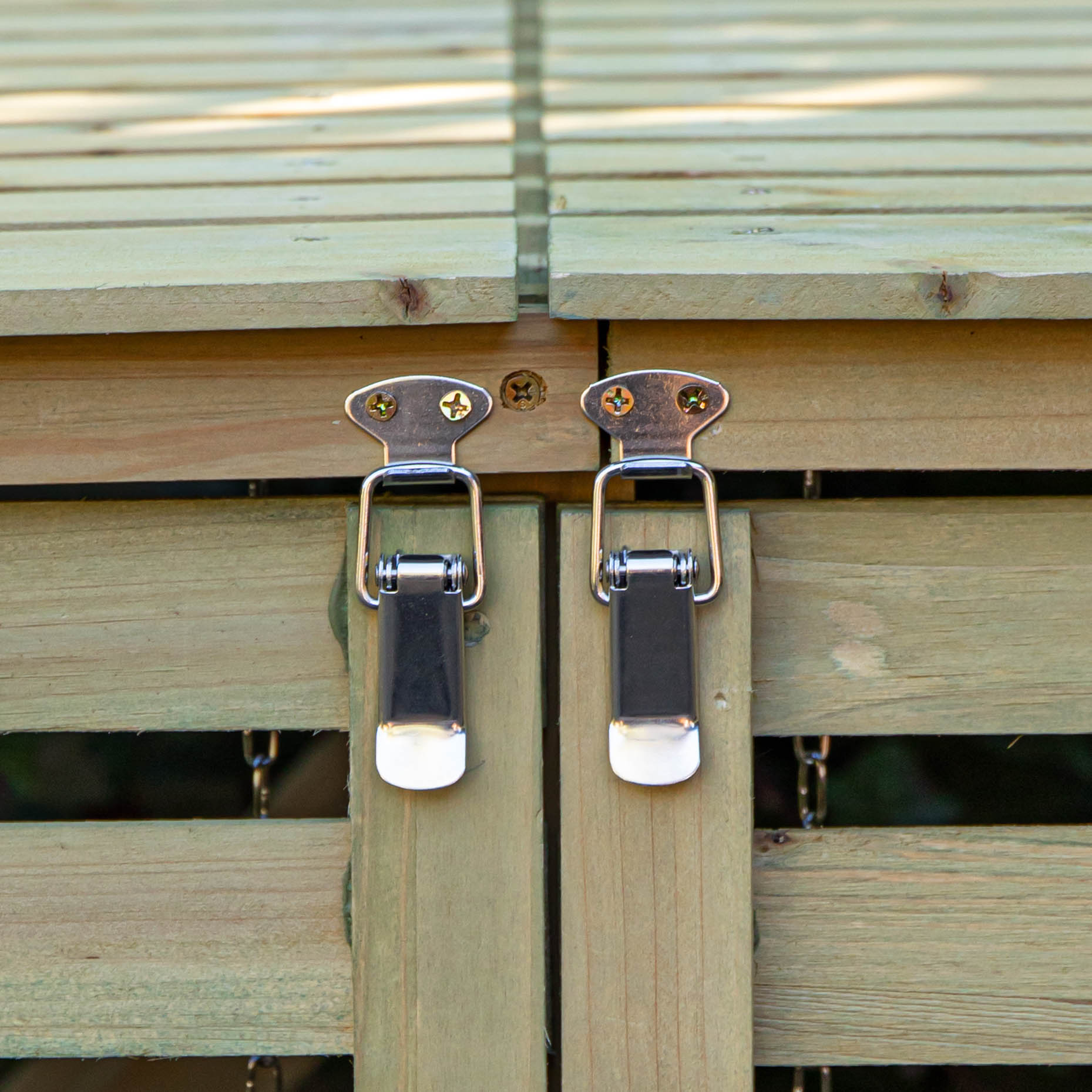 Absolutely pleased with our bin stores, they fitted together easily, Chains to open lids are great. They look really smart and for the money I'd highly recommend them.