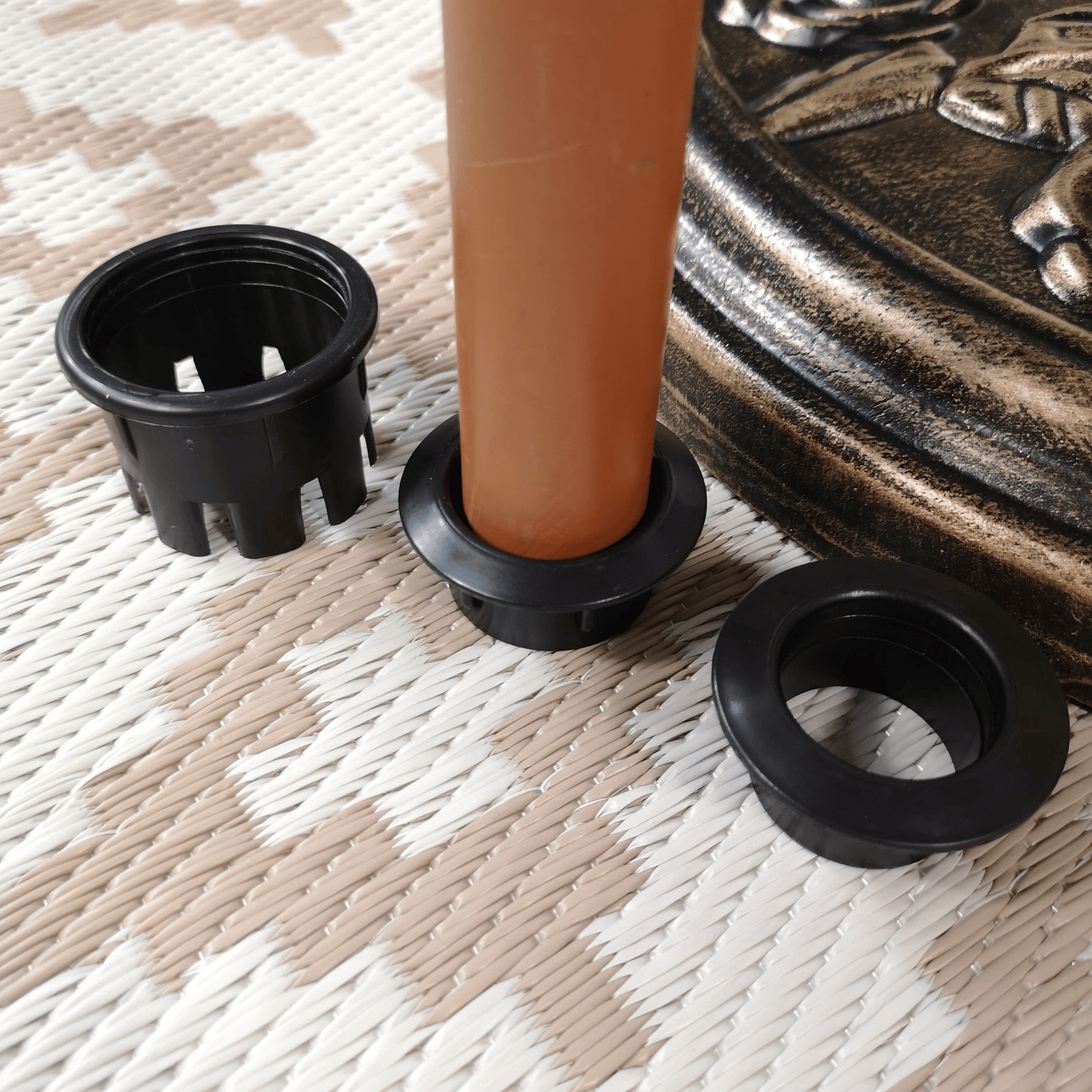 A built-in tightening knob allows you to clamp the parasol pole firmly in place, providing extra peace of mind during outdoor gatherings or relaxing afternoons. Supplied with 3 removable collars, this parasol base is compatible with a range of parasol pole diameters. Simply select the correct size and use the tightening knob to secure the parasol in place.