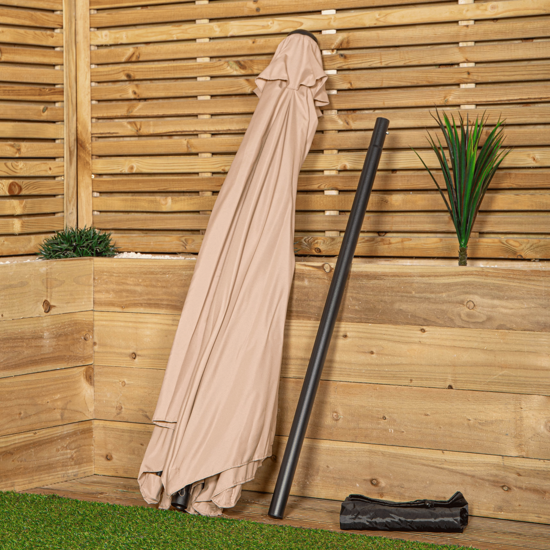 Featuring a 2.7m Beige canopy, this parasol is designed to provide maximum protection and shade. Made from high quality polyester, the canopy shields from harmful UV rays, offering a cool, shaded retreat while keeping you safe from sun exposure. With a crank mechanism, effortlessly open and close the parasol with a smooth, easy-to-use crank handle, ensuring a seamless experience whilst providing added convenience and reducing any strain.