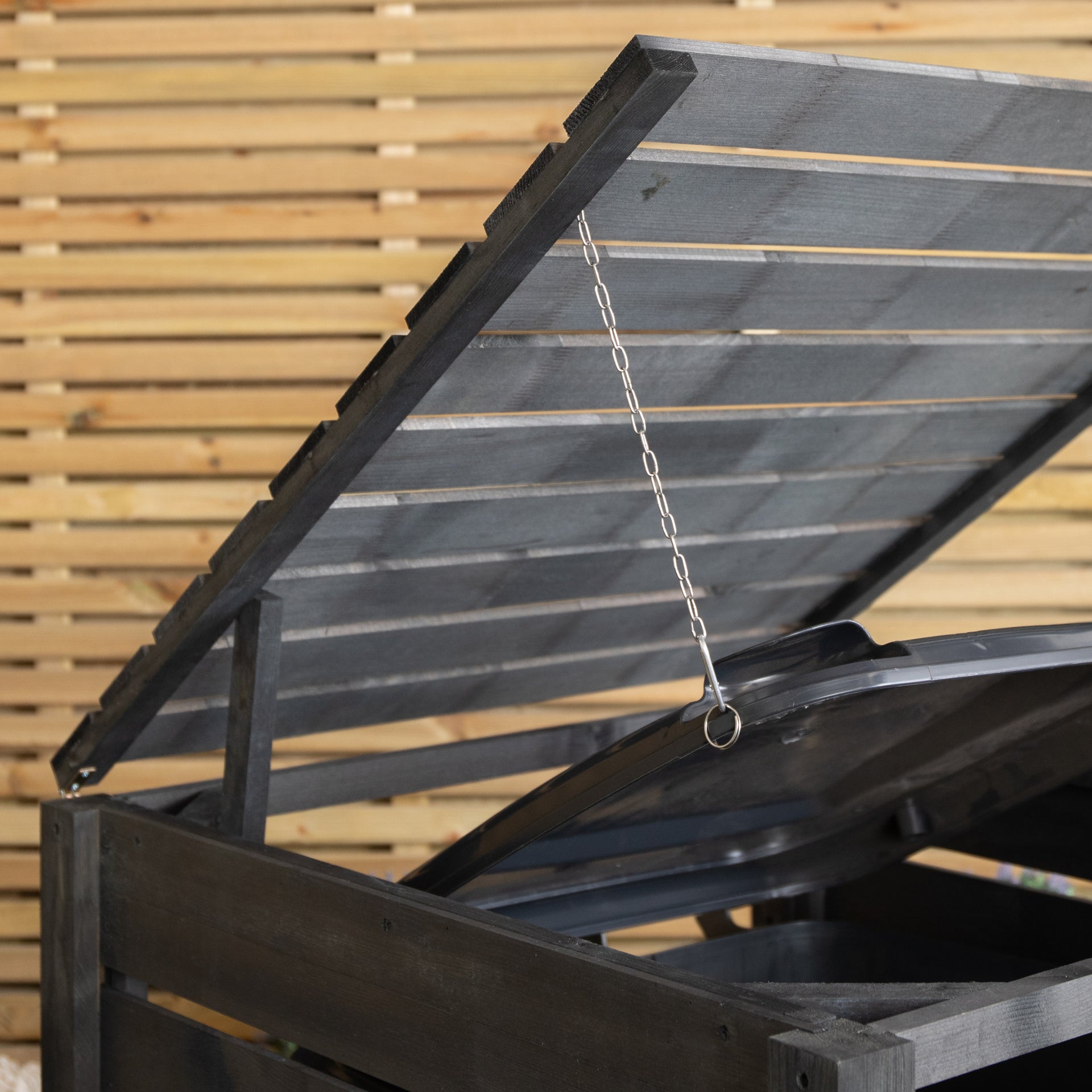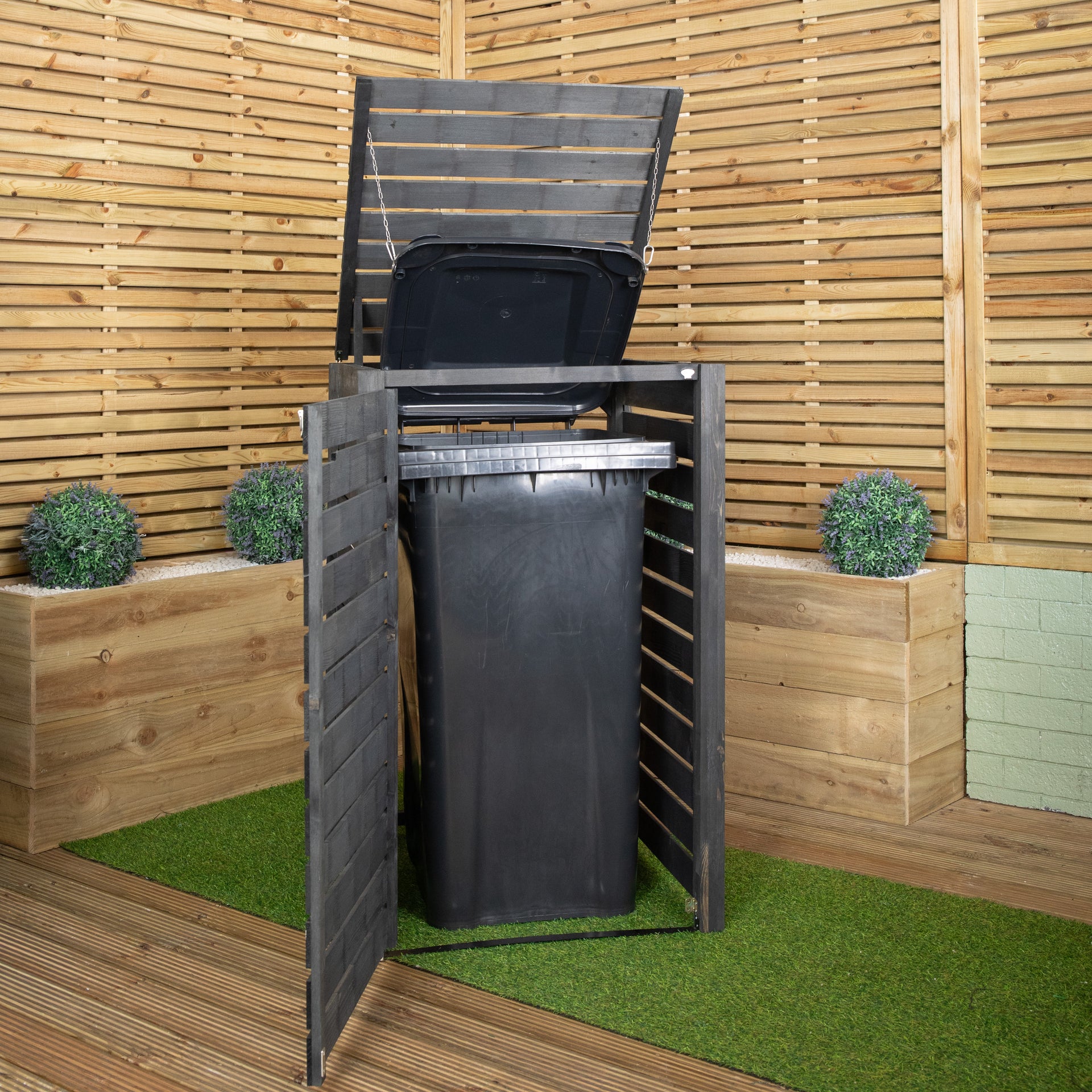 Finished in a modern anthracite shade and constructed from strong and durable wood, this outdoor bin store blends seamlessly into contemporary and traditional gardens. Ideal for homeowners seeking an attractive, space saving waste management solution. This garden bin store adds both aesthetic appeal and functional convenience to any outdoor area.