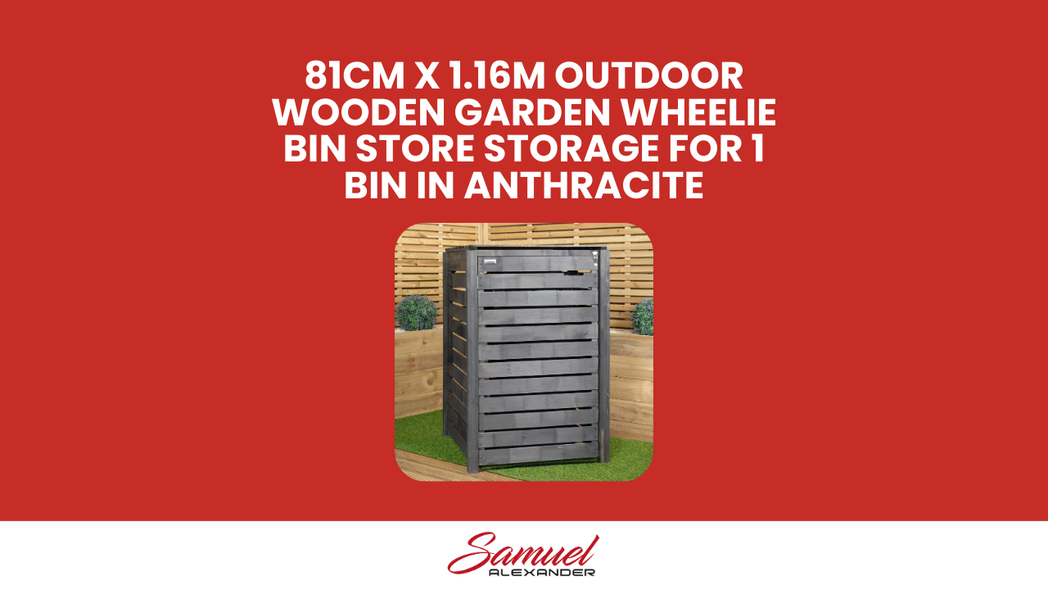Enhance your outdoor space with the Samuel Alexander 74cm x 116cm Outdoor Wooden Garden Wheelie Single Bin Store Storage in Anthracite. A stylish, practical, and durable solution for hiding unsightly bins while keeping your garden neat and organised. Perfect for modern homes, this wooden wheelie bin store is crafted to neatly enclose a standard sized 240 litre wheelie bin, offering both smart storage and reliable protection.