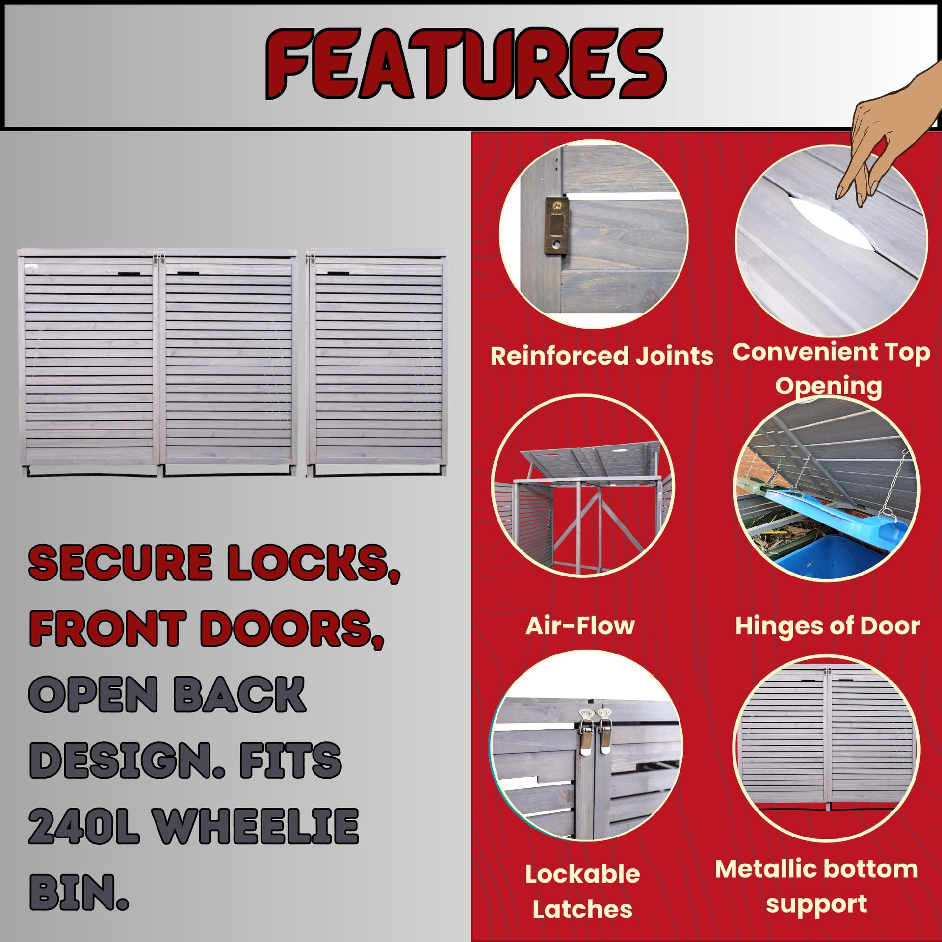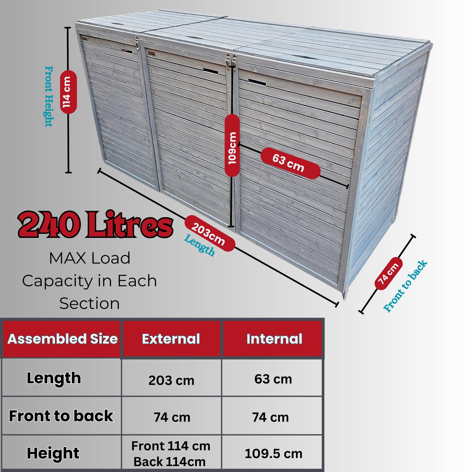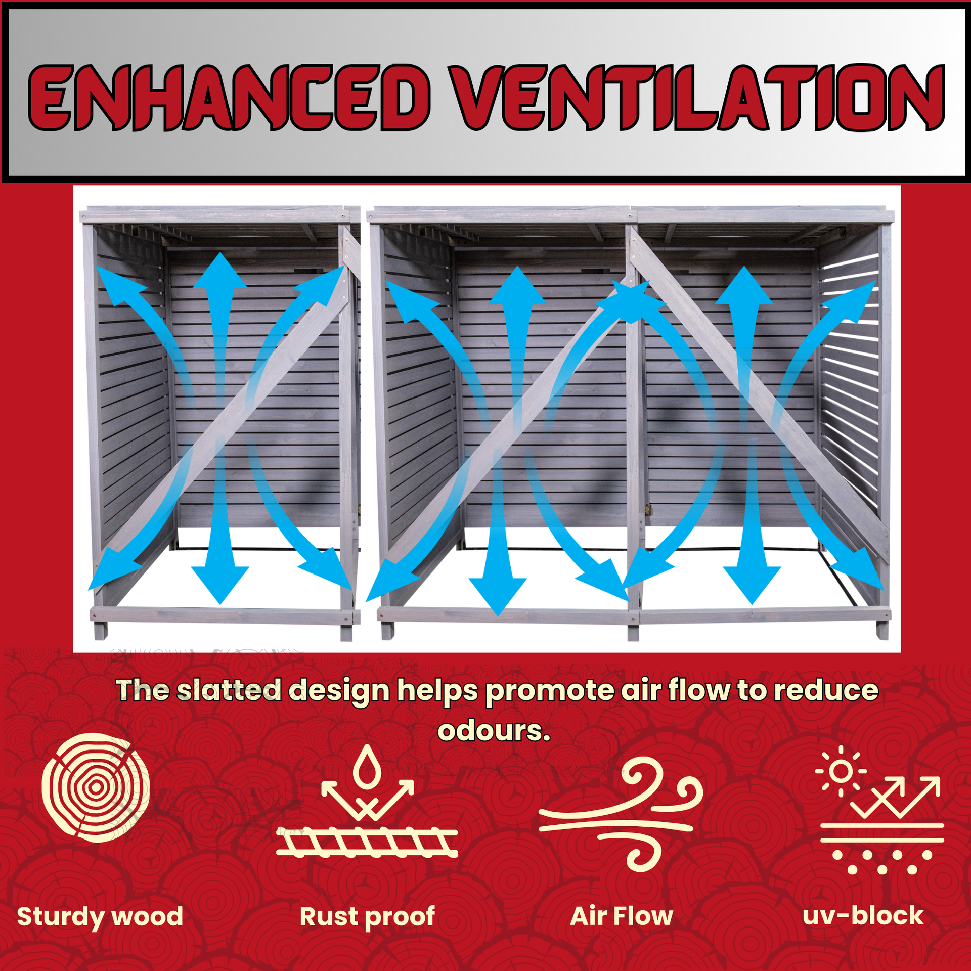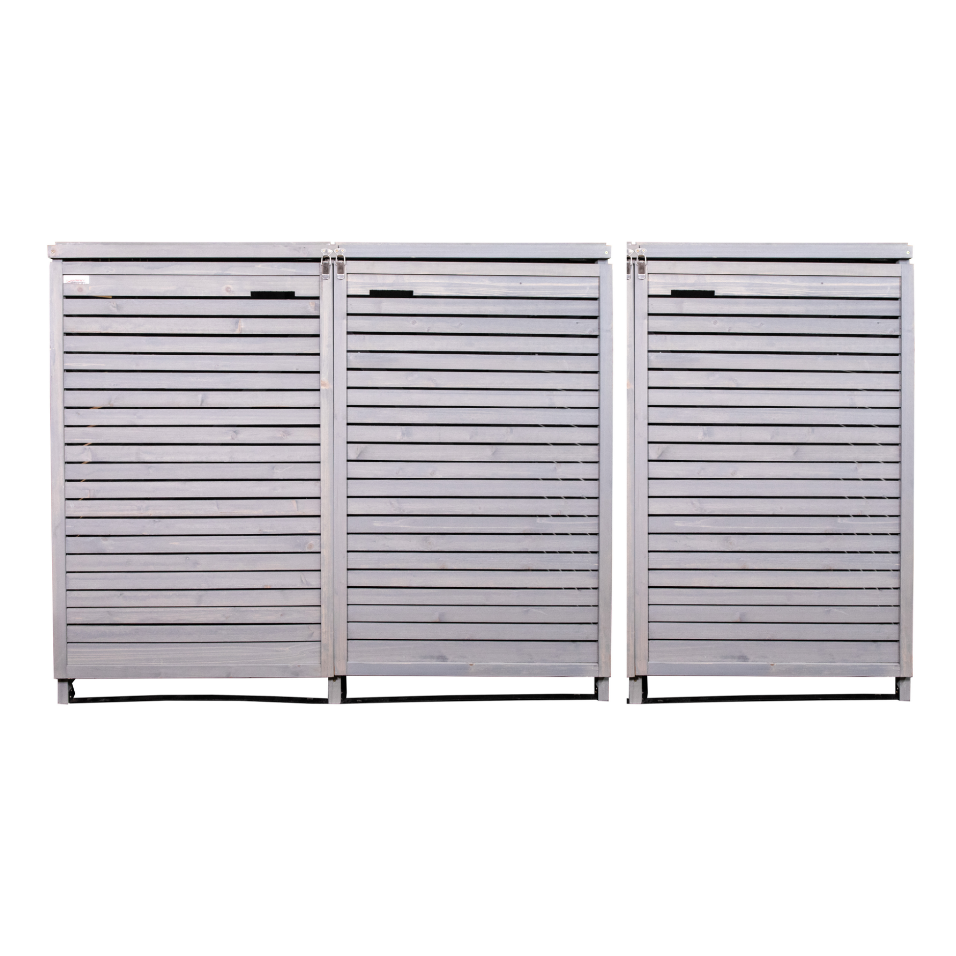 Factory Seconds 2.03m x 1.14m Large Grey Wooden Outdoor Garden Triple Wheelie Bin Store Storage for 3 Bins