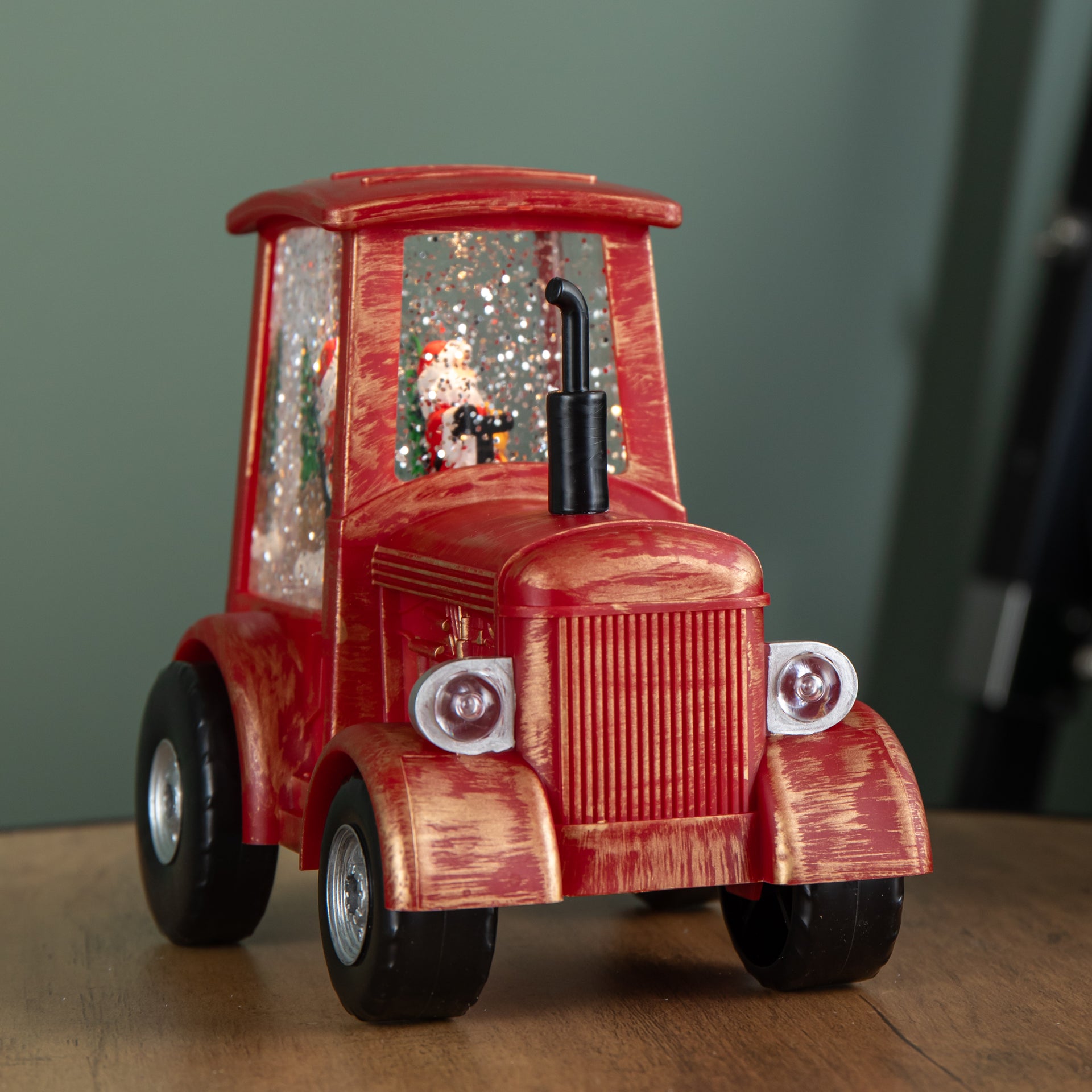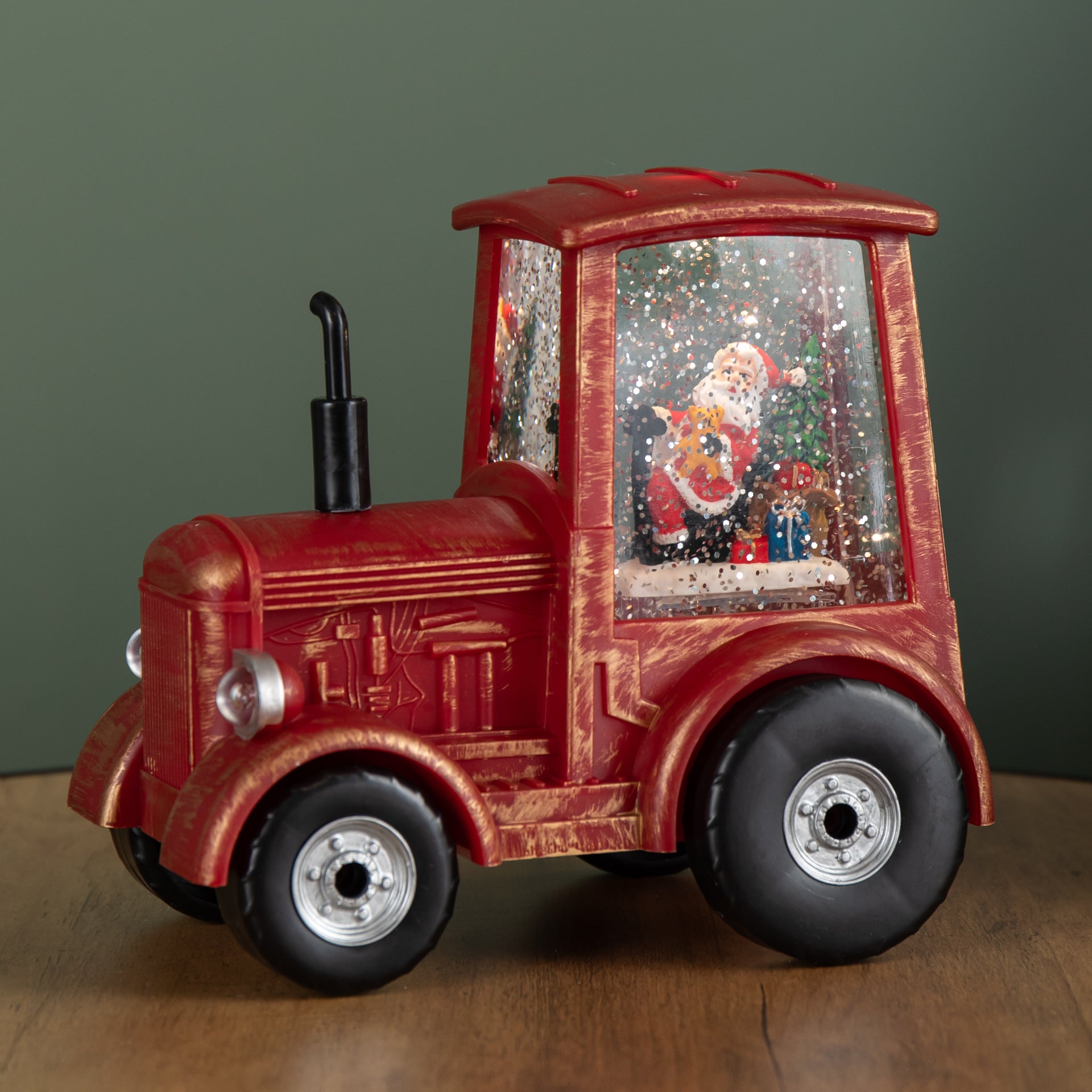 15cm Battery Operated Light up Christmas Tractor Water Spinner with Santa and LEDs