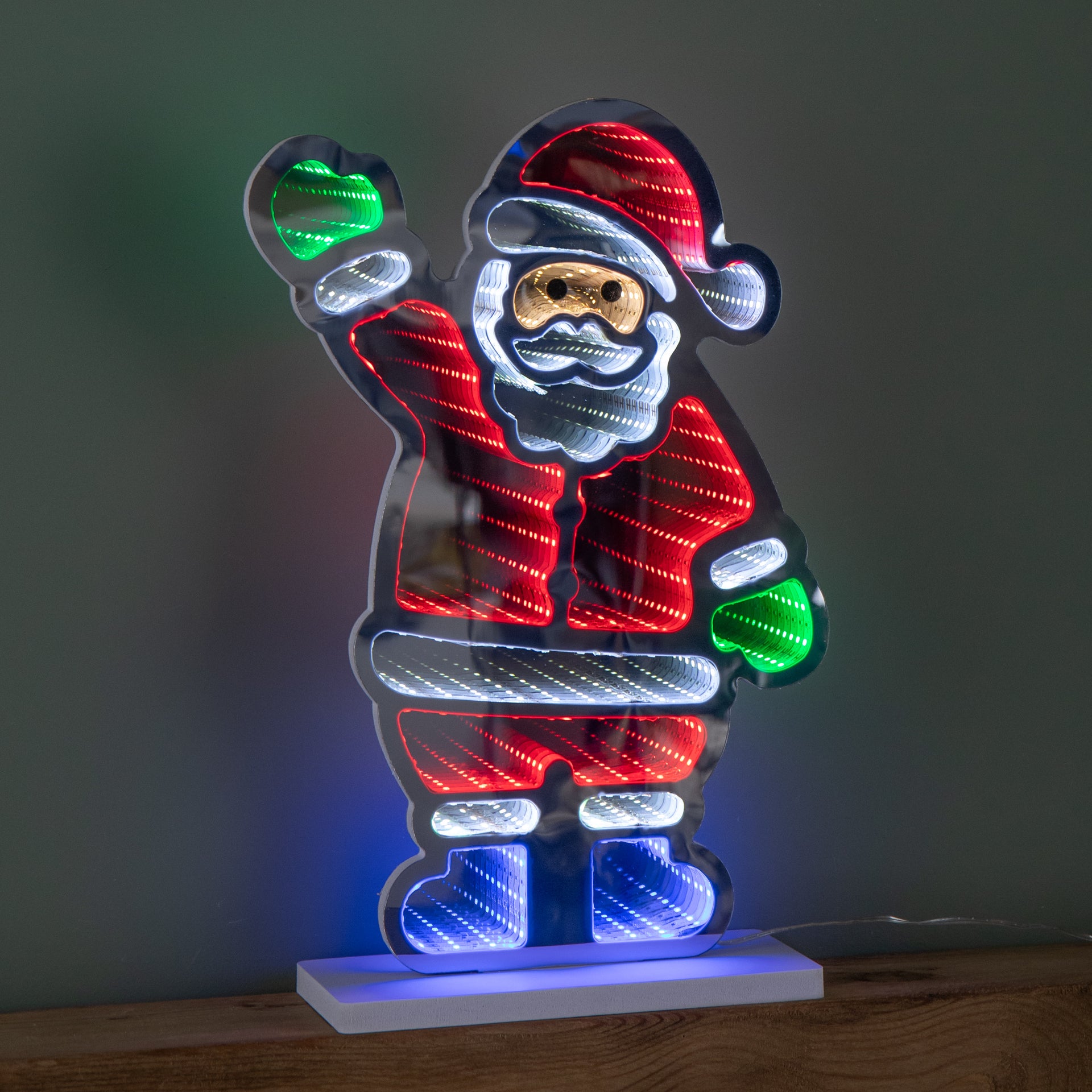 40cm Light up Waving Santa Infinity Light Christmas Decoration with Multi-Coloured LEDs