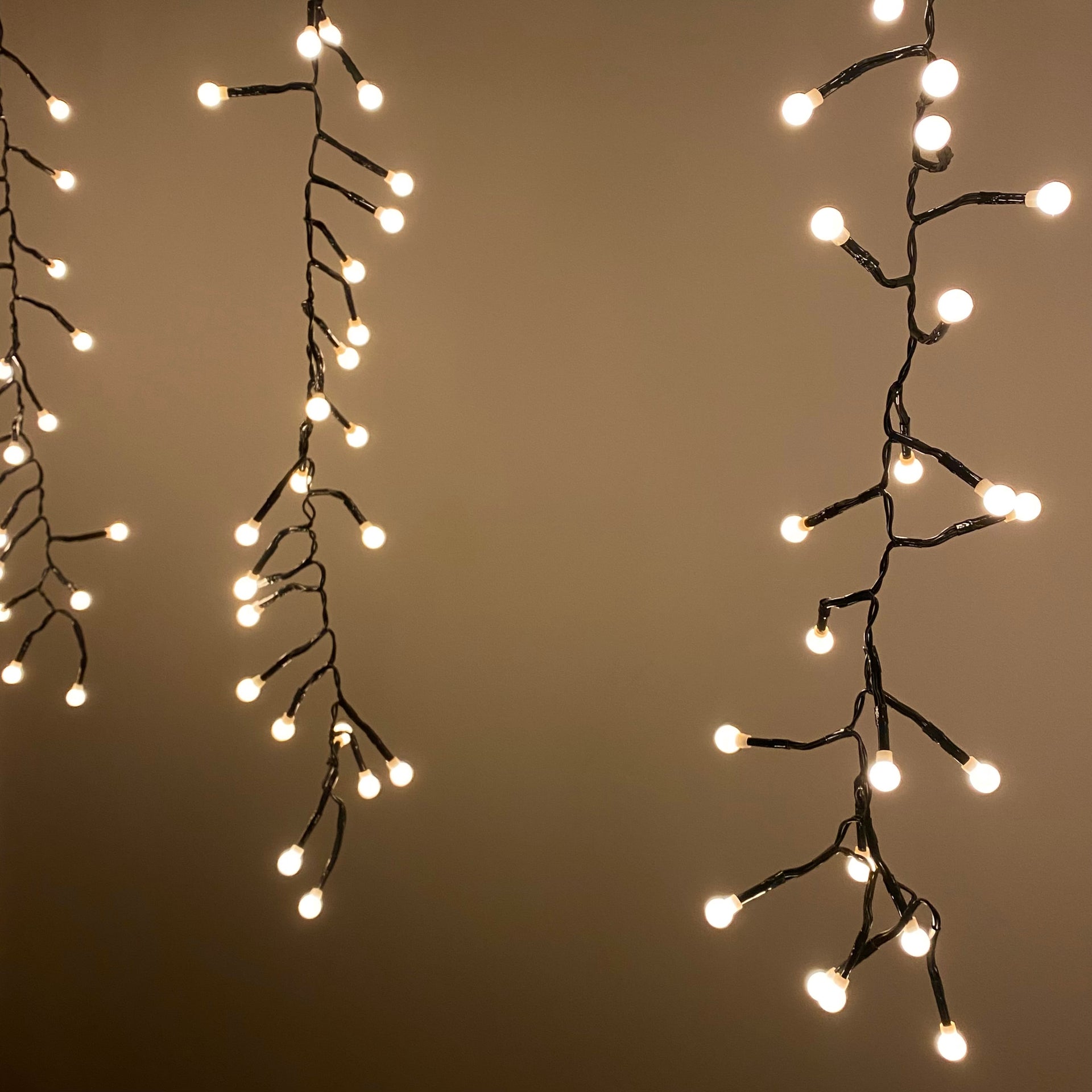 - 4.8m Multi Function Frosted Warm White LED Cluster Curtain Lights Christmas Decorations with Timer