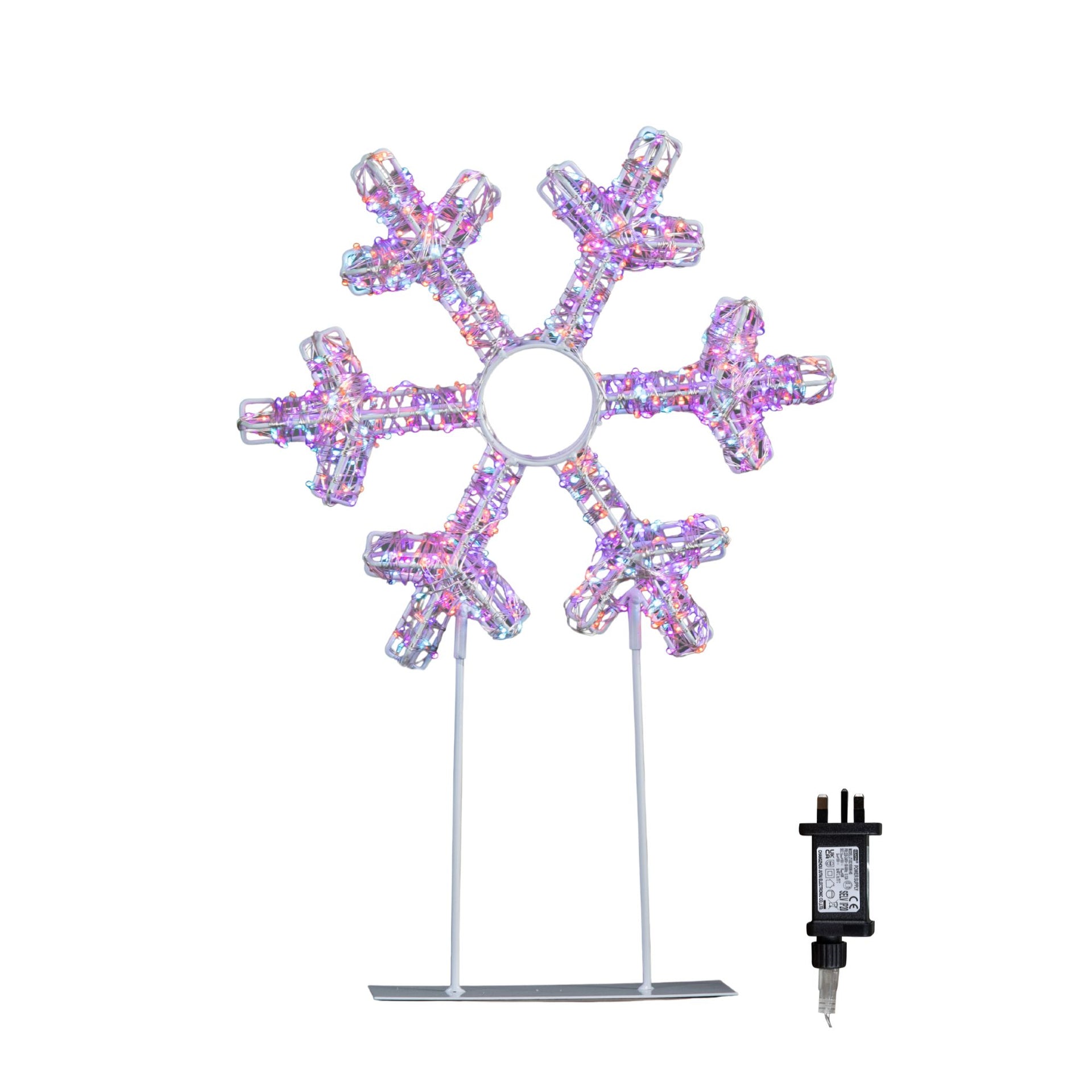 45cm Light up White Christmas Snowflake on Metal Stand with Twinkling Rainbow LEDs