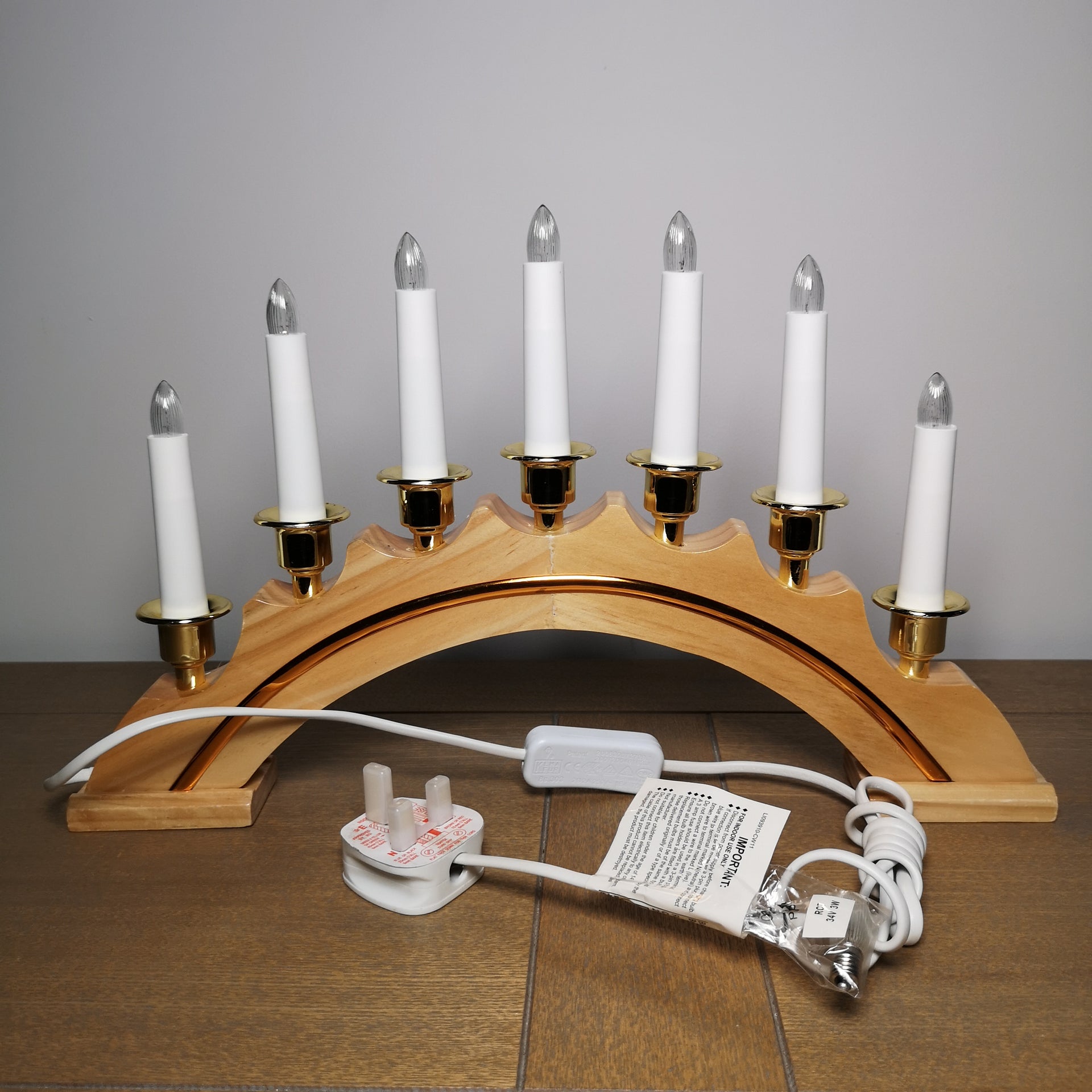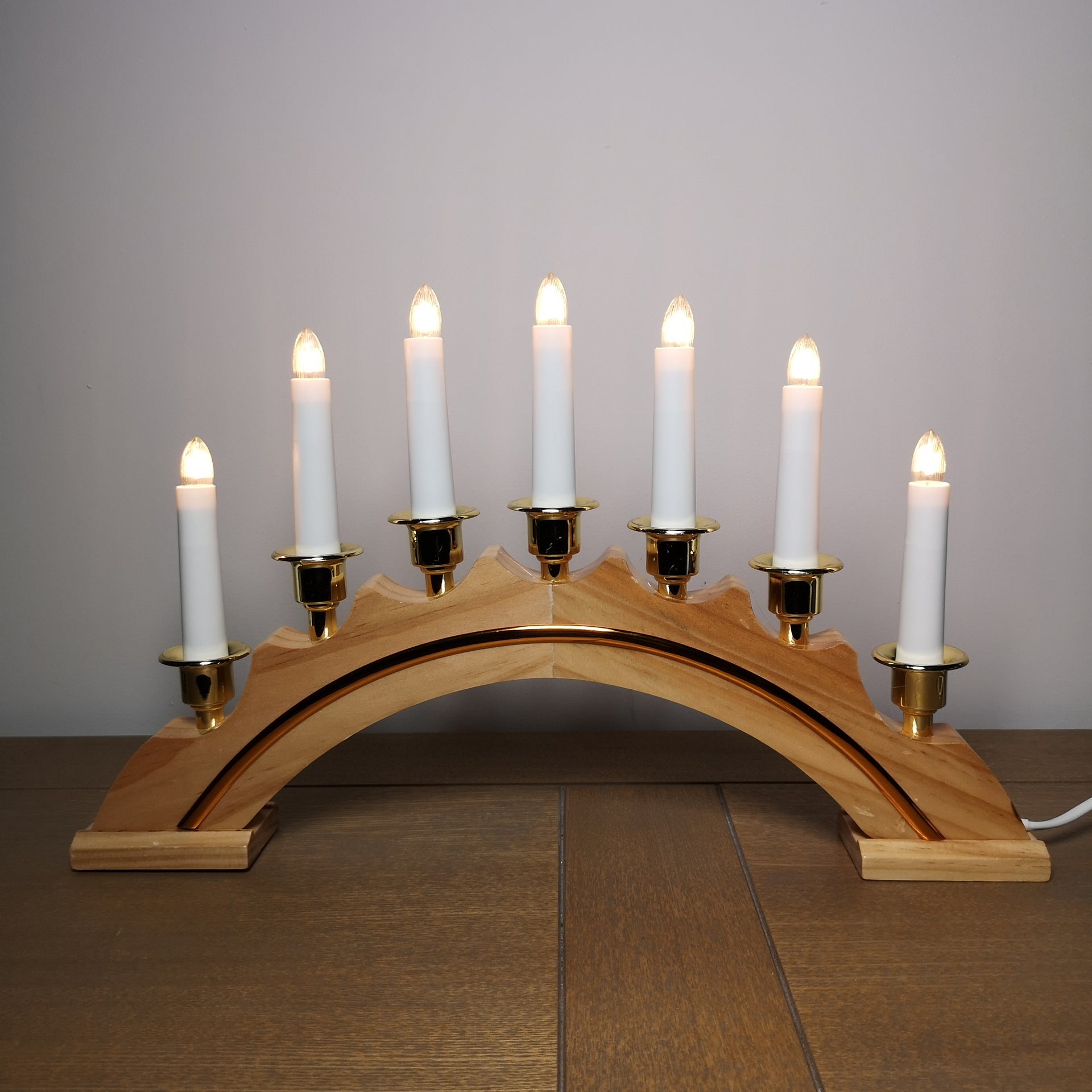 - 42cm Premier Christmas Candlebridge with 7 Bulbs in Light Wood Mains Powered