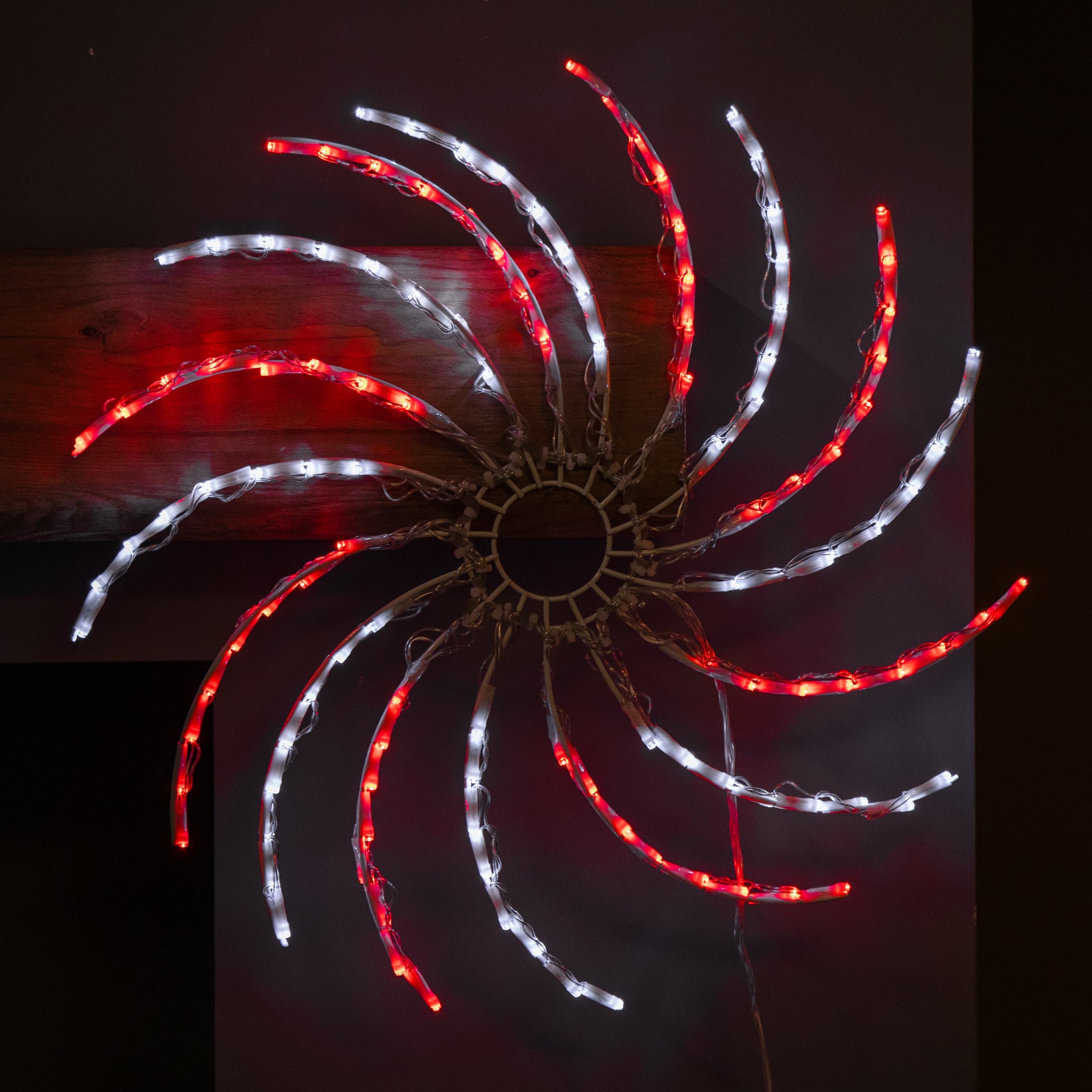 Measuring 50cm in size this decoration features 128 vibrant red and white LED lights arranged across the spinner's symmetrical arms, each arm glows in alternating colours for a dynamic, flashing effect that simulates motion. The result is a captivating light show that brings energy, colour, and joy to any festive setting. Mains powered with a generous 10m clear power cable from product to plug for flexible placement.