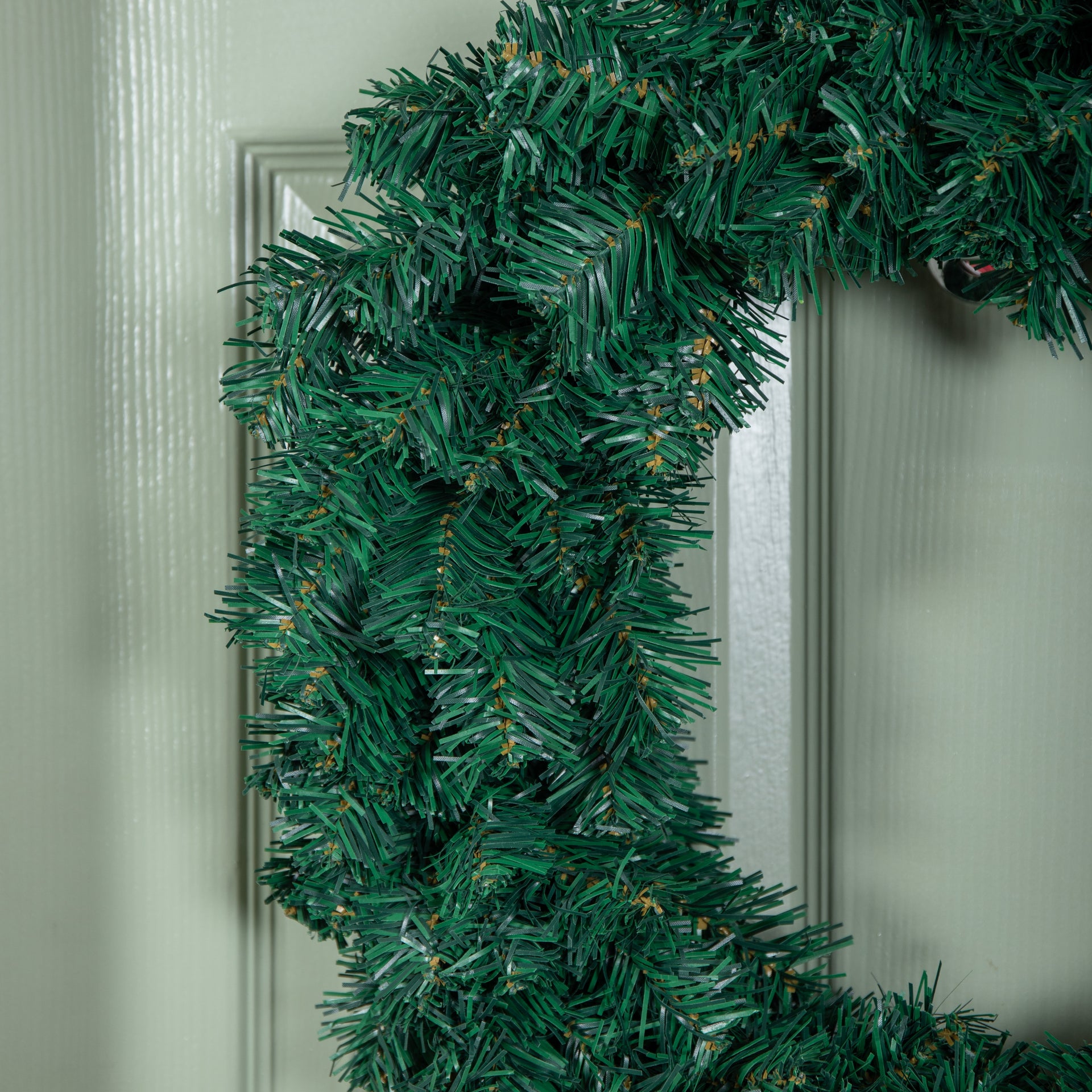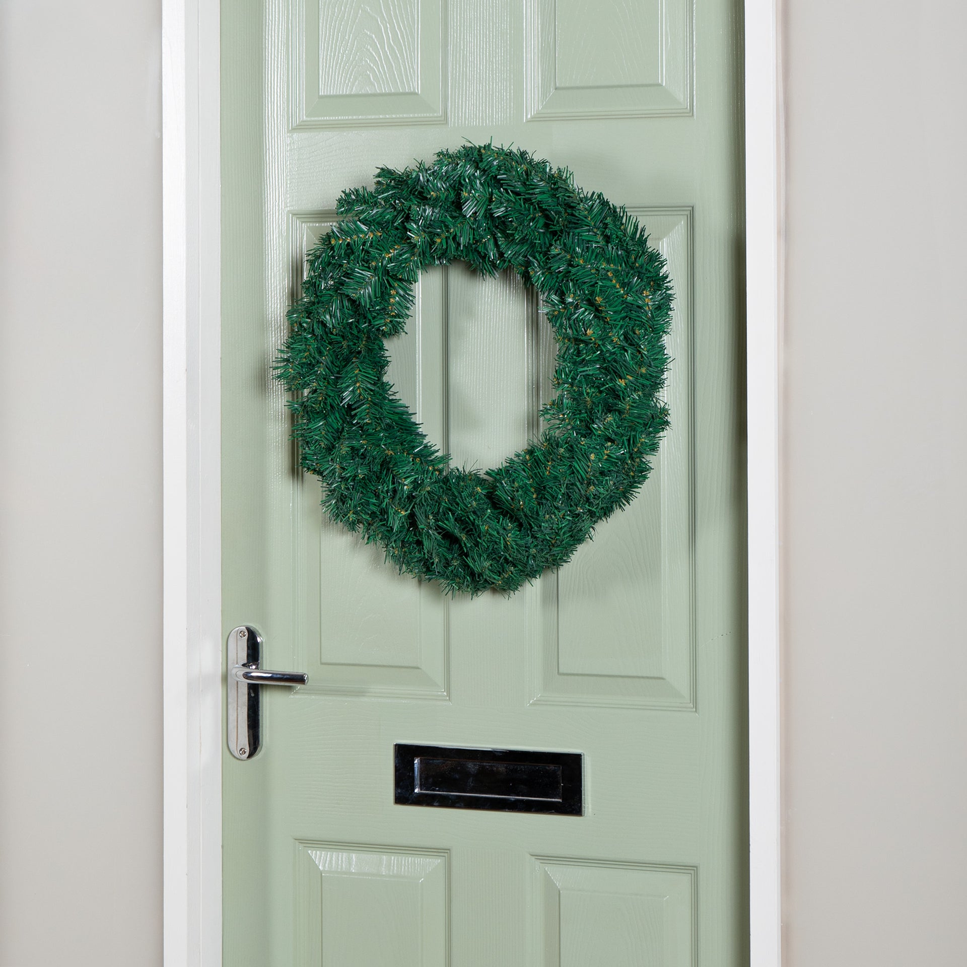 Measuring 60cm in diameter, this wreath makes a striking statement without overwhelming your space. Its plain green design provides plenty of room to add your own decorations, allowing you to personalise it with baubles, ribbon, pinecones, berries or lights.