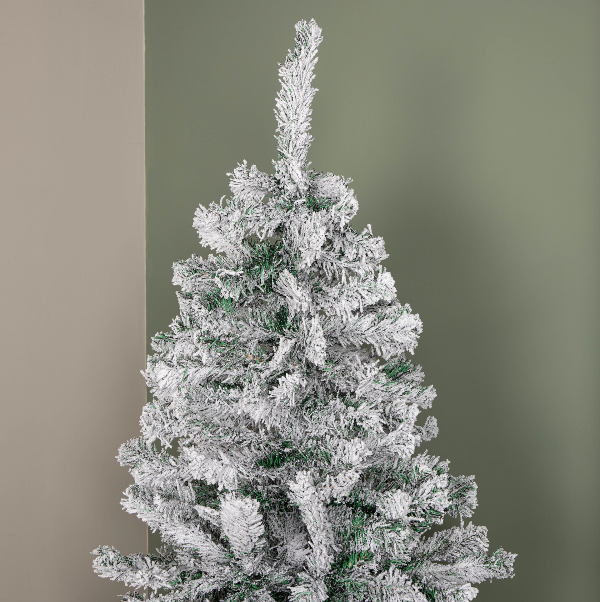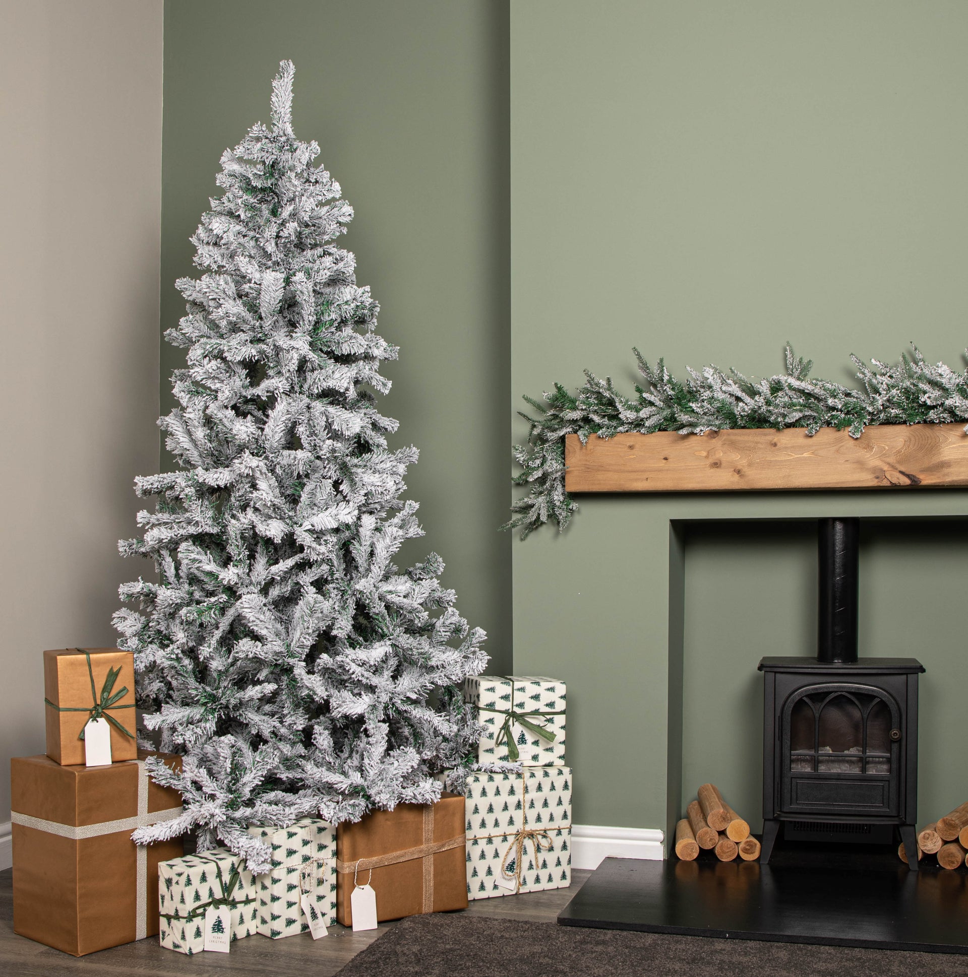 Make a grand statement this year with this 7ft Snow flocked Christmas tree. This artificial tree is the perfect choice for any display, whether it's by the fireplace, in the window or on show in the hallway this is sure to bring the festive cheer to your home and those who visit this Christmas time even Santa himself! Bringing trees indoors has traditionally been used to celebrate winter festivals for thousands of years with the symbol of spring is around the corner. Standing at 7ft tall, (2.1m) this tree provides plenty of room to hang decorations and lights. Made of PVC, the tree is snow flocked giving the look of fresh fallen snow for a wintry feel. The tree comes in sections and has 655 tips with PVC hinged branches allowing you to create a fuller look. With a Green metal base stand, the stand easily folds down allowing for easy storage. Suitable for indoors only. Please note the branches will require to be fluffed/rearranged to achieve the full look as in our images. Product Dimensions Height: 7ft (2.1m) Width: 115cm (at the widest point) Metal stand: 56cm