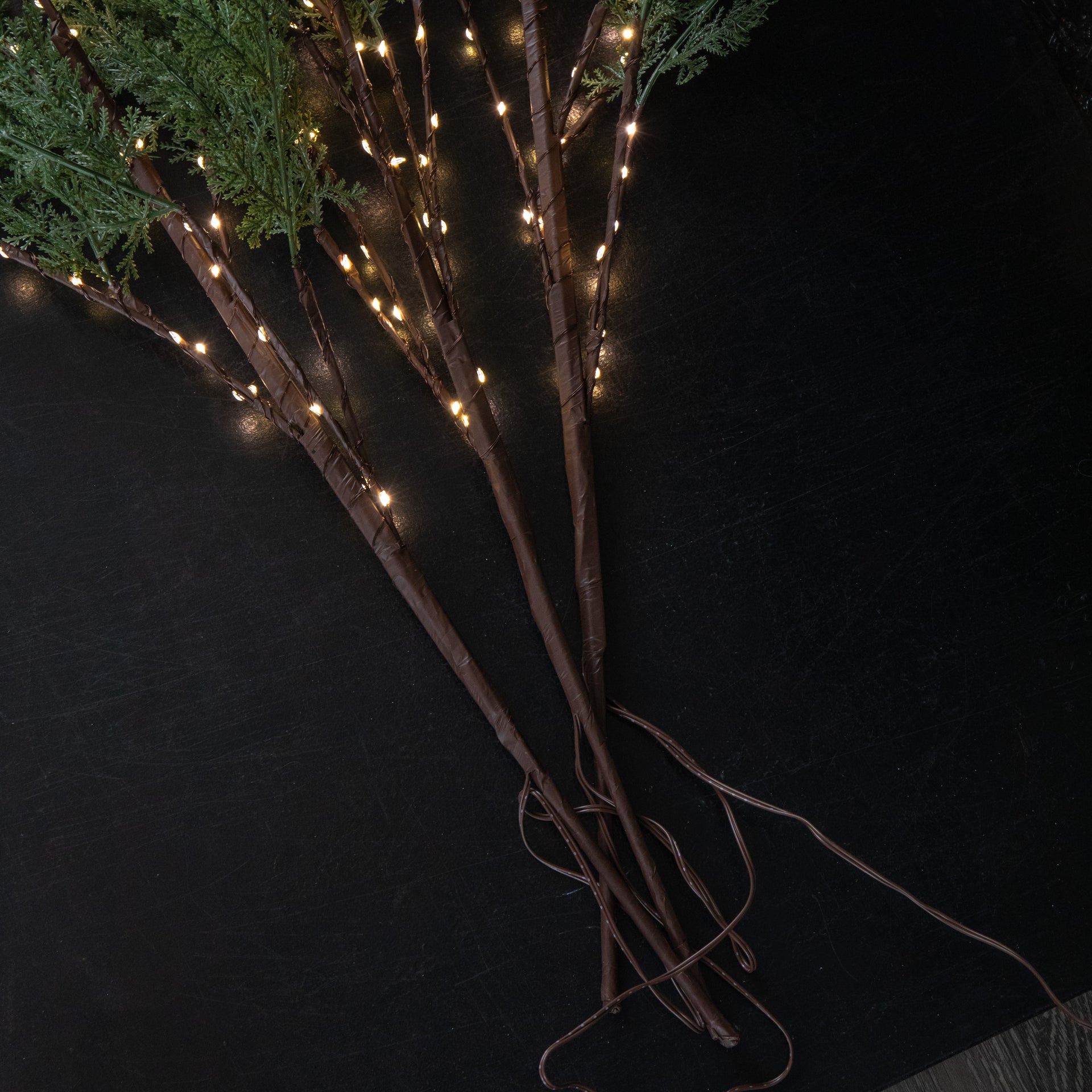90cm Set of 3 Light up Christmas Fir Twig with 90 Warm White LEDs (Twigs only)