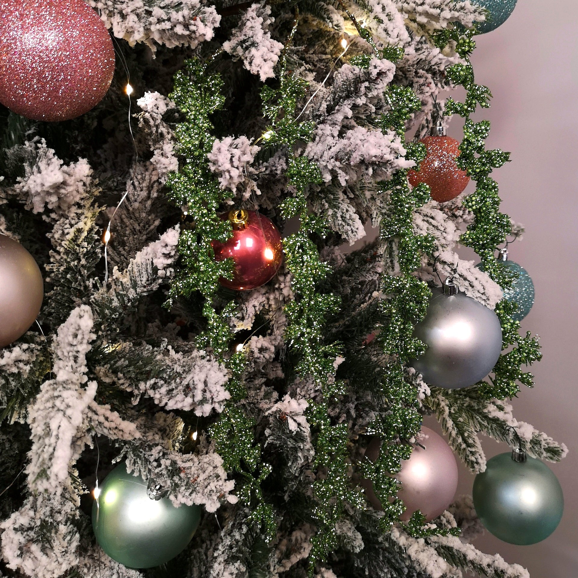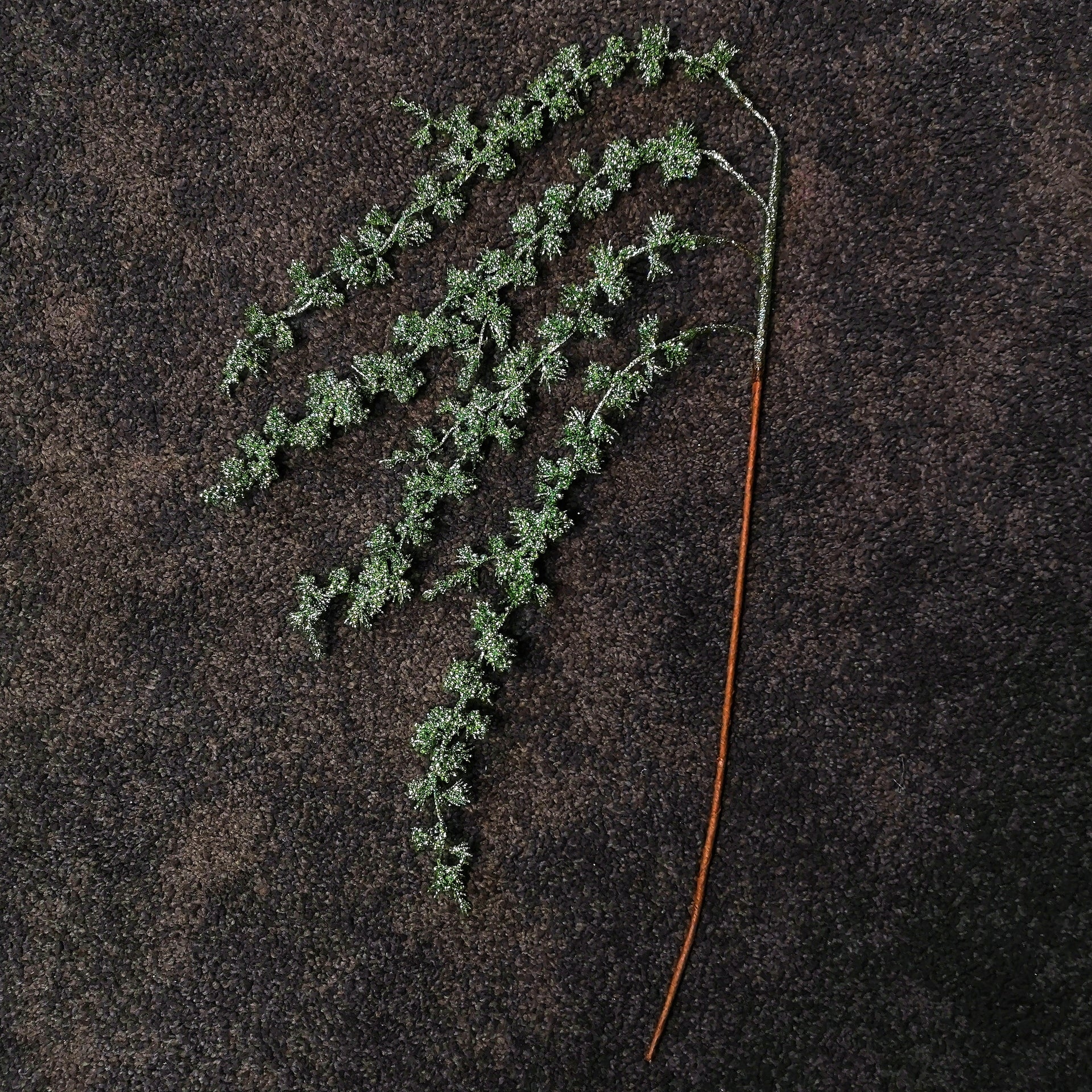 96cm Green Glitter Frosted Mini Leaf Wispy Christmas Stem Decoration