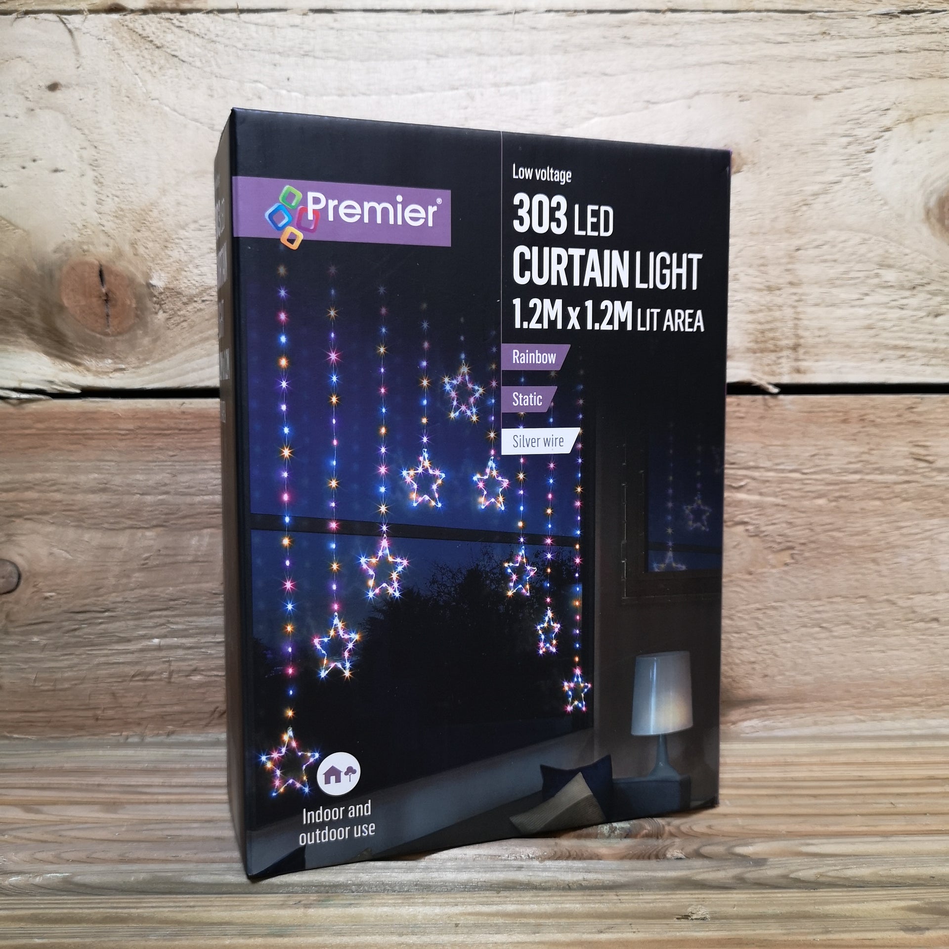 - 1.2m Premier Christmas Static Star LED Silver Pin Wire V Curtain Lights in Rainbow