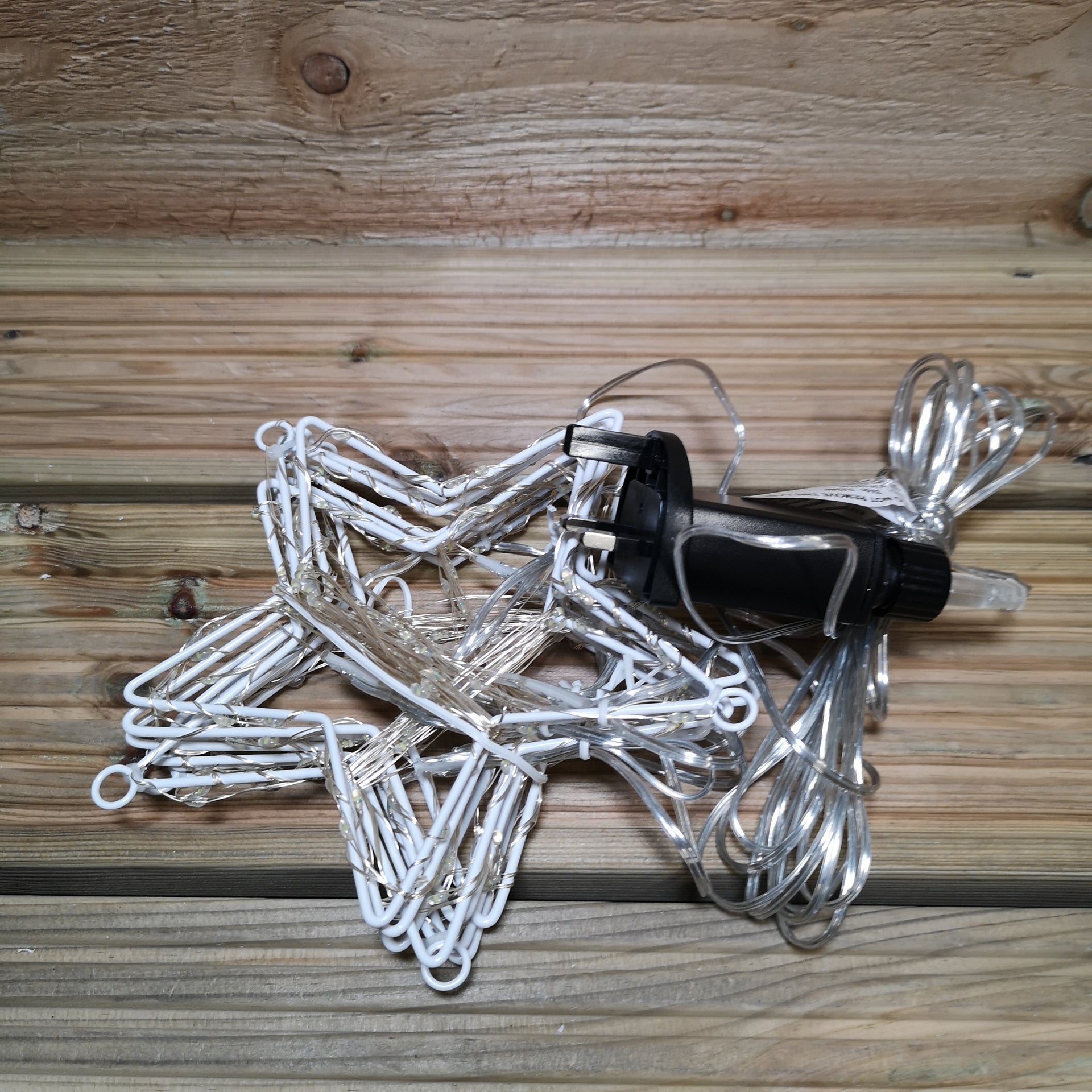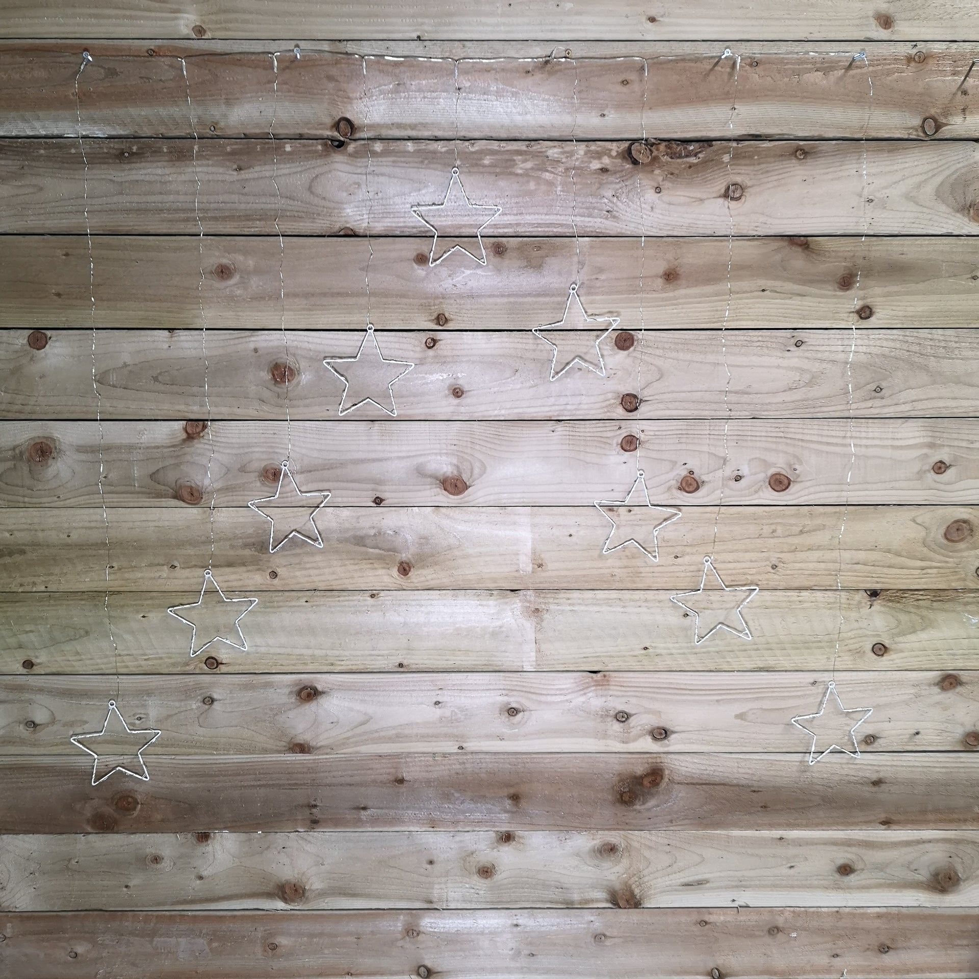- 9 drops of LEDs are finished with a 16cm white metal illuminated star, designed to drape down a window in an upside down 'V' shape, central star ends at 30cm from the top