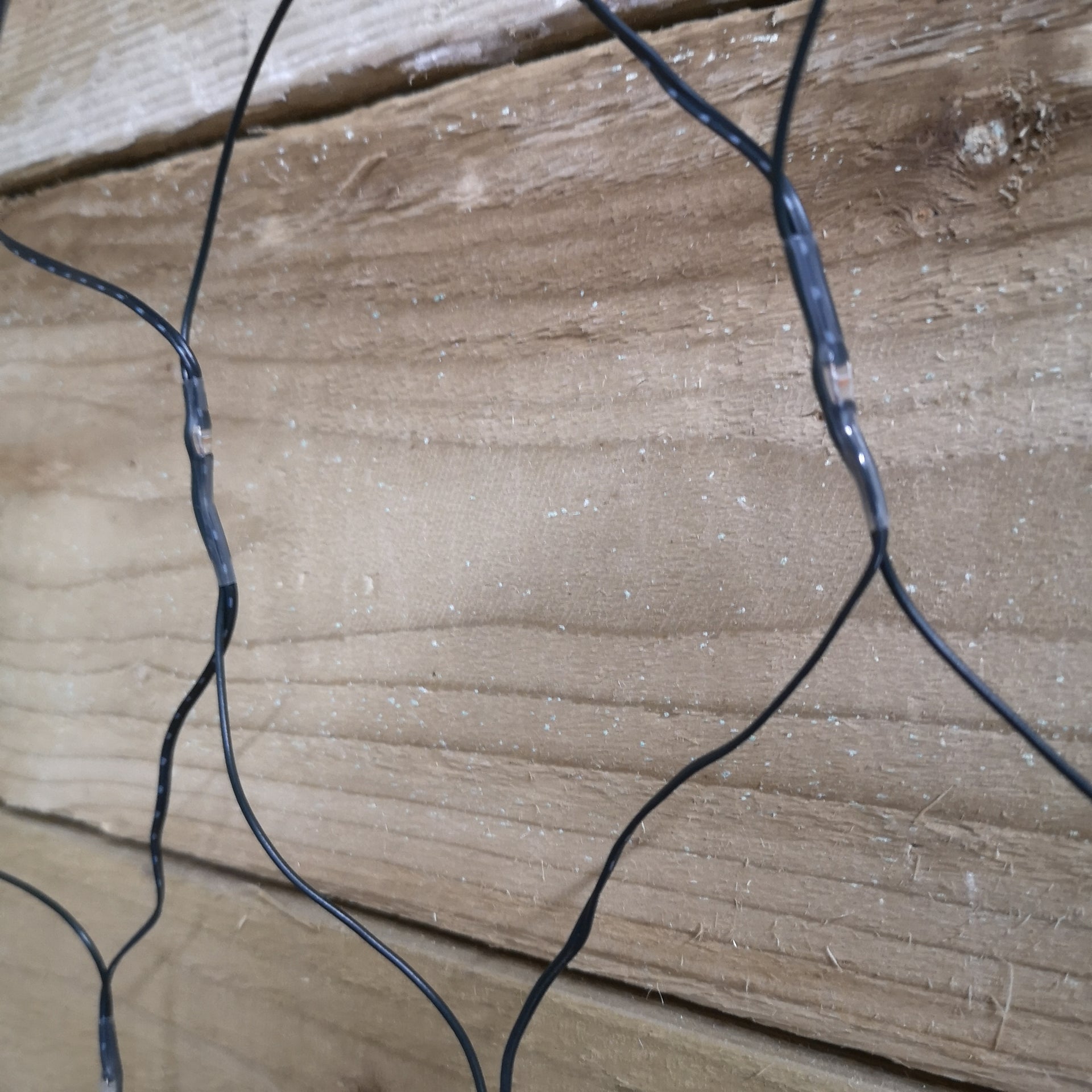 - Blue & White lit area of 1.2m x 1.7m, green net (perfect for hedges, bushes, windows) with a 10m lead to the UK 3 pin transformer, no struggling to reach a socket
