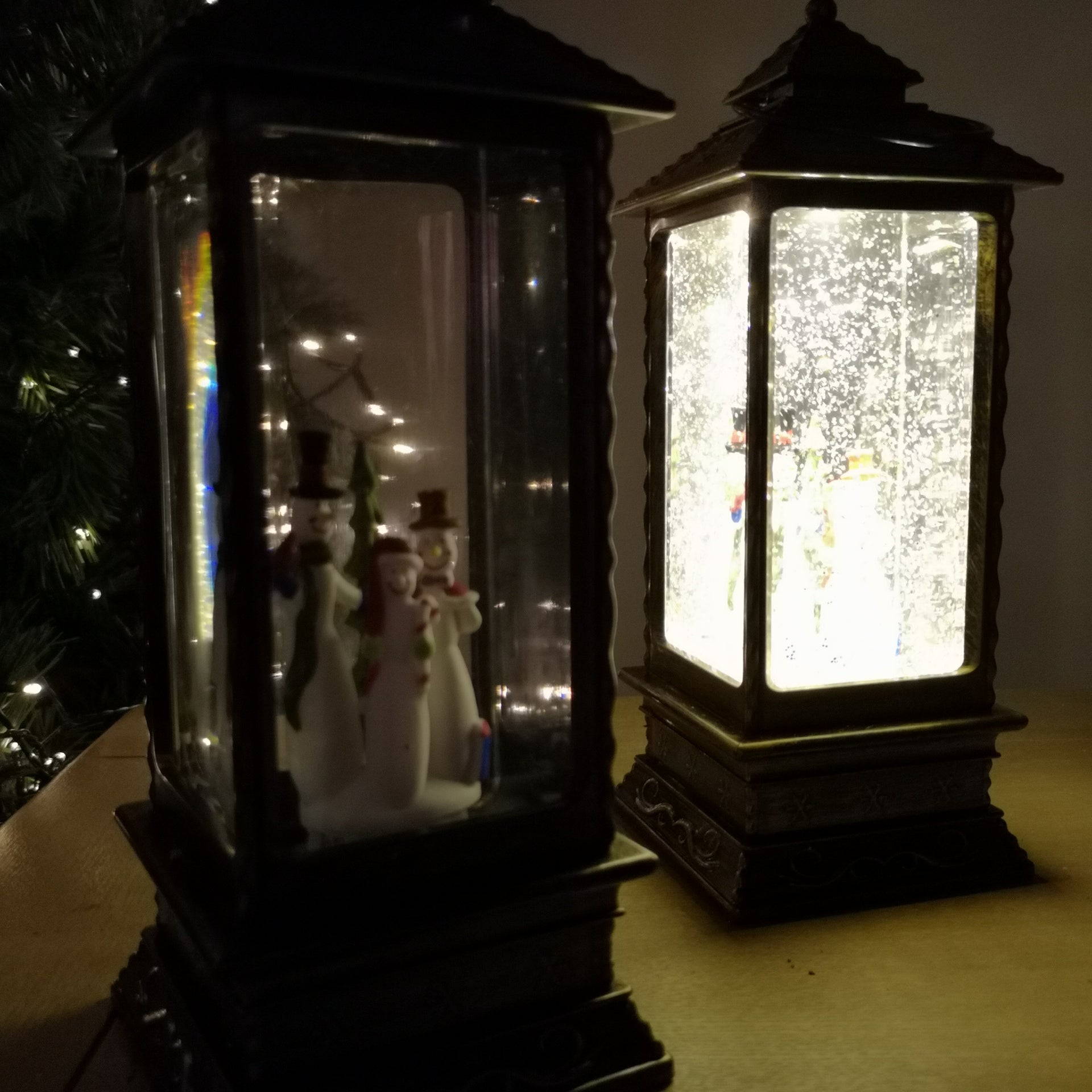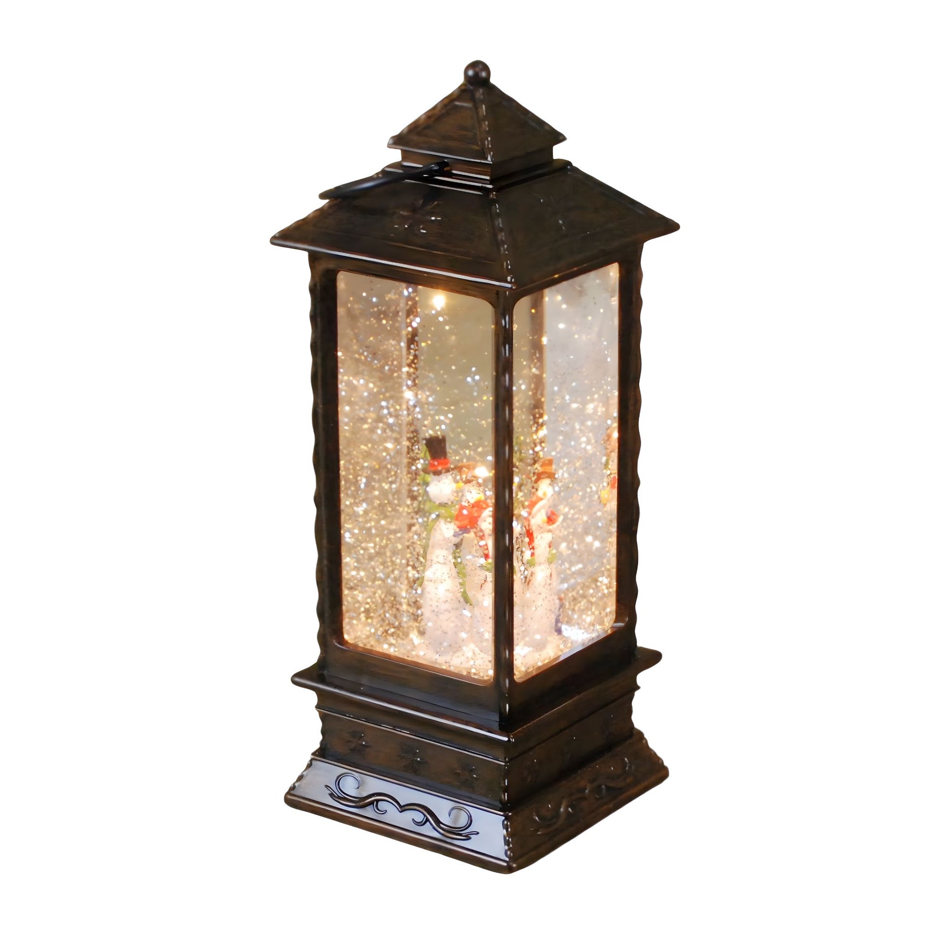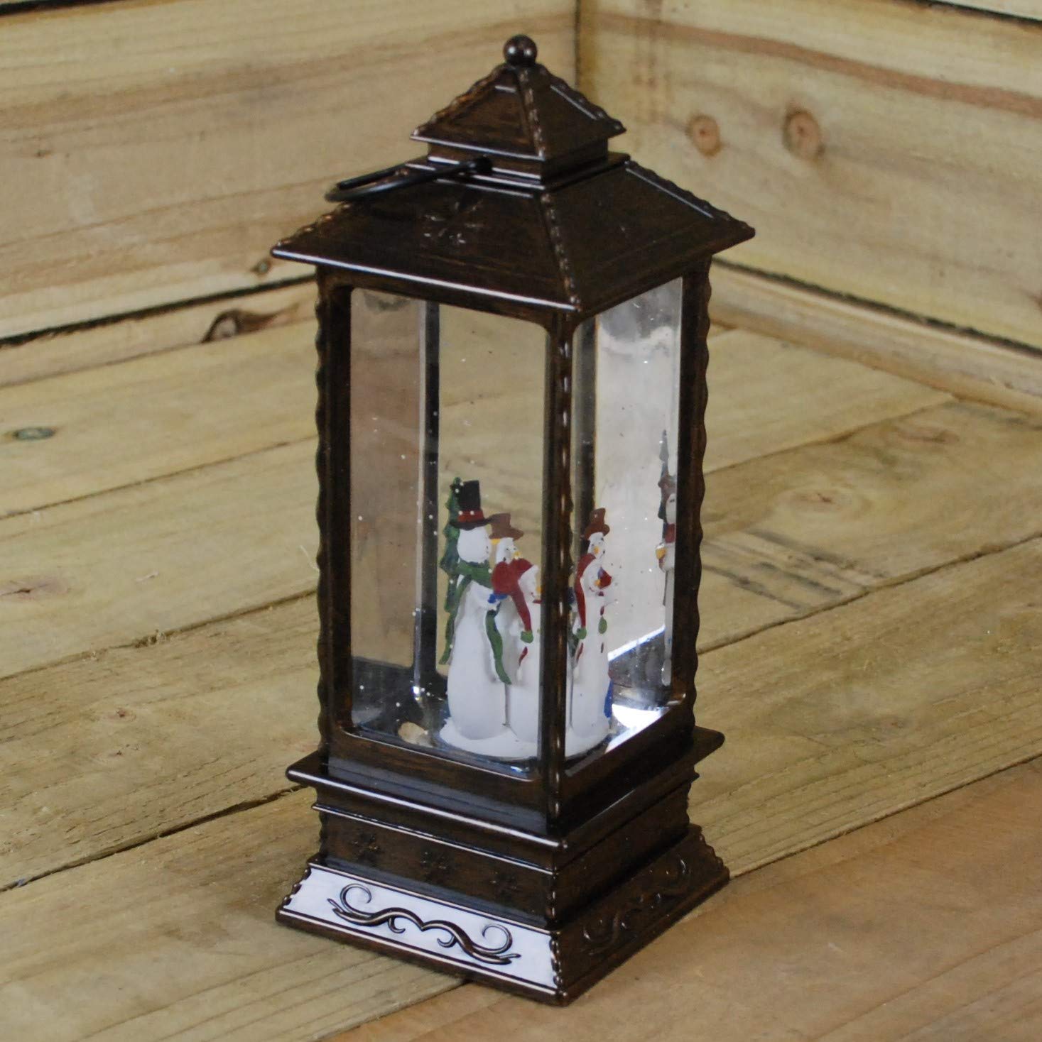 27cm Dual Power LED Christmas Glitter Water Spinner Rustic Lantern Snowman Scene