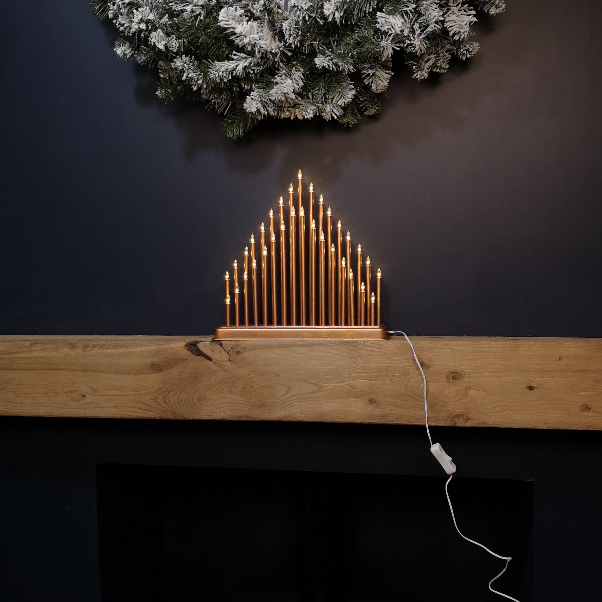 - 34cm Light up Rose Gold Christmas Candlebridge with 33 LEDs in Warm White