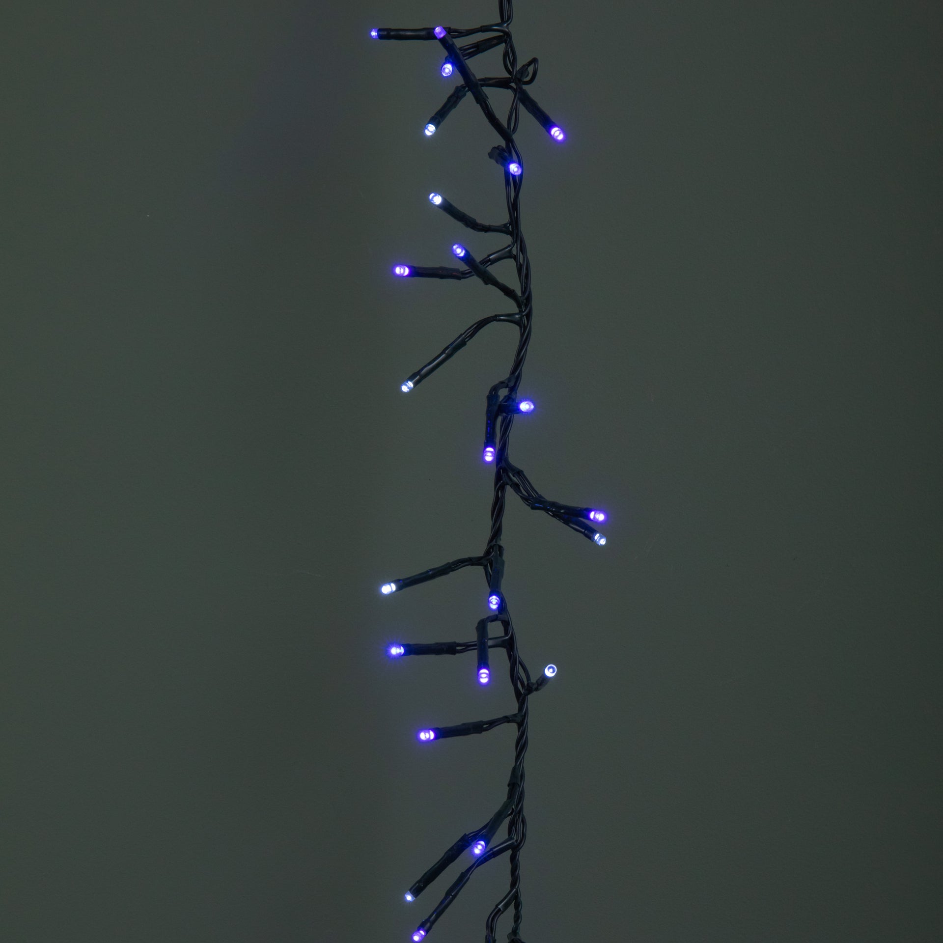 62.5m 5000 LED Christmas Cluster Multi-Action String Lights with Timer in Blue, Purple & White