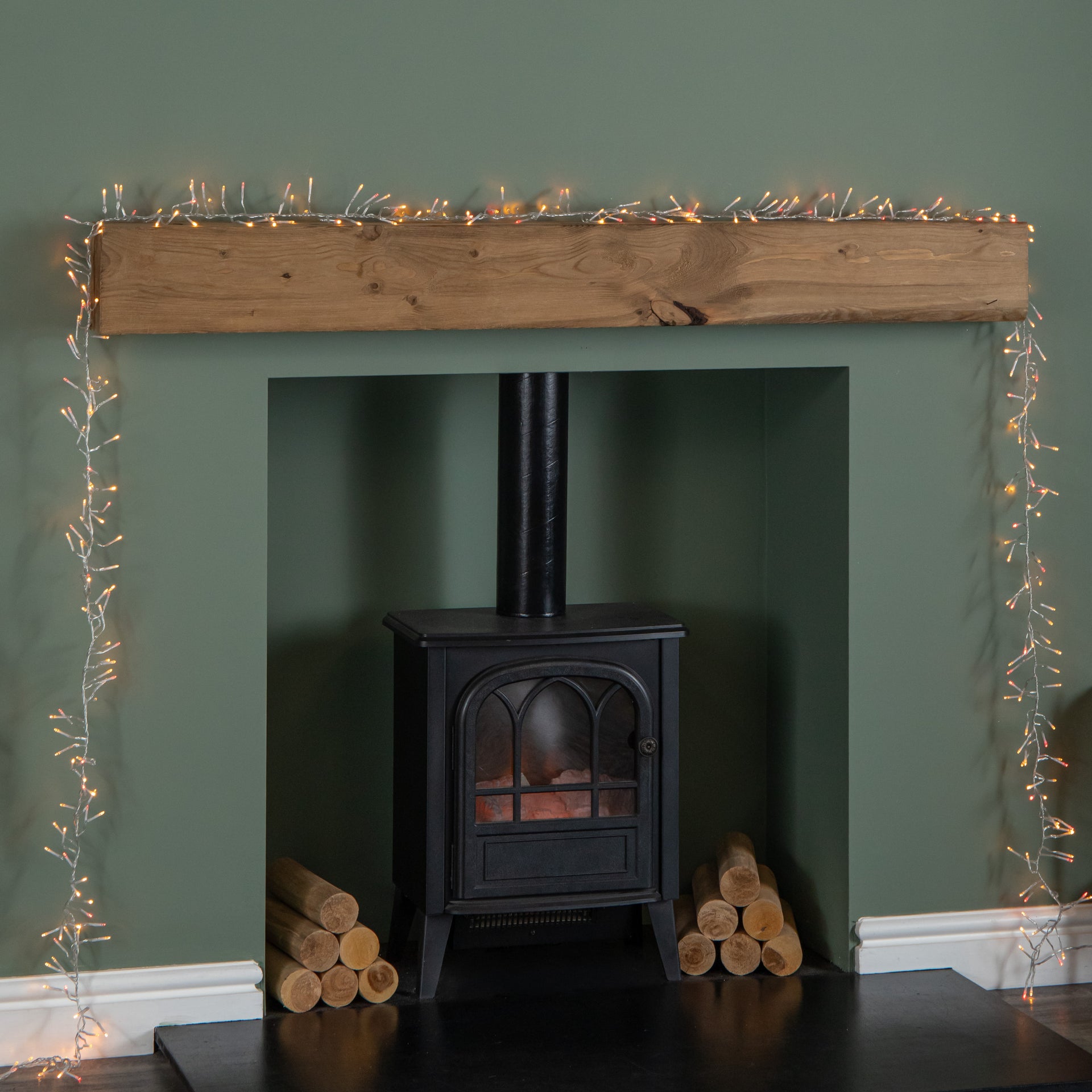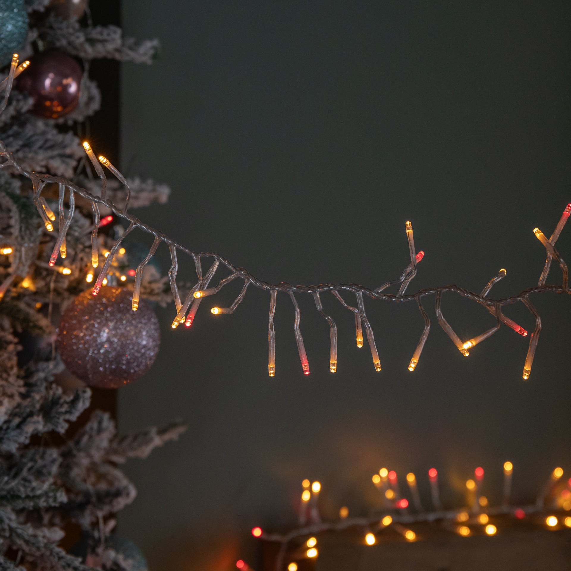 9.3m 720 LED Christmas Cluster String Lights with Timer in Vintage Gold & Red on Clear Cable