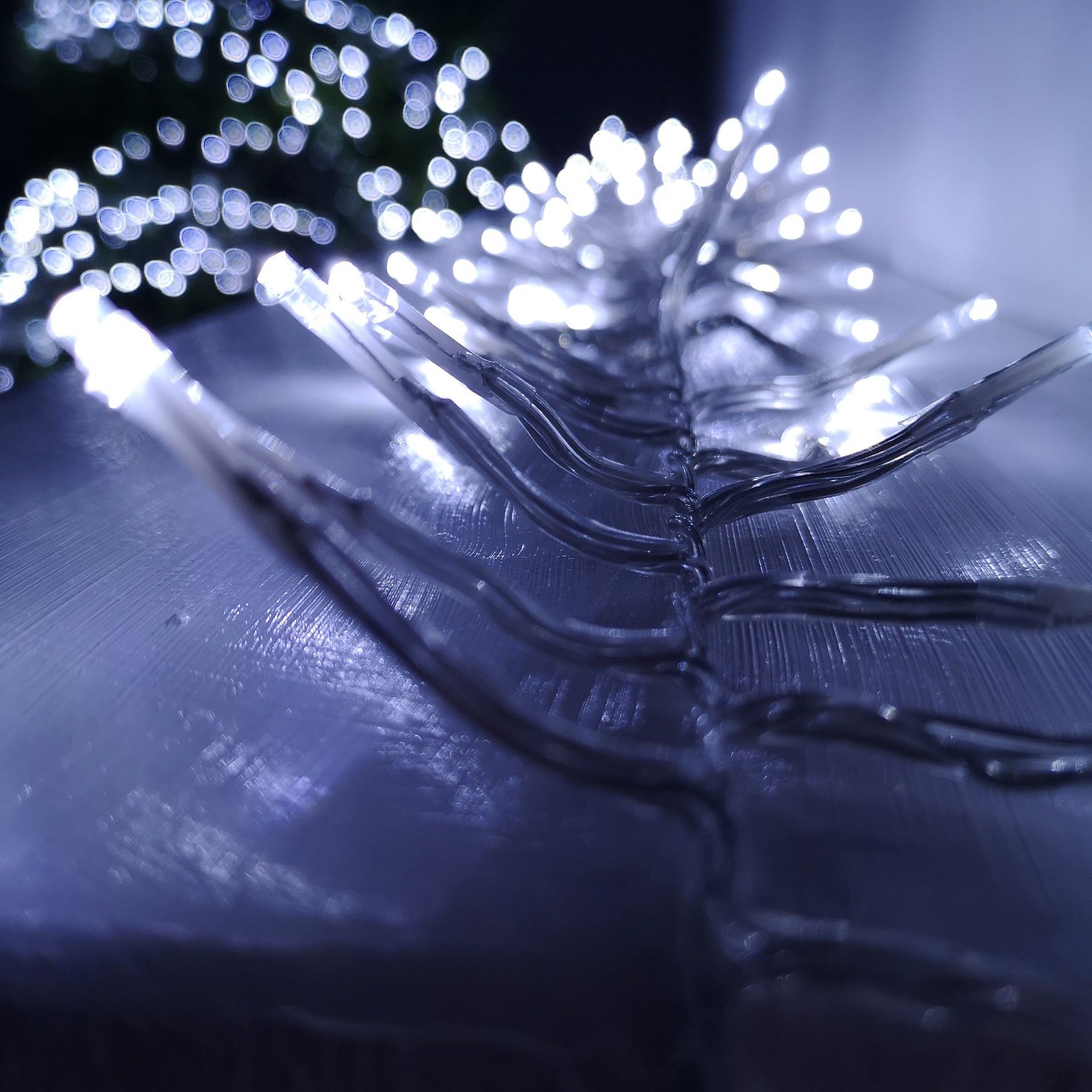 - 960 LED 12m Premier Cluster Indoor Outdoor Multi Function Mains Operated Christmas Lights with Timer on Clear Cable in Cool White