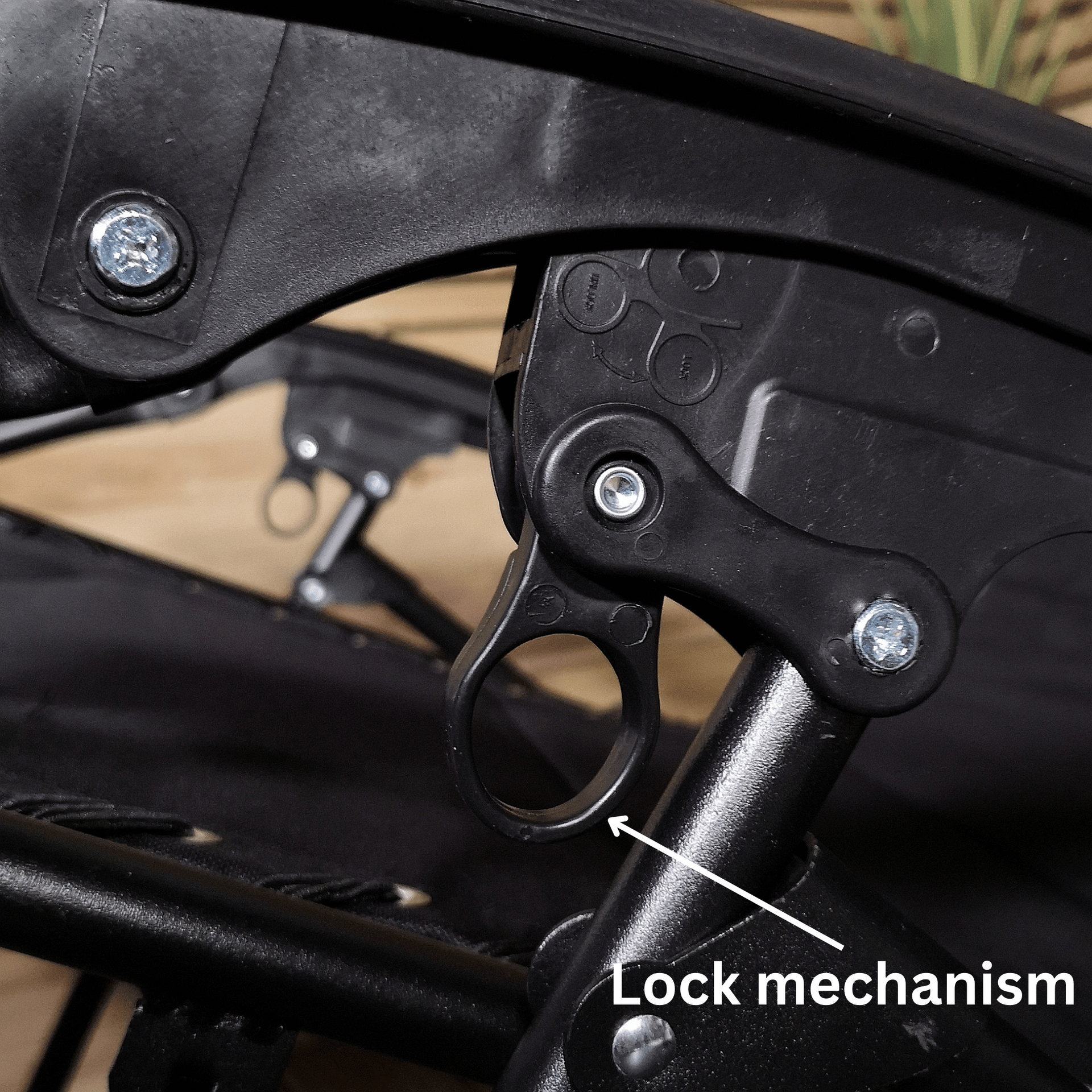 Built with durability and aesthetics in mind, the chair features a robust powder-coated black metal frame, offering excellent strength and durability. The padded black fabric is not only stylish but also breathable and resilient, ensuring comfort and long-term outdoor use. When not in use, the chair easily folds down into a compact and portable shape, perfect for storing in garden sheds, garages, or taking along on camping trips or holidays.